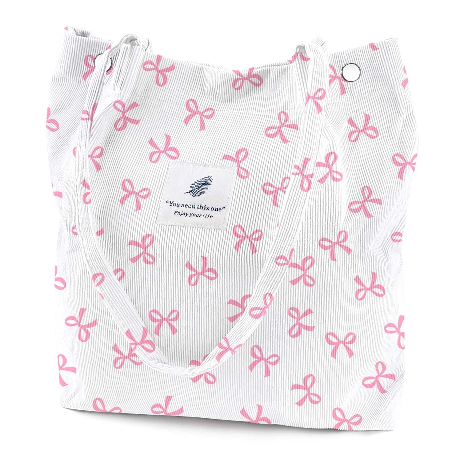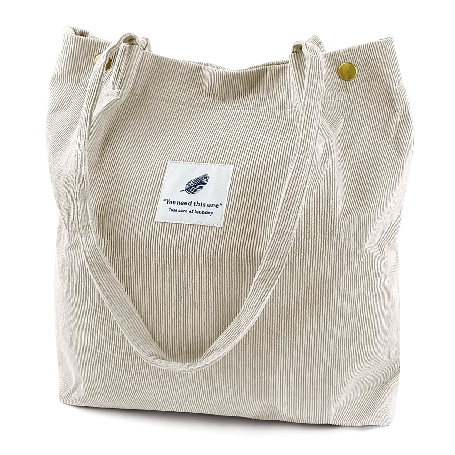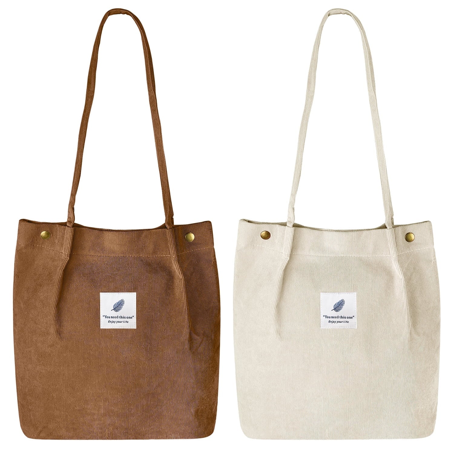 Ayieyill Corduroy Tote Bag for Women Girl Lady Large Corduroy Bag Canvas Shoulder Bag and Handbags with Inner Pocket
