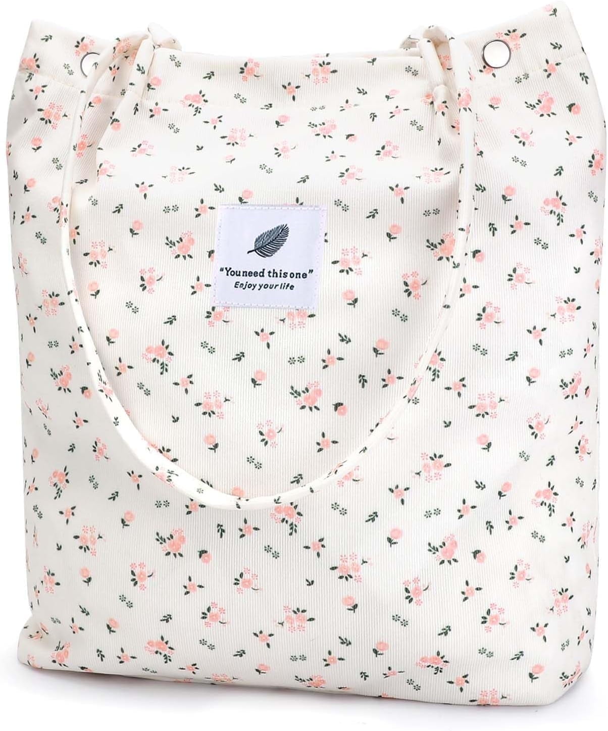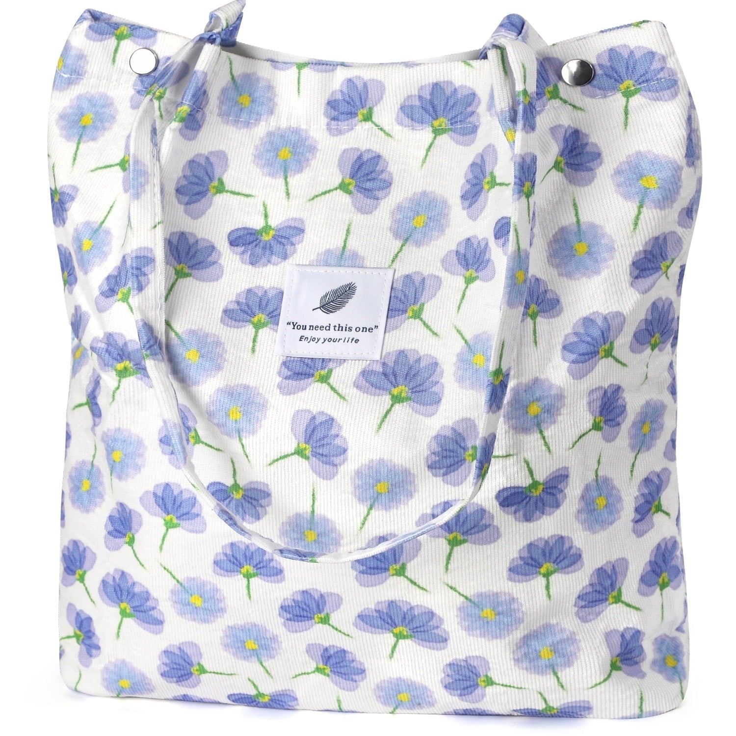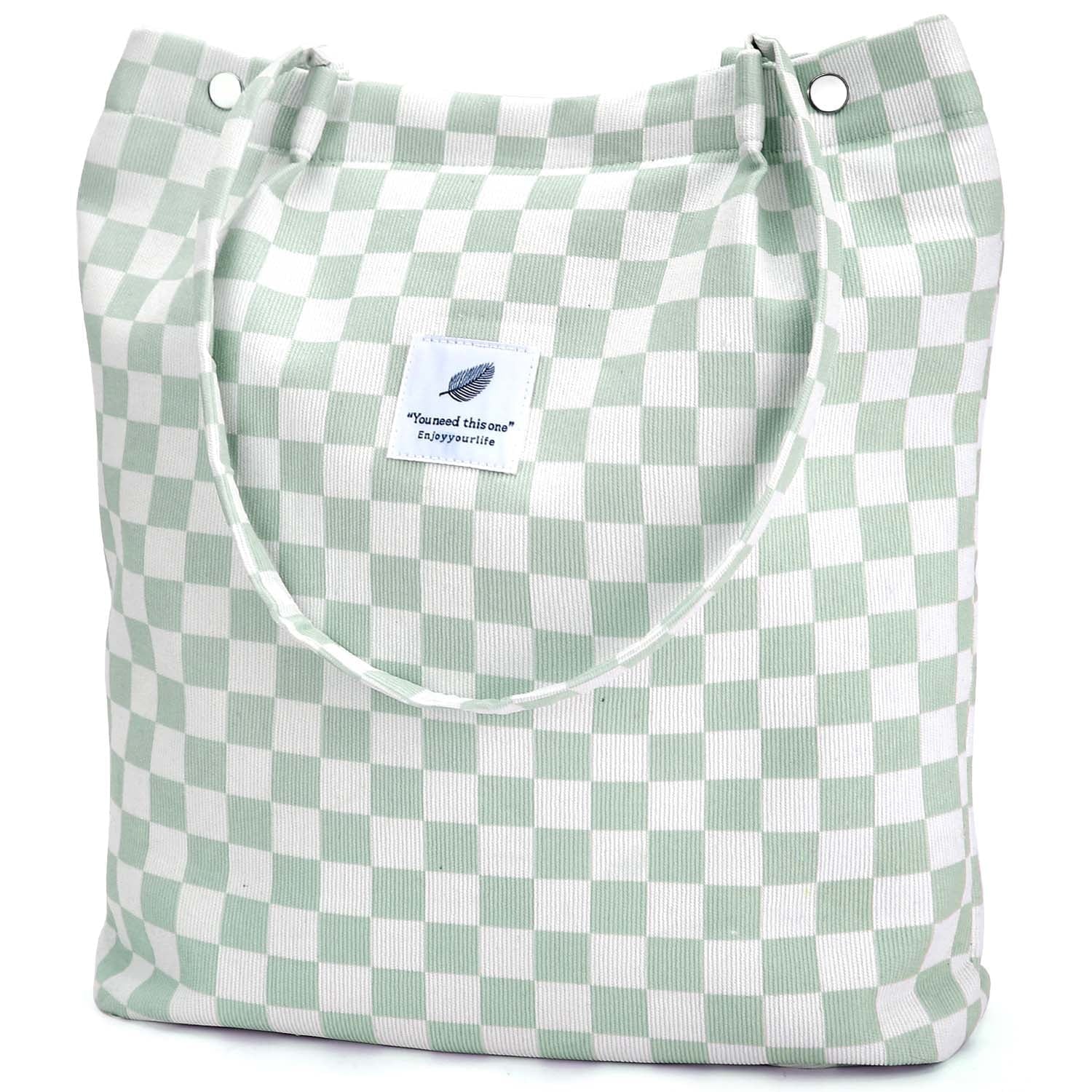 Ayieyill Corduroy Tote Bag for Women Girl Lady Large Corduroy Bag Canvas Shoulder Bag and Handbags with Inner Pocket
