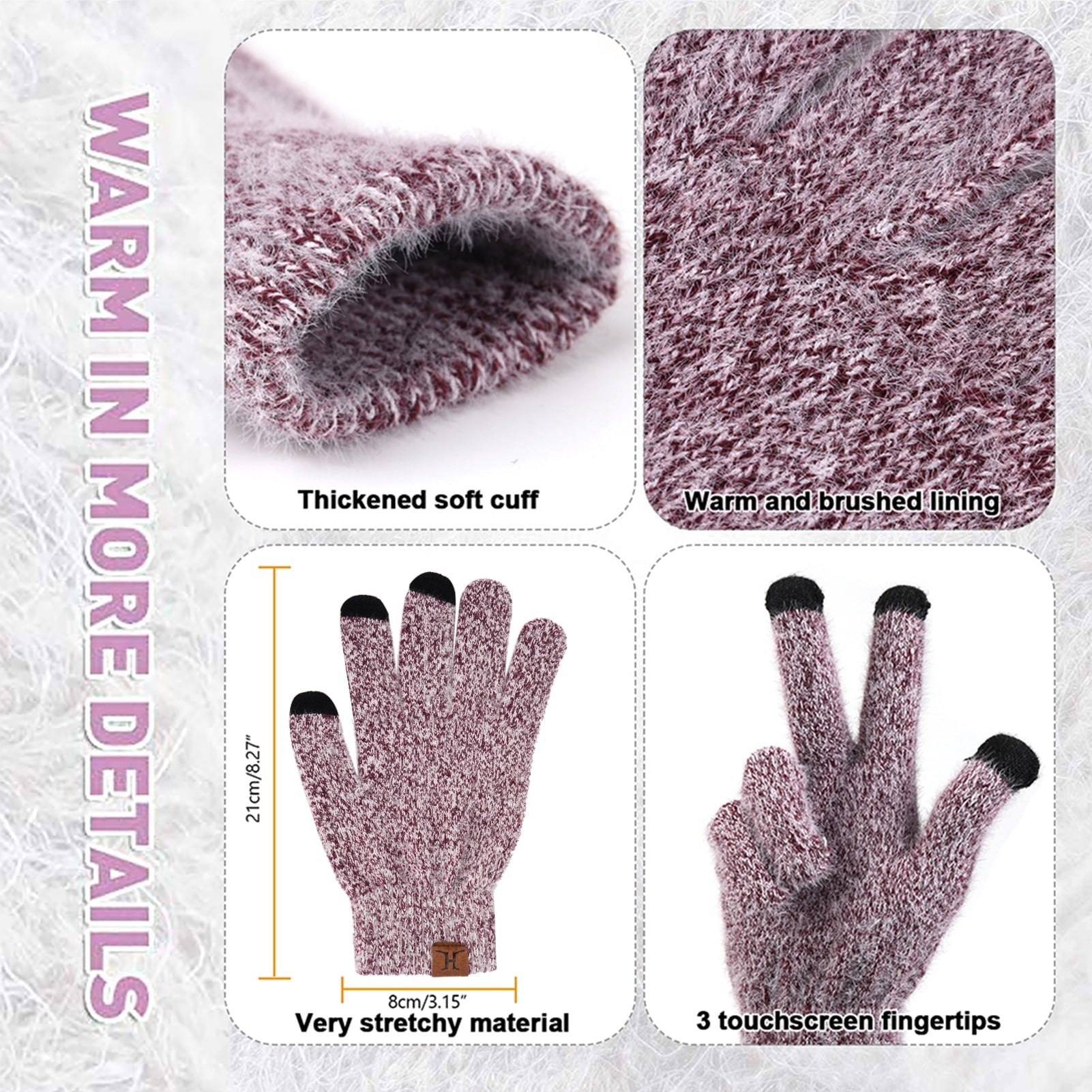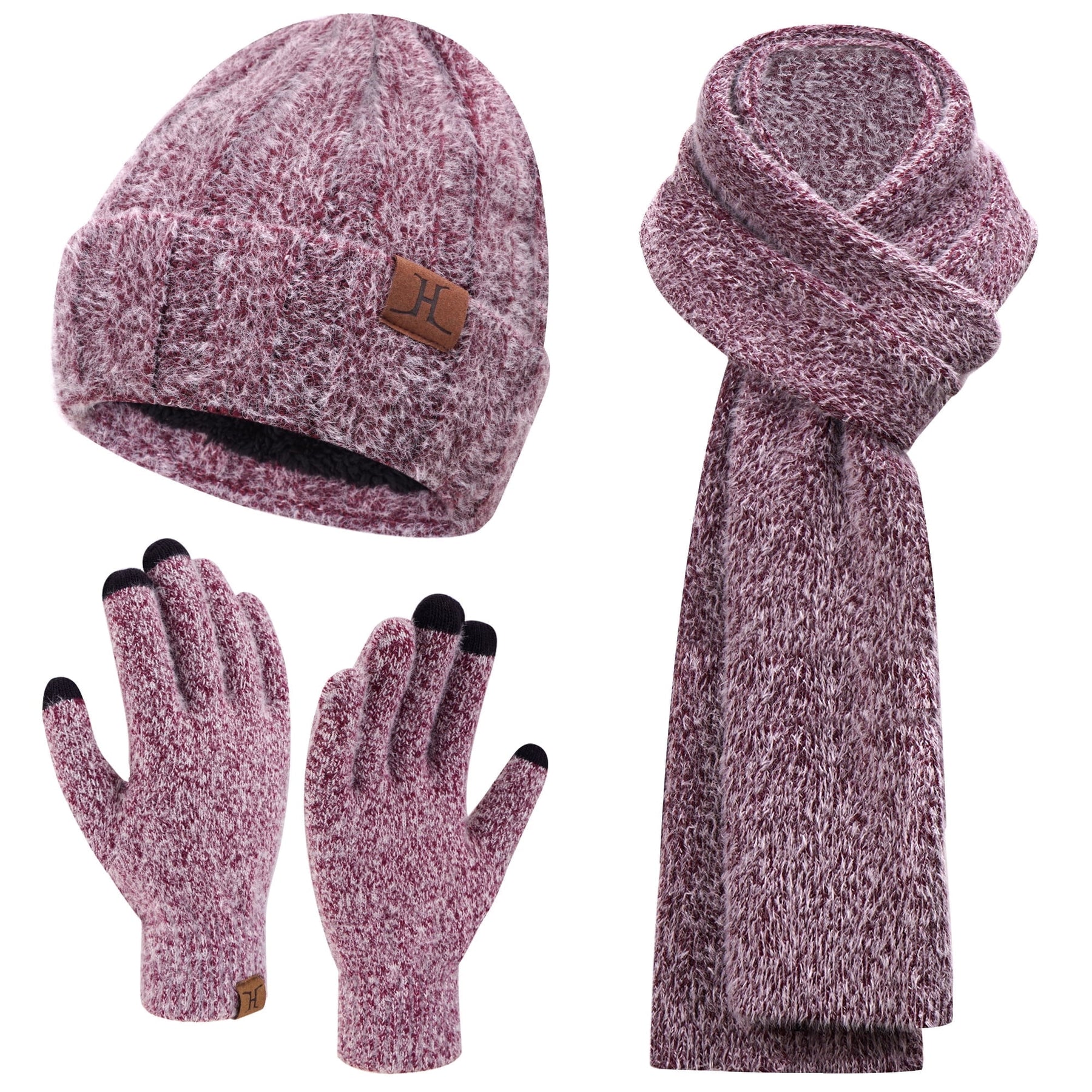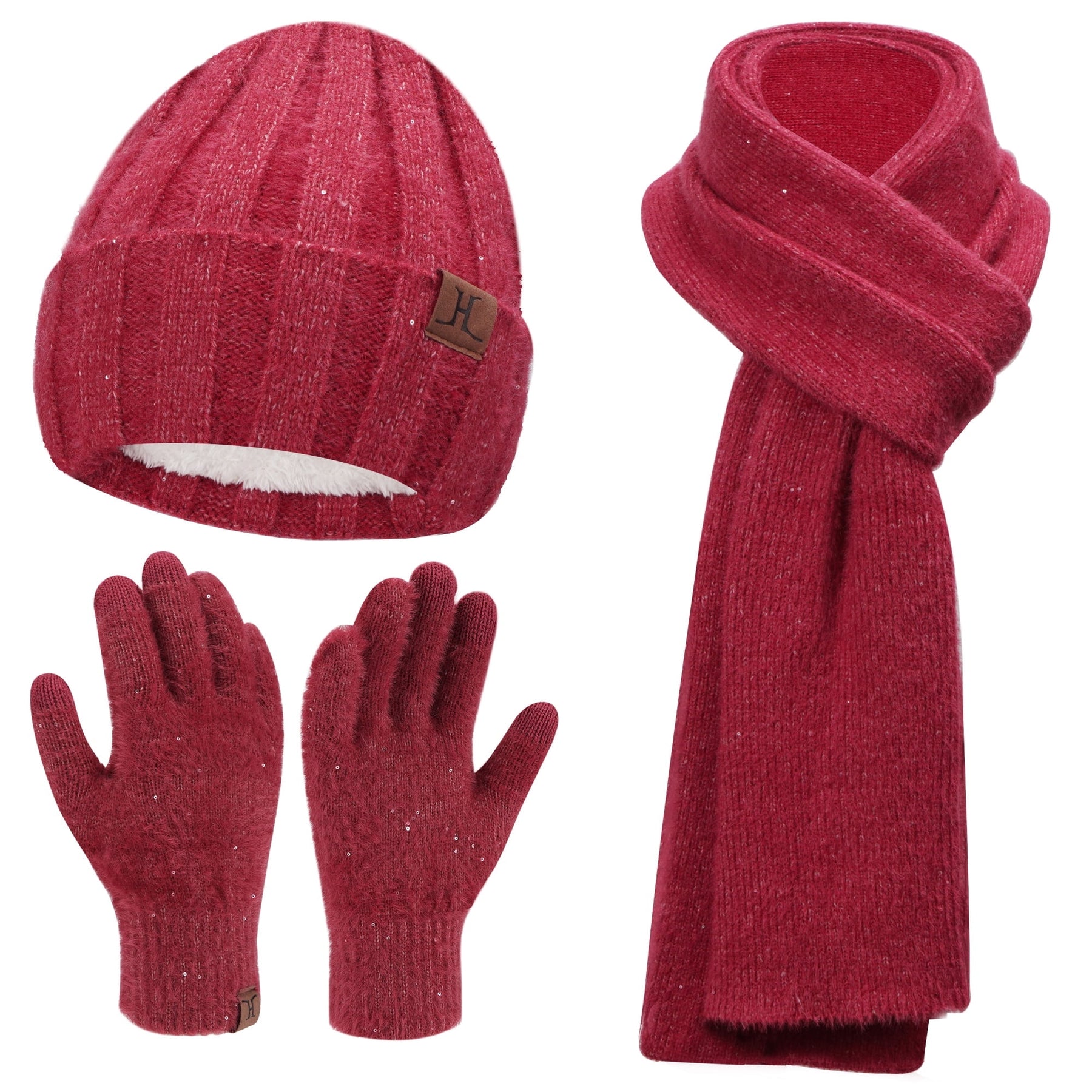 FZ FANTASTIC ZONE Womens Winter Warm Knit Beanie Hat Touchscreen Gloves Long Scarf Set with Fleece Lined Skull Caps Neck Scarves for Women Men,Winered