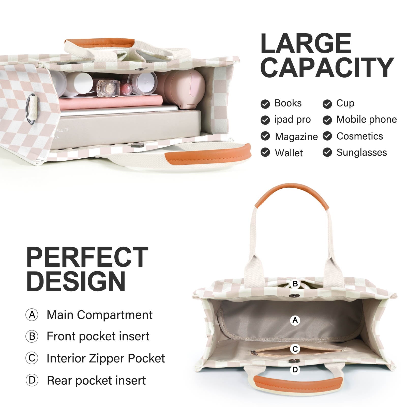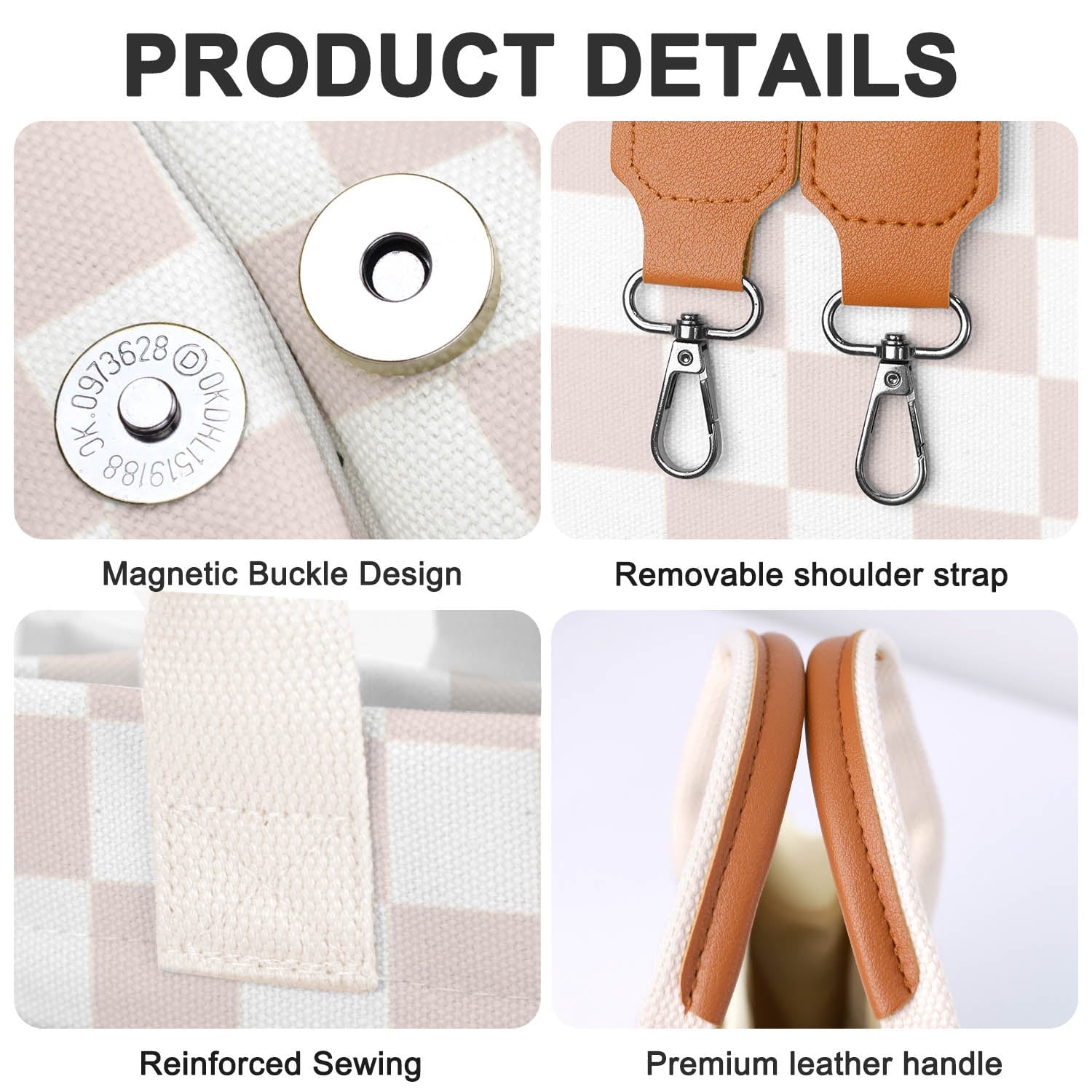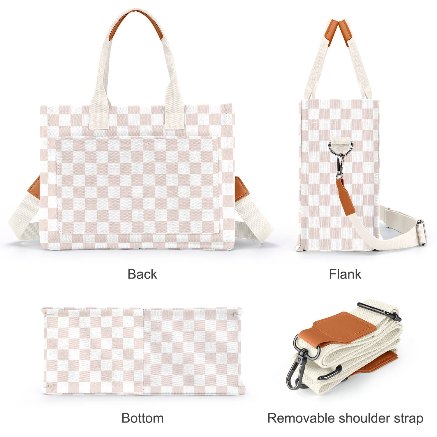 Gocvo Canvas Tote Bag for Women, Large Multi-Pocket Shoulder Handbag, Crossbody Messenger Bag, Pink Plaid