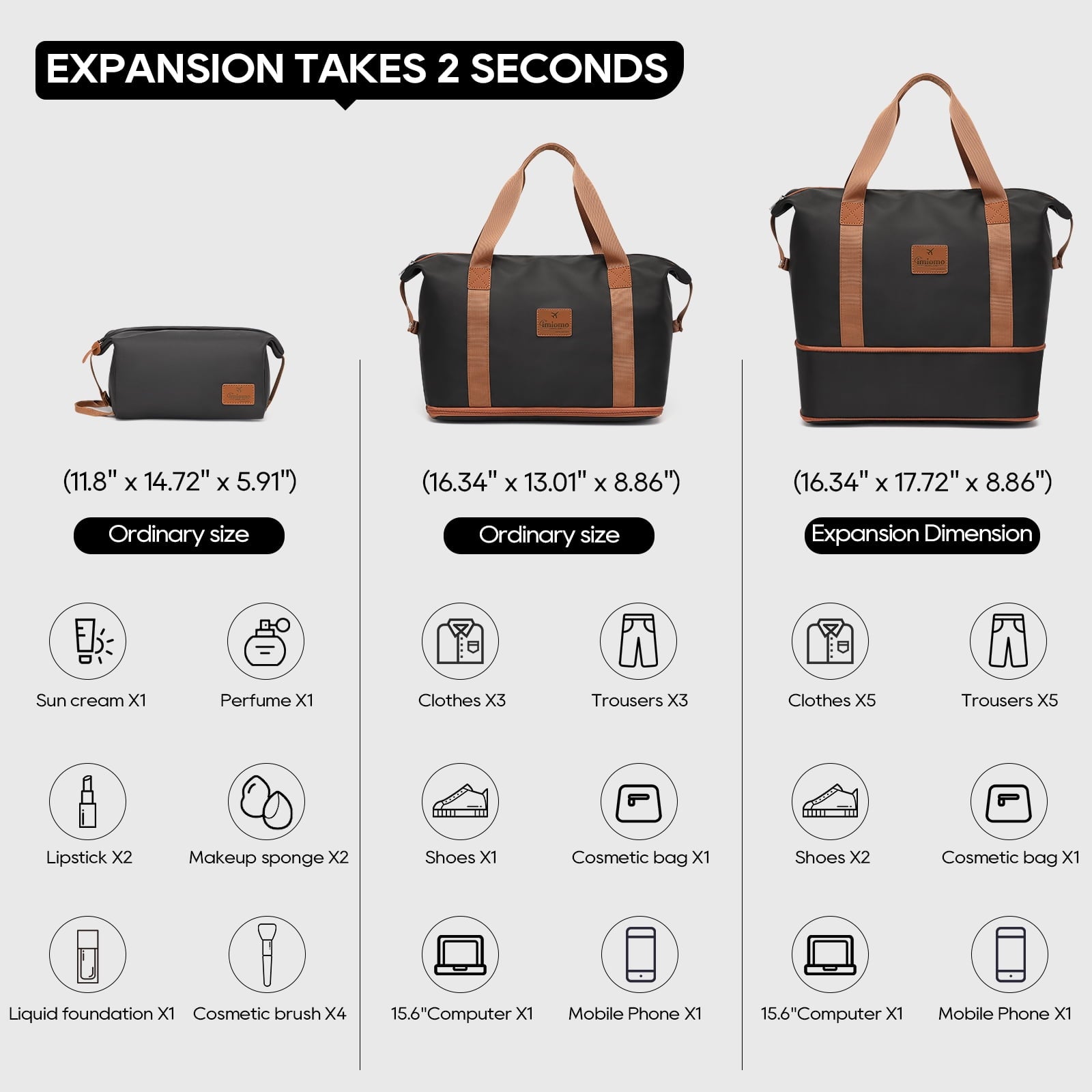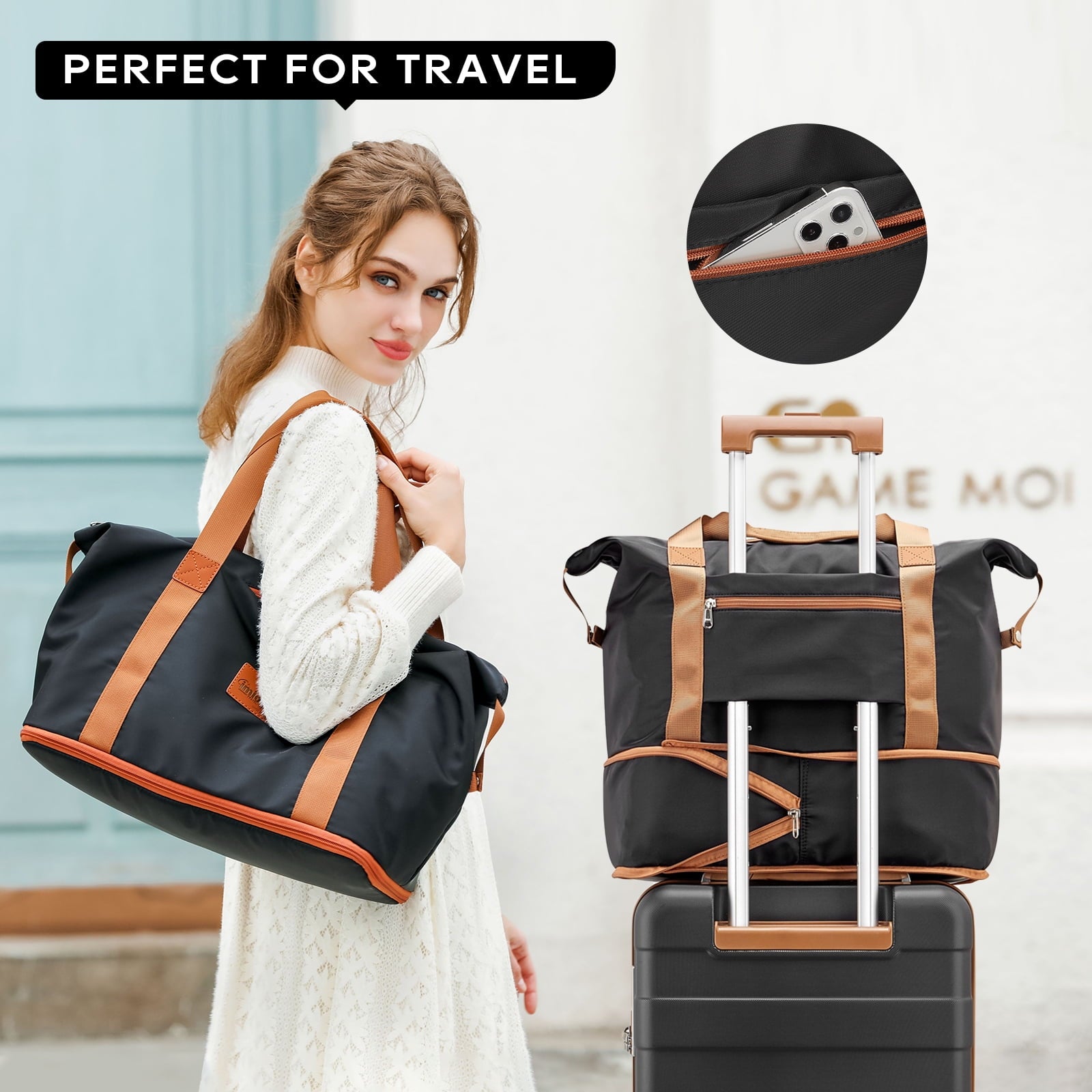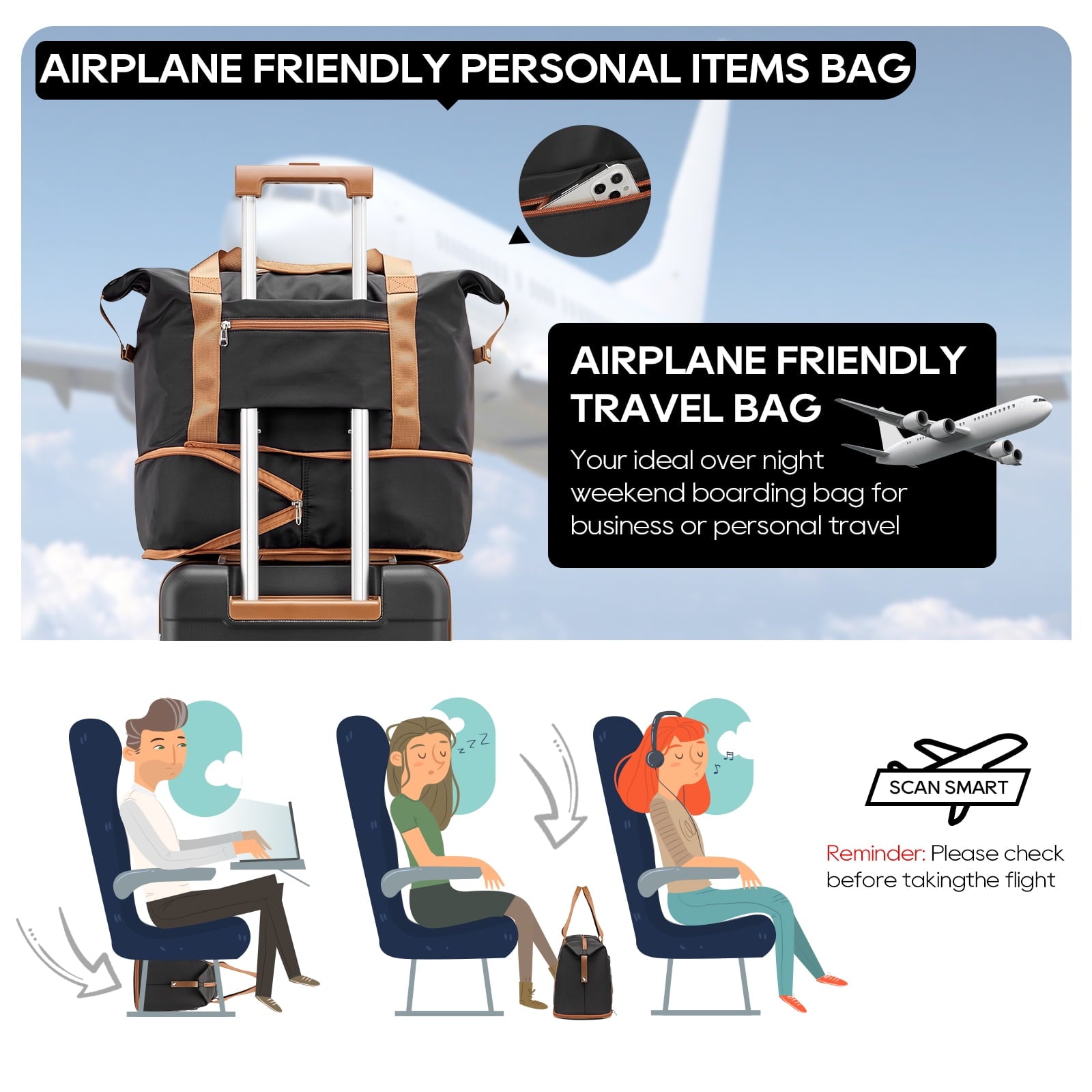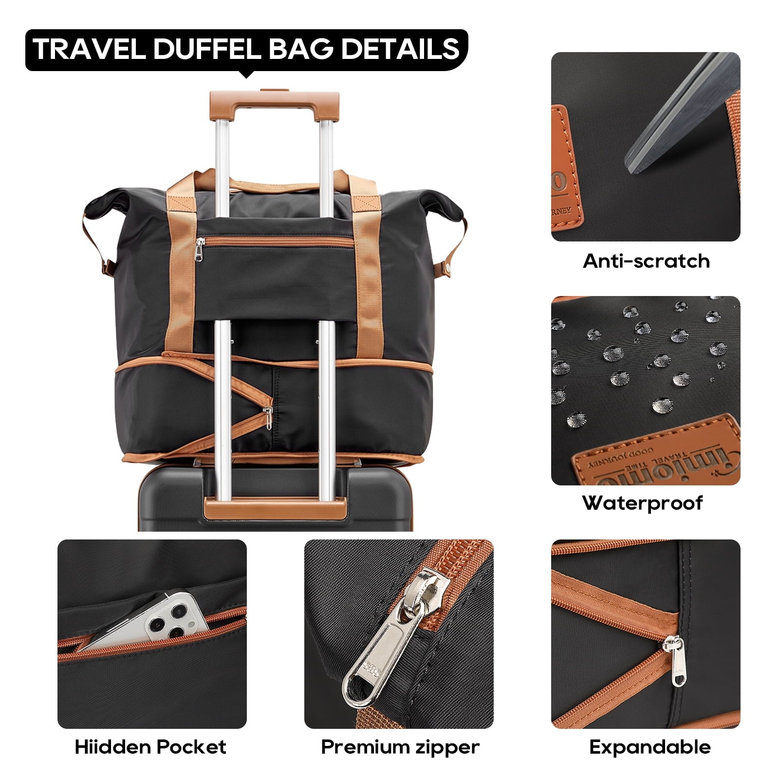 Joyway 2 Piece Luggage Travel Duffel Bag Airline Certified Gym Bag Women Waterproof Expandable Trolley Case Lightweight and Durable Large Capacity Carry-On Luggage Bag