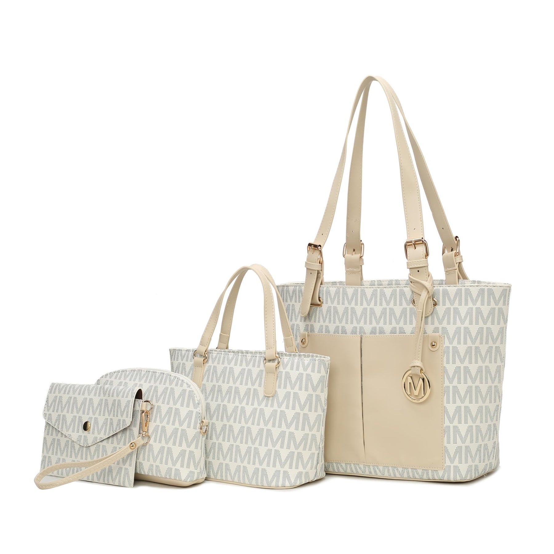 MKF Collection Arya Women's Tote Bag, Wristlet Pouch Purse, Vegan Leather Handbag 4Pcs Set by Mia K - Beige