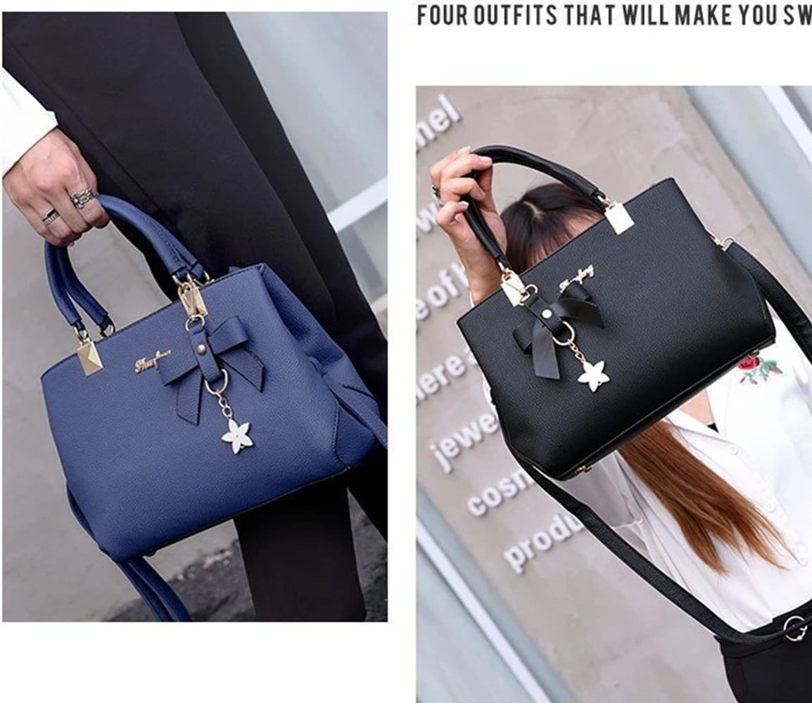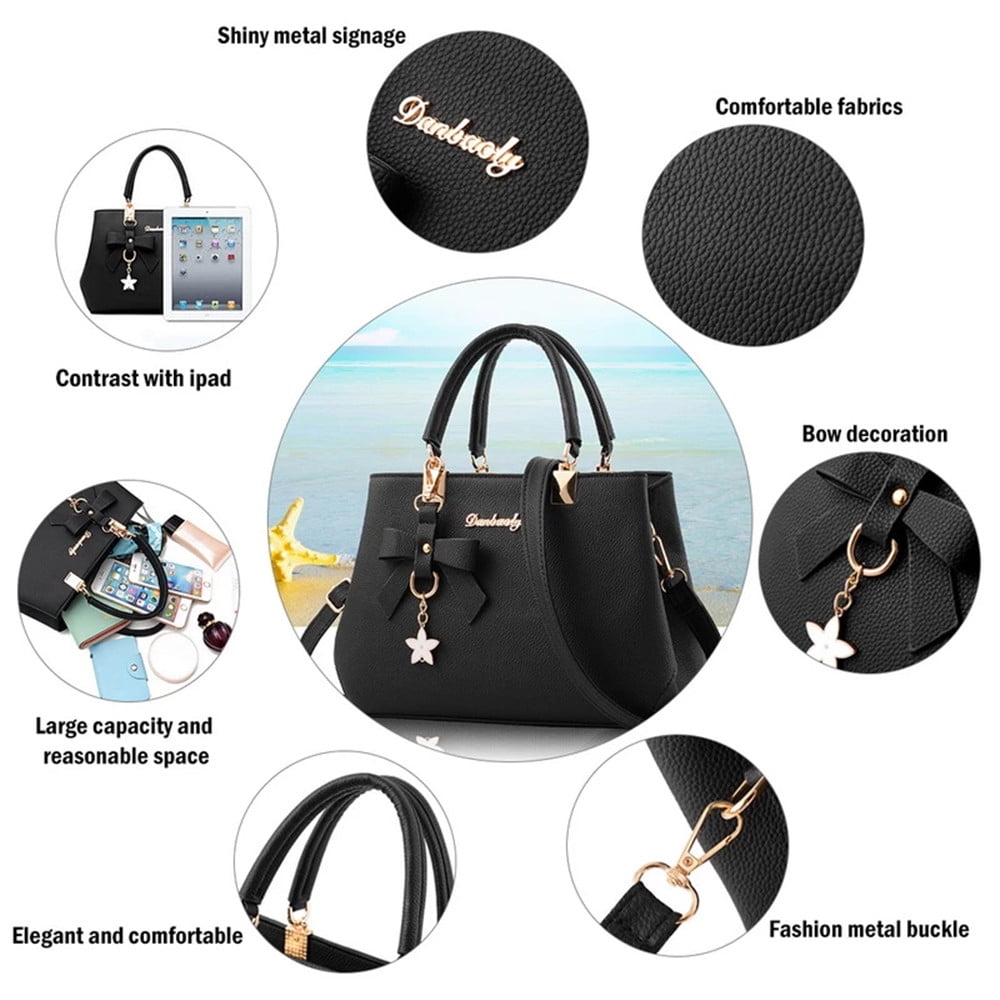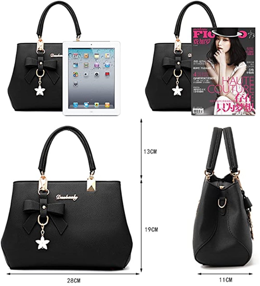 NBXPOW Women's PU Leather Solid Print Bow Tote Crossbody Handbag, Black