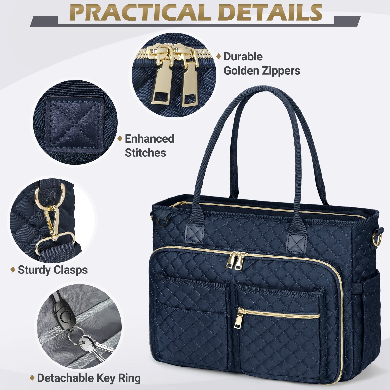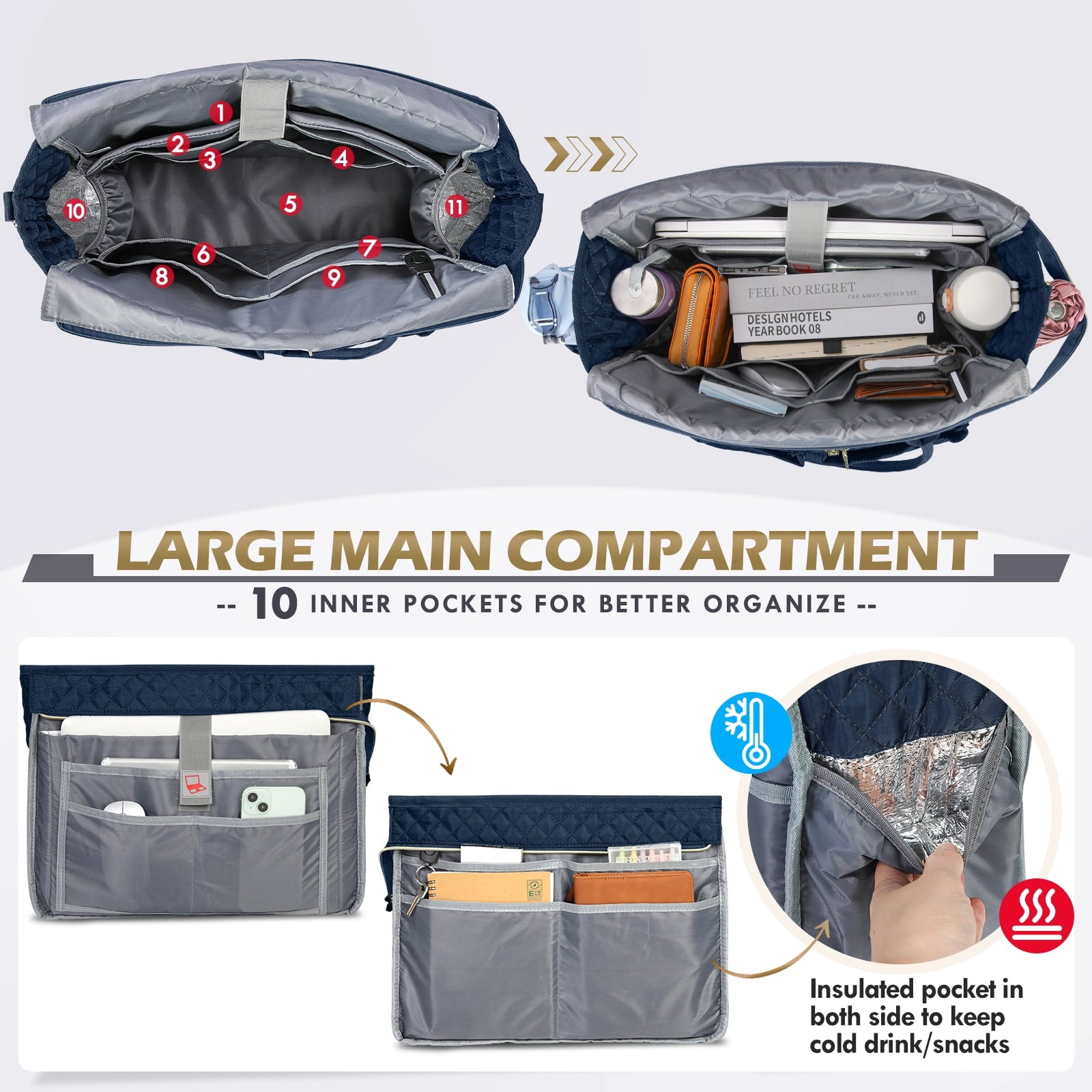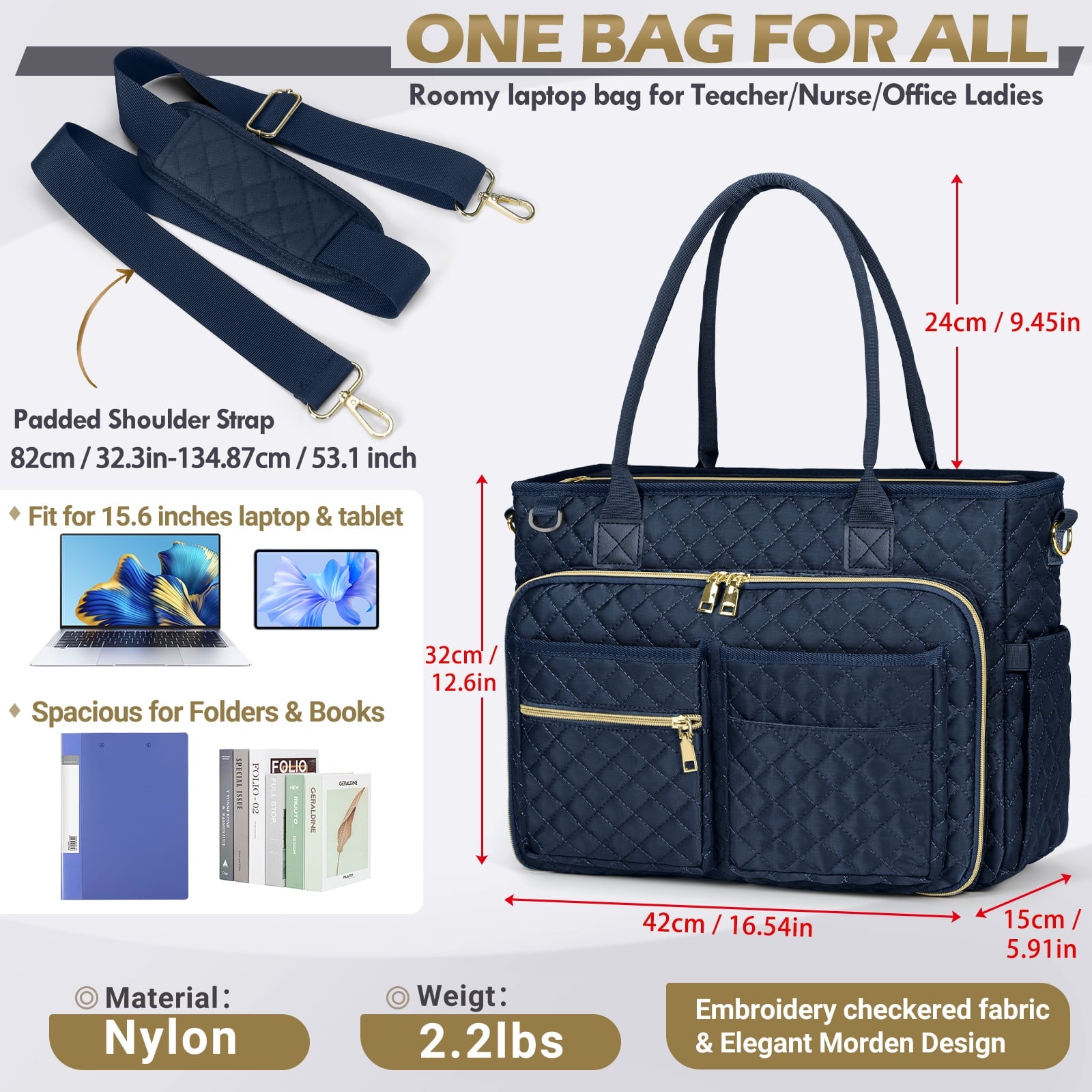 RAINSMORE Teacher Tote Bag 15.6 inch Laptop Bag for Women Work Bags Laptop Tote Nurse Bag Professional Computer Messenger with Insulated Pocket, Laptop Briefcase for Office, College, Nursing
