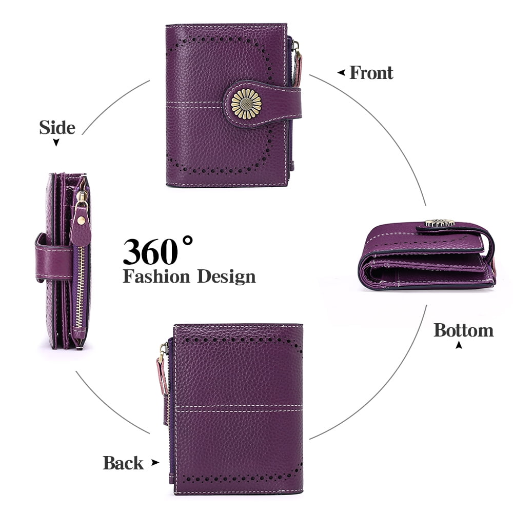 Sendefn Small Women Wallet Genuine Leather Bifold Purse RFID Blocking Card Holder