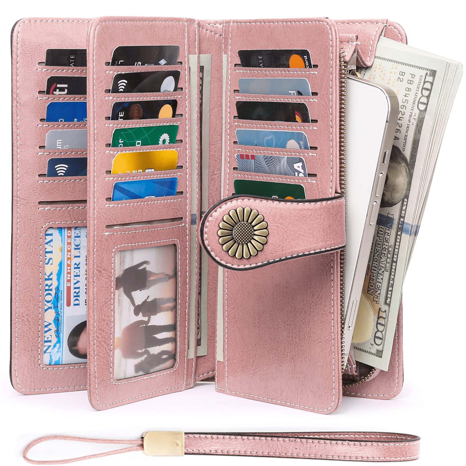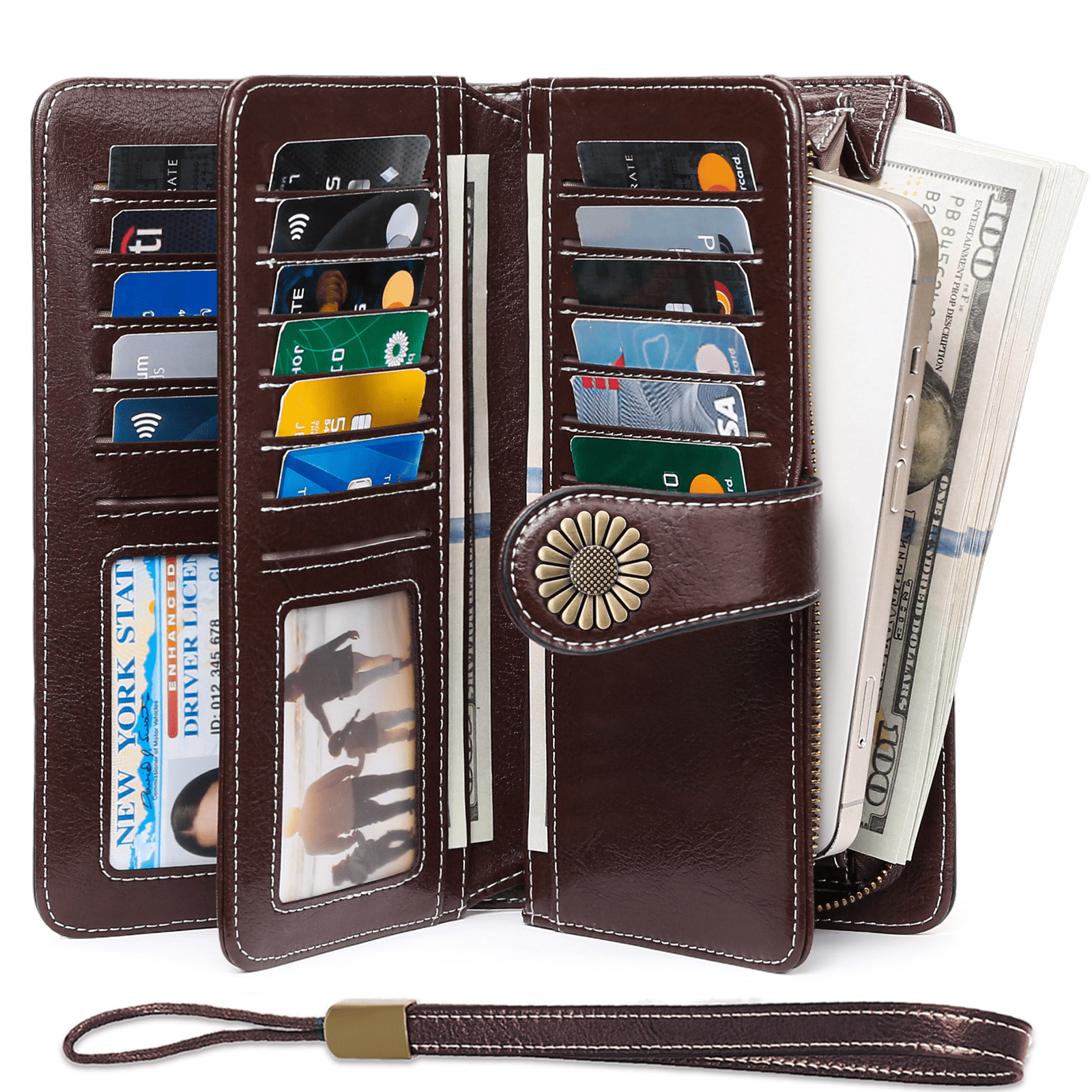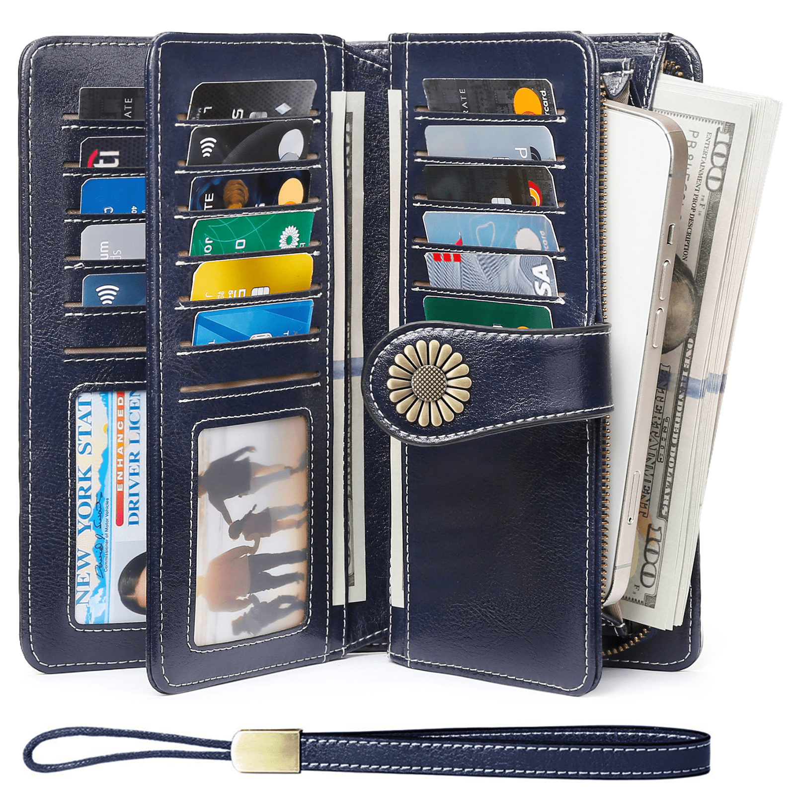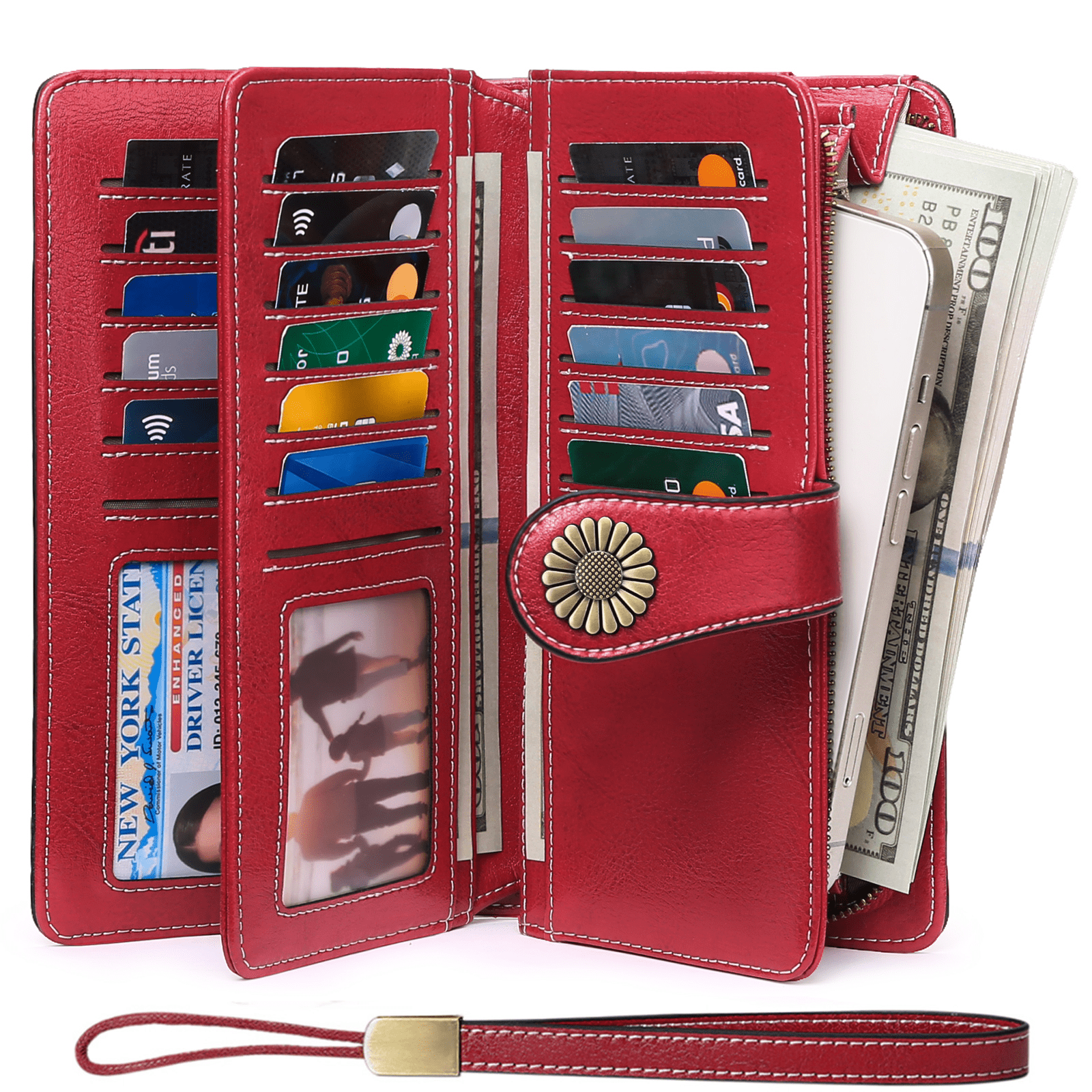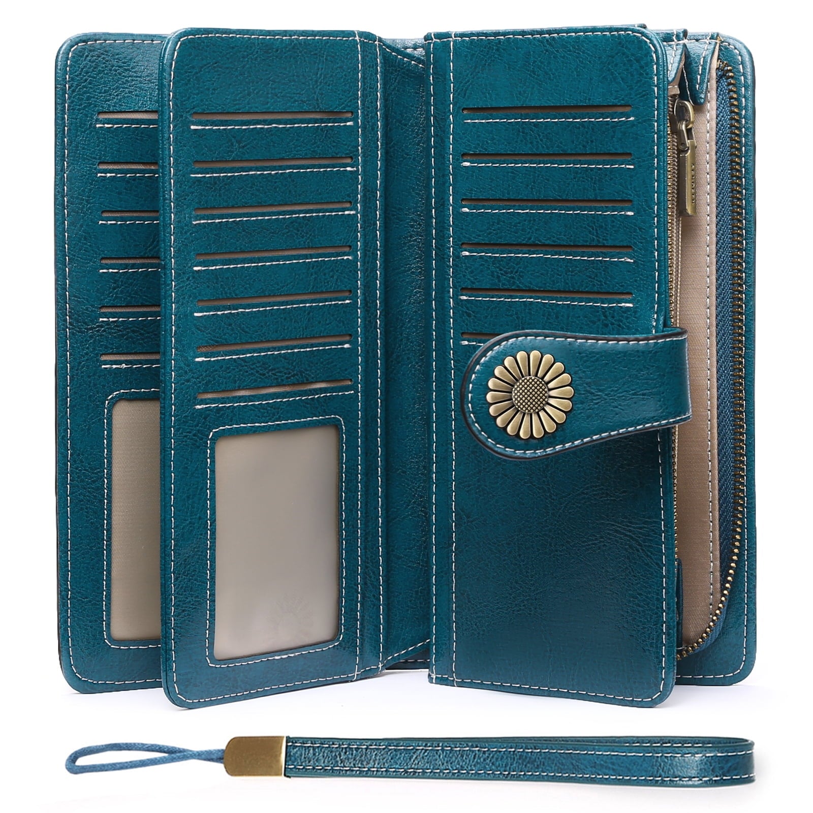Sendefn Wallets for Women Genuine Leather Credit Card Holder with RFID Blocking Large Capacity Wristlet