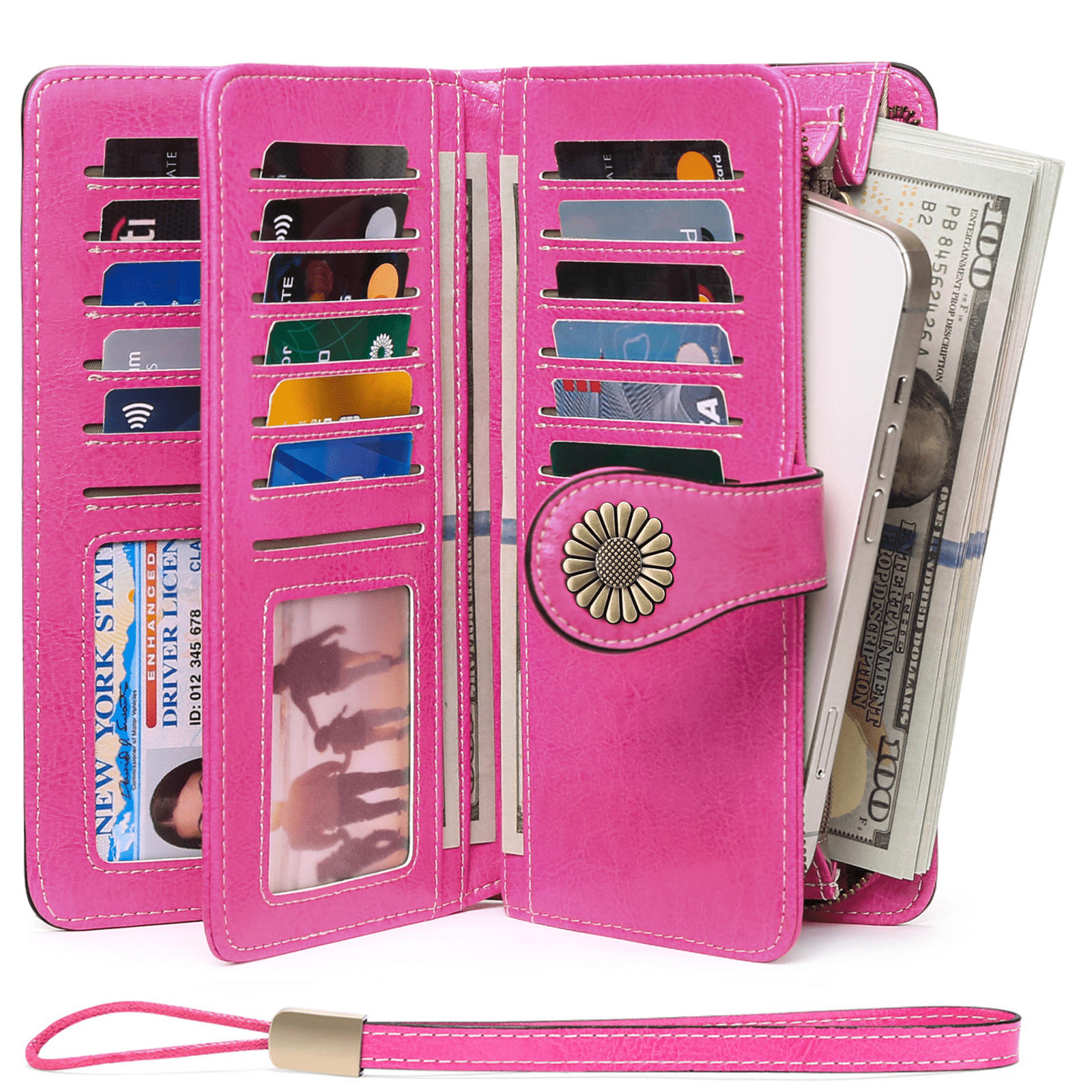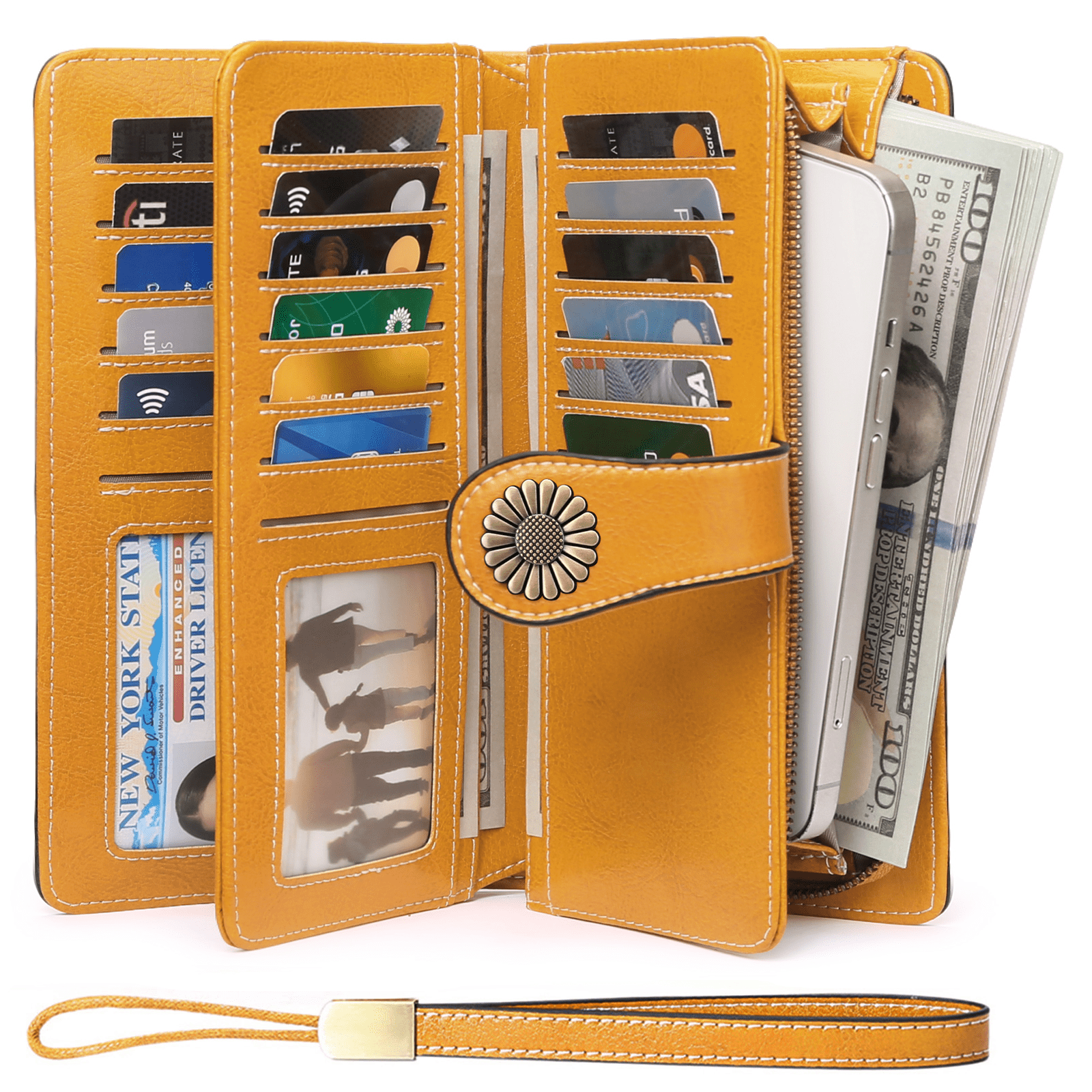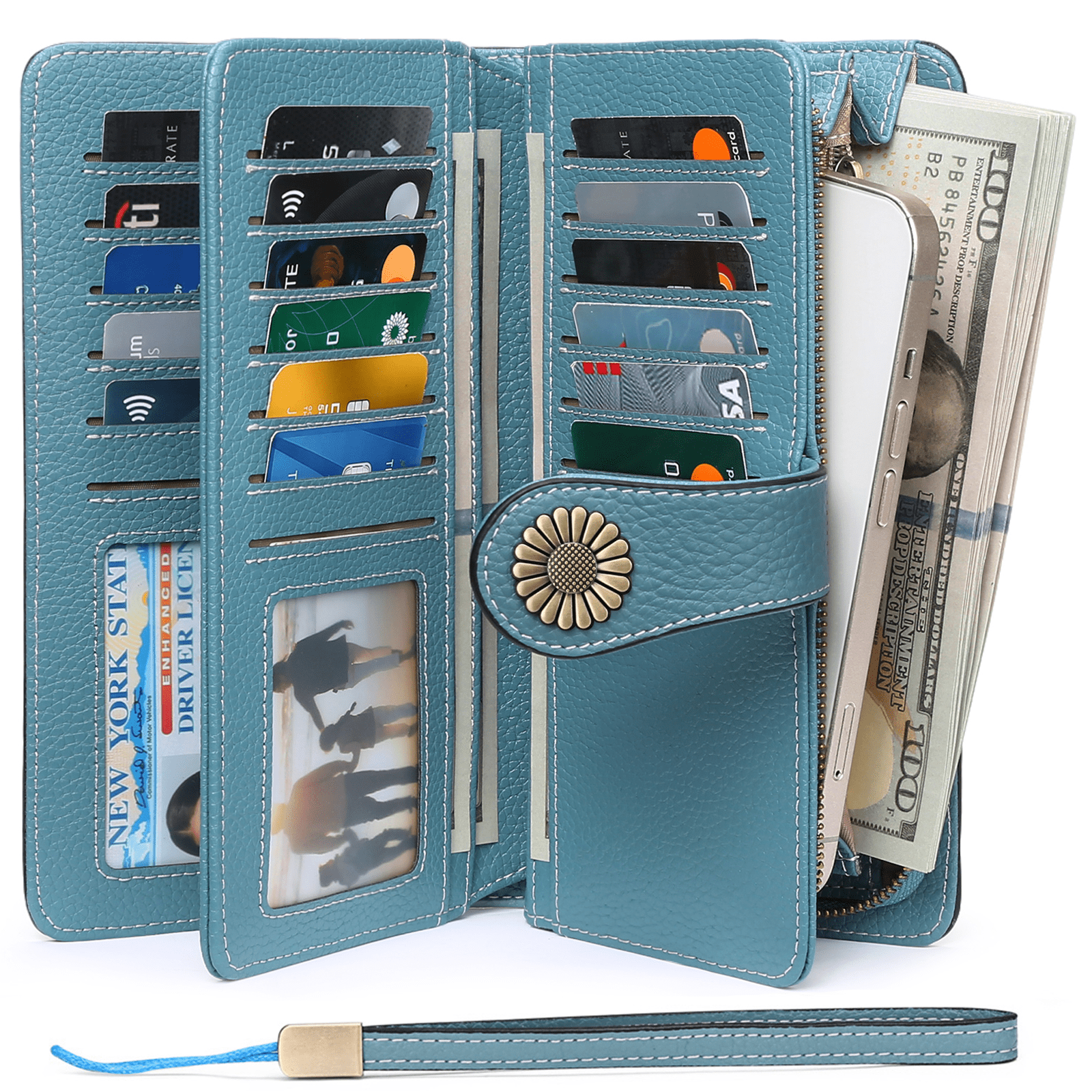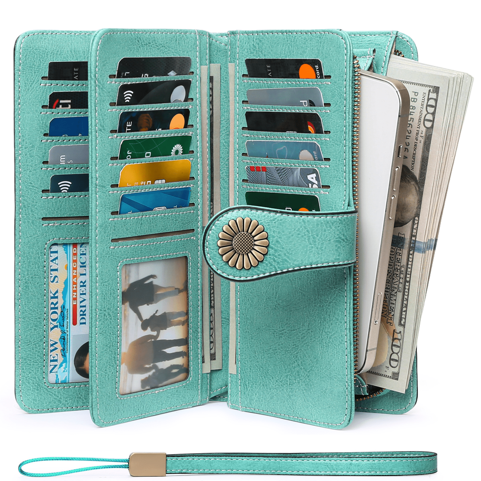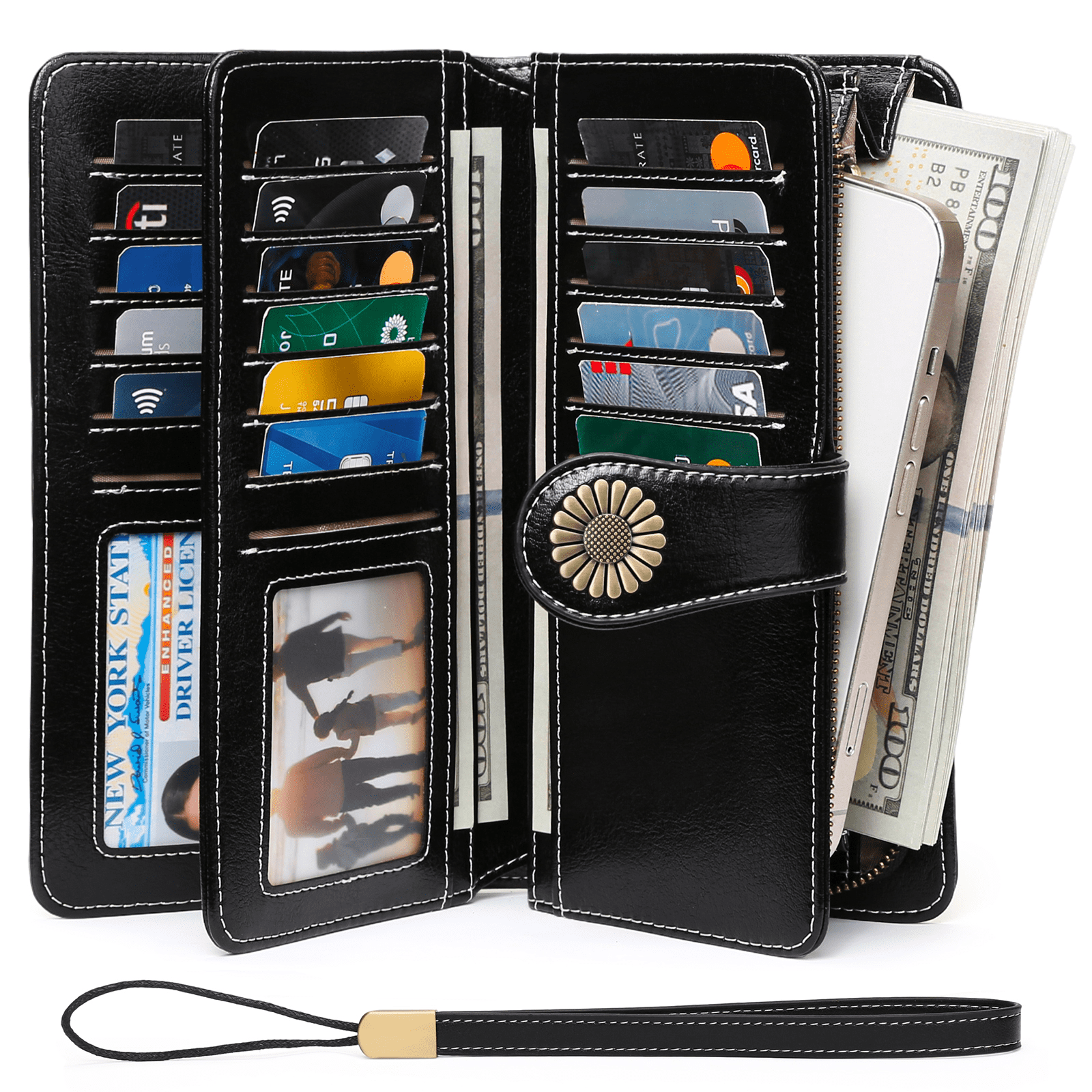 Sendefn Wallets for Women Genuine Leather Credit Card Holder with RFID Blocking Large Capacity Wristlet