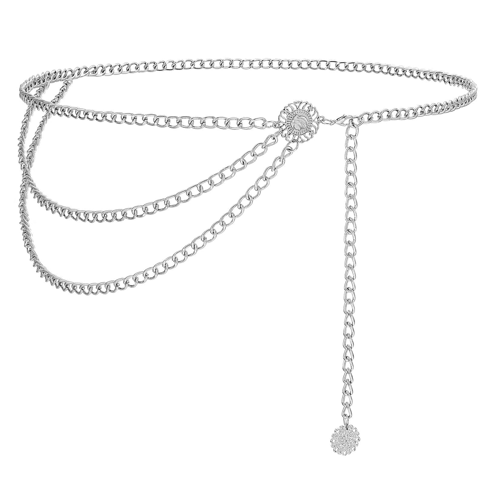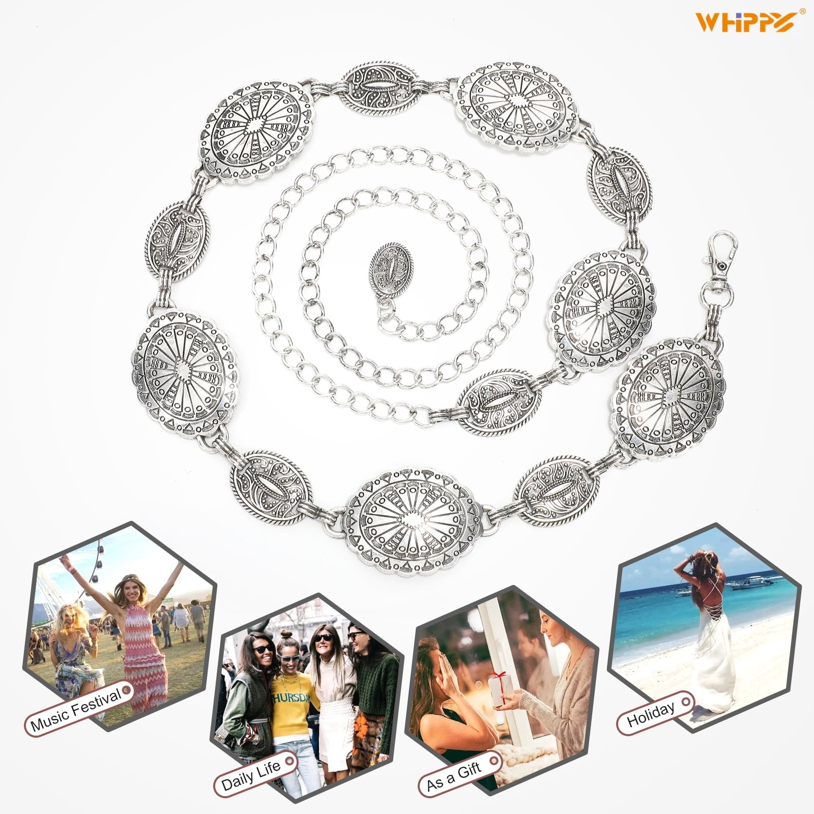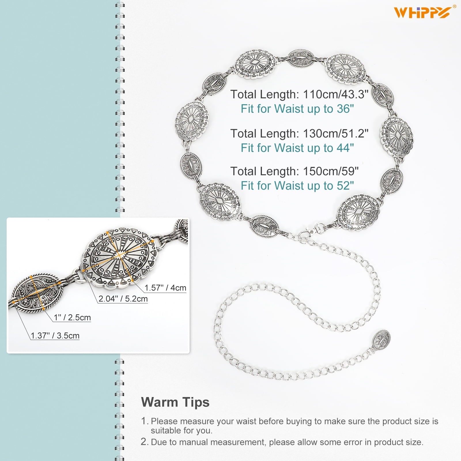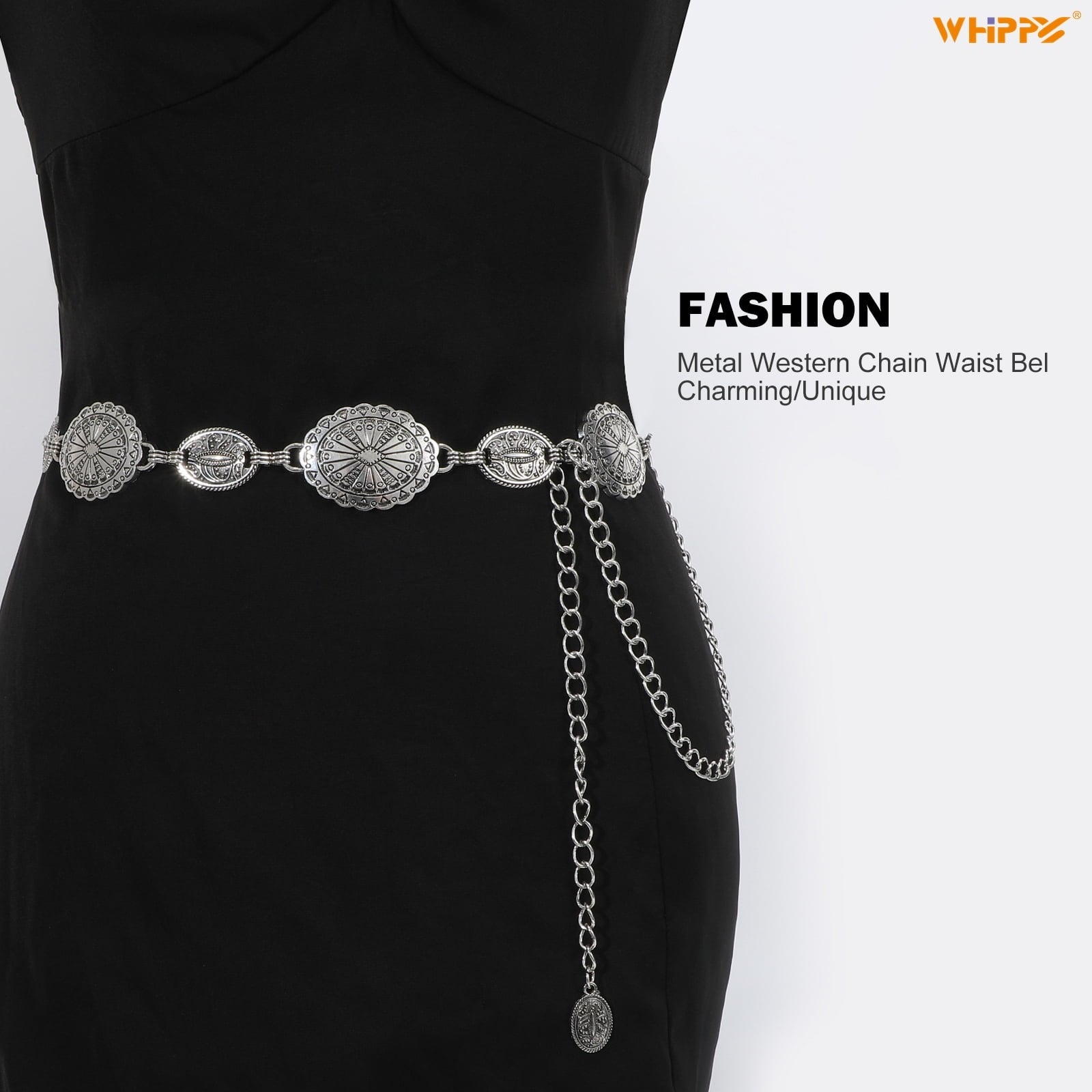 WHIPPY Womens Metal Waist Chain Belt Western Belts for Jeans Dresses