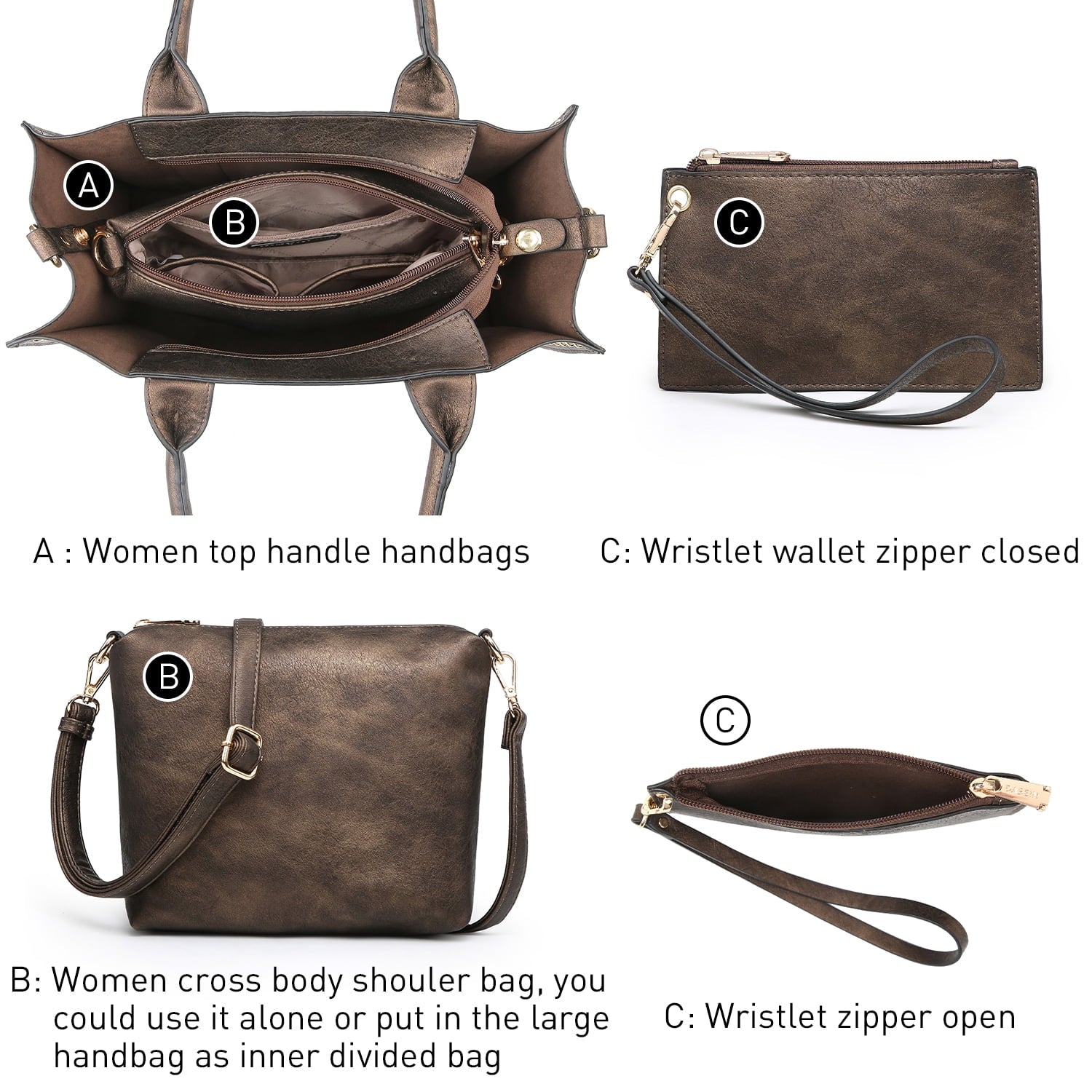 Women's 3Pcs Purse Handbag Shoulder Bag Tote Satchel Hobo Bag Briefcase Work Bag for Ladies