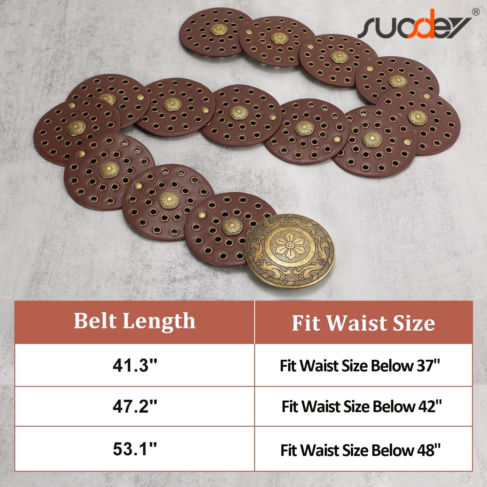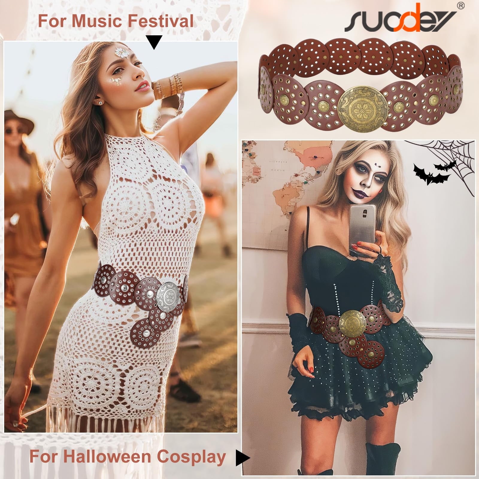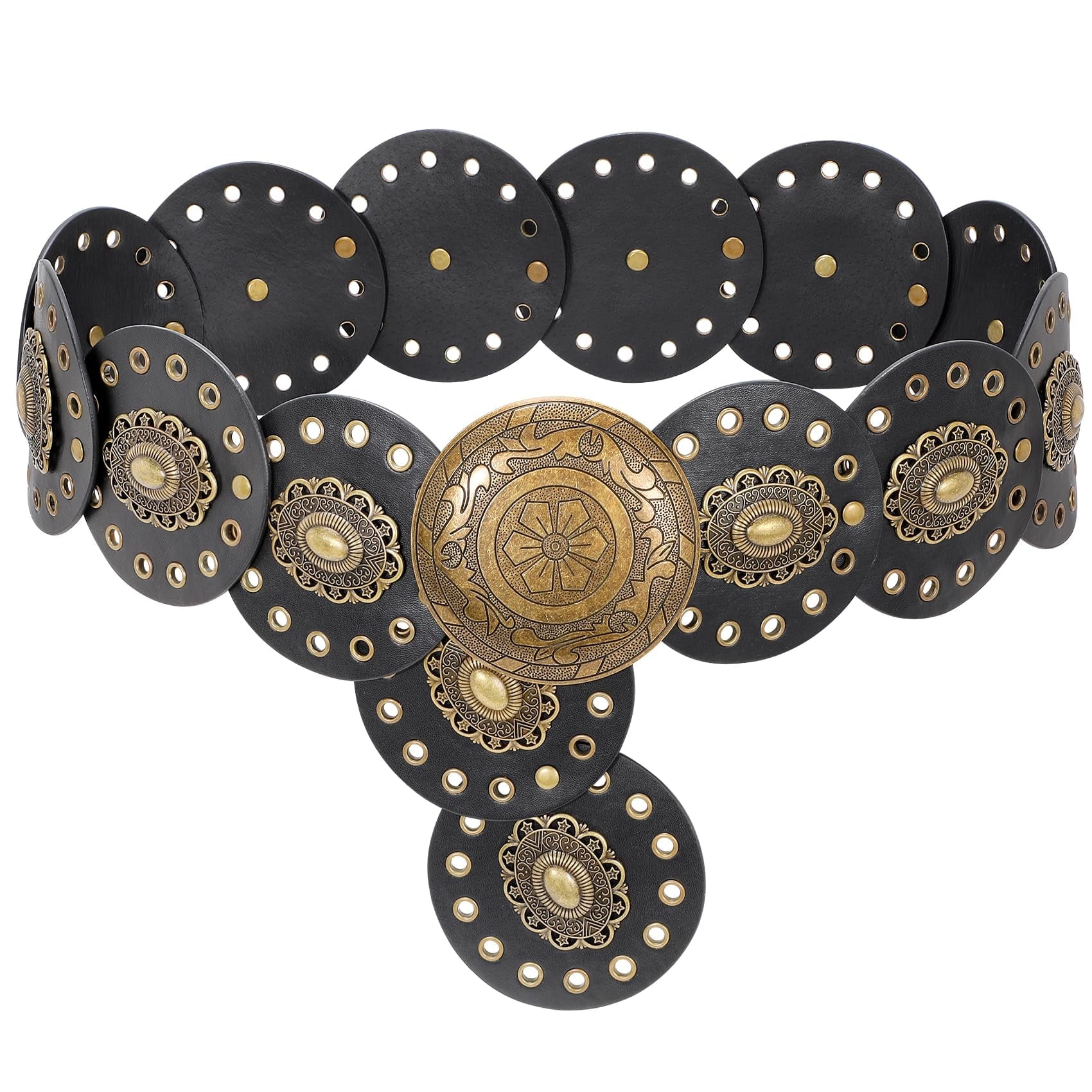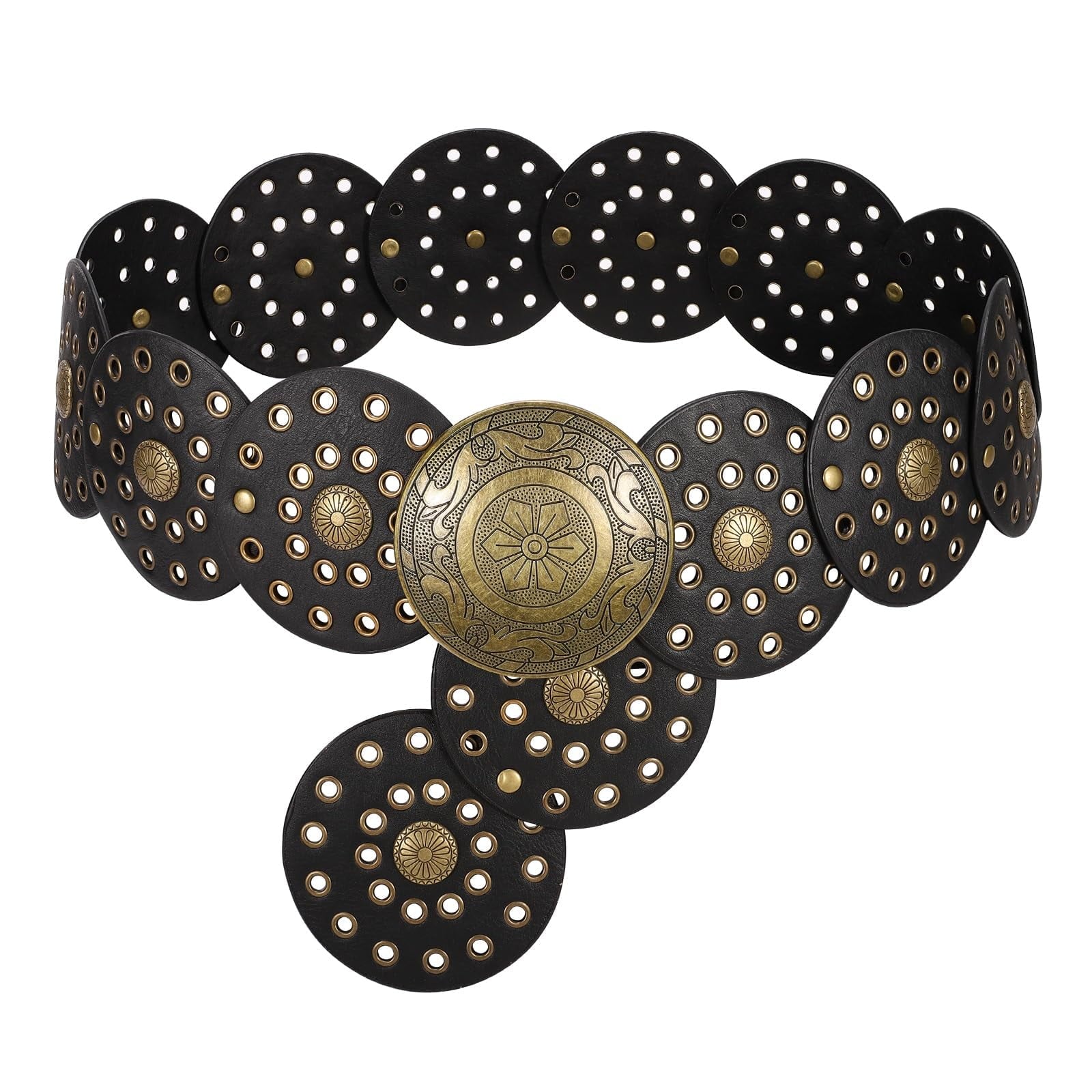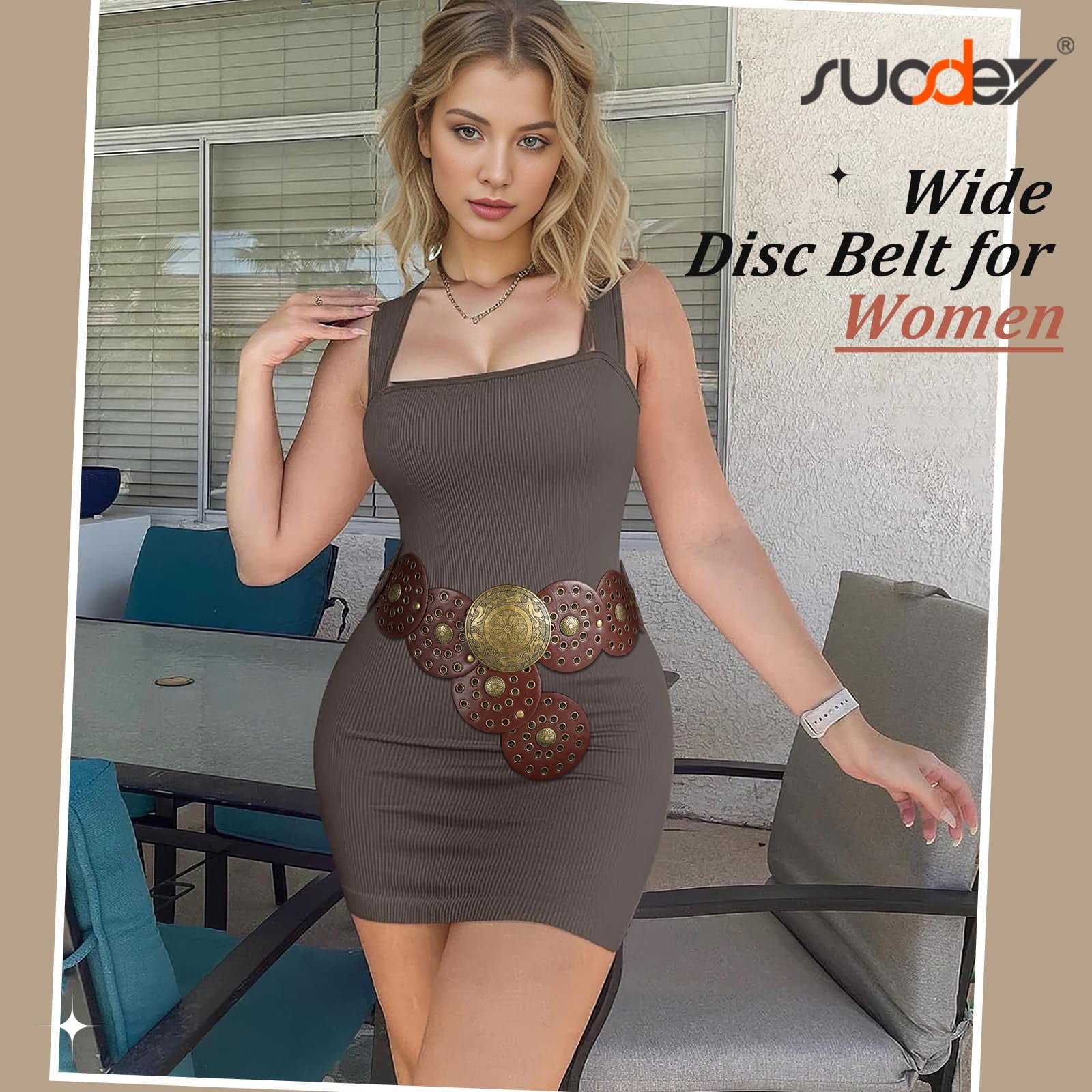 Women's Concho Disc Belt Western Cowboy Cowgirl Wide Leather Boho Country Waist Belts for Dress Jeans