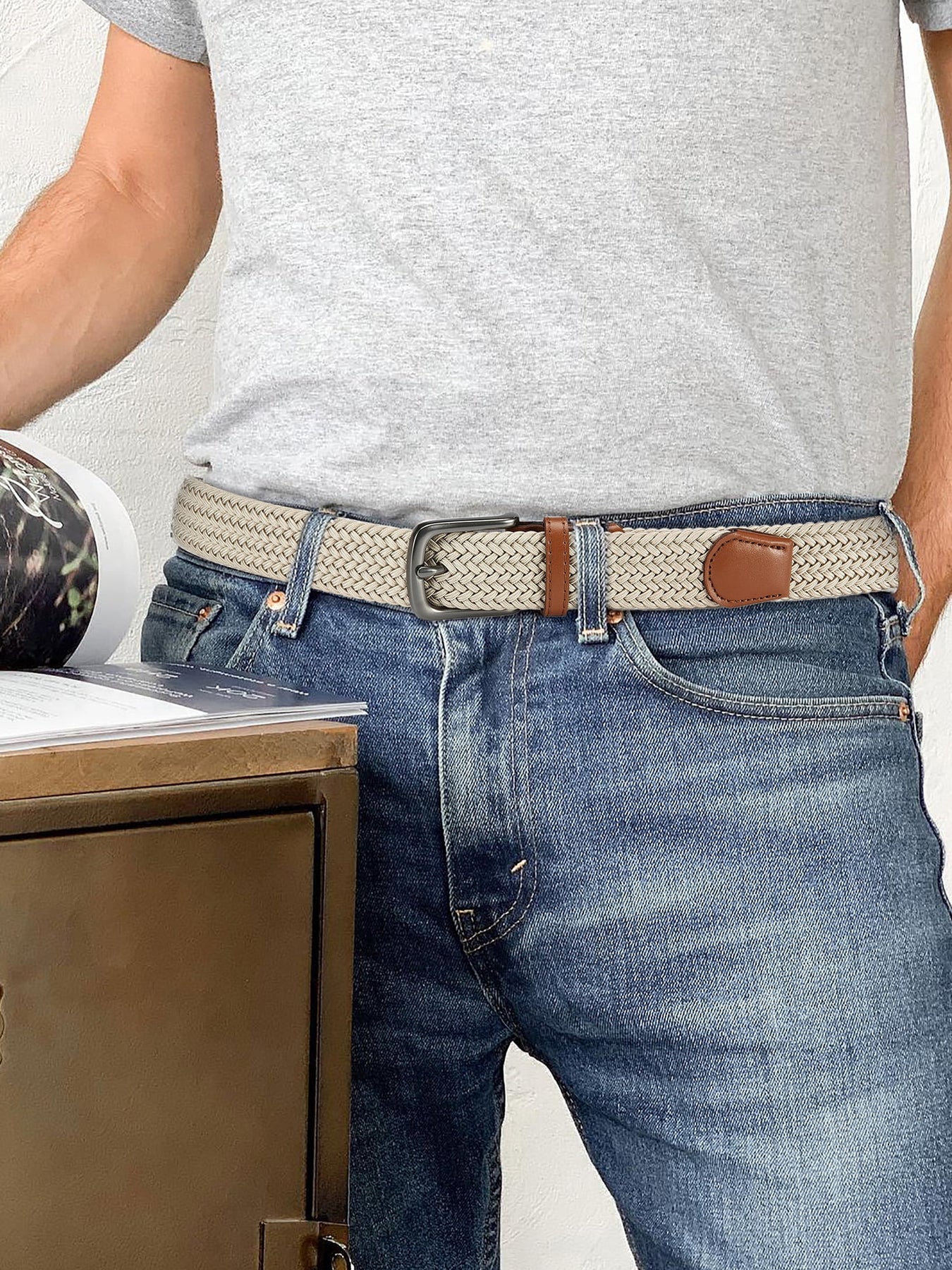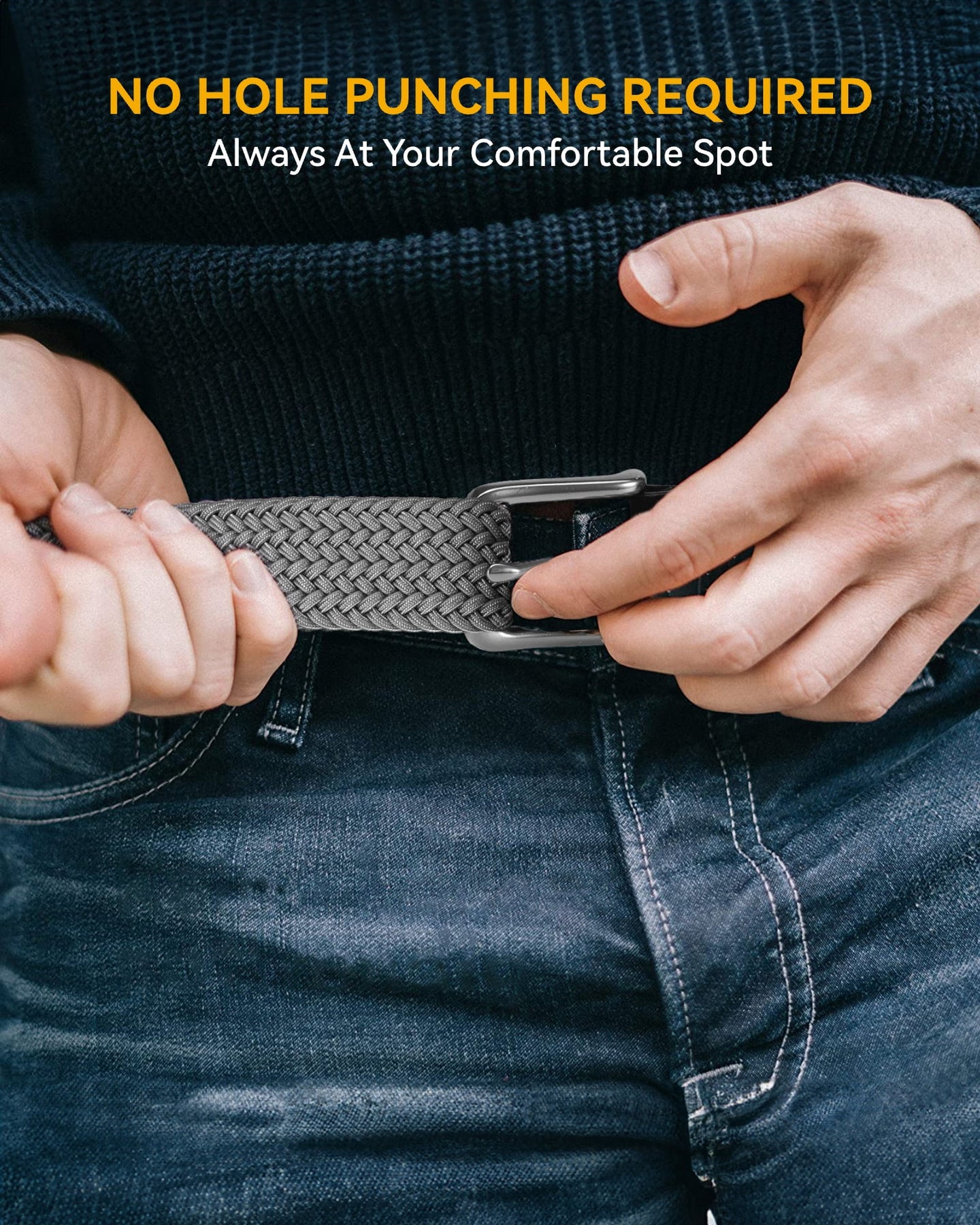 YOETEY Mens Belt Wowens Belt Elastic Braided Woven Belt, Belt for Casual Golf Pants 1 3/8"(35mm)