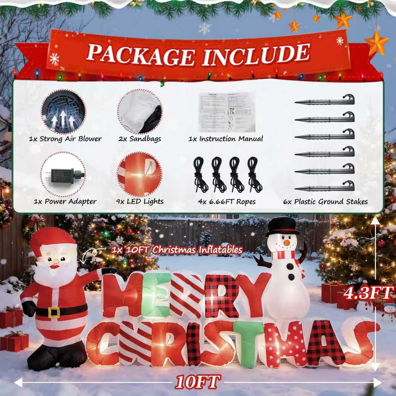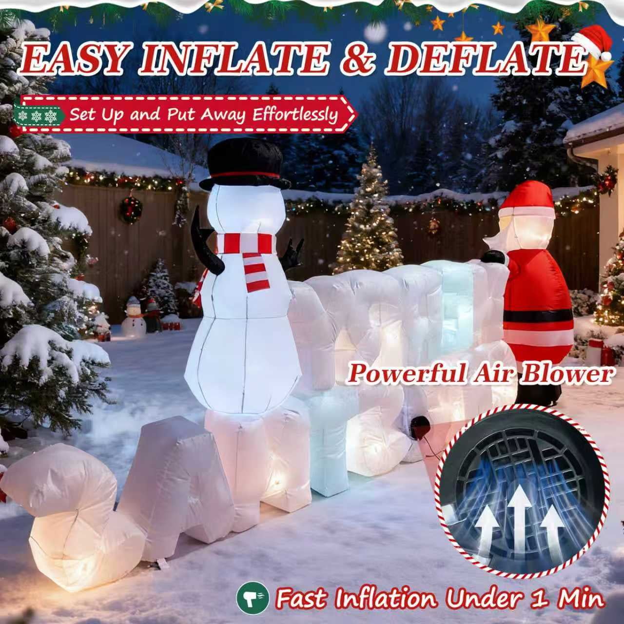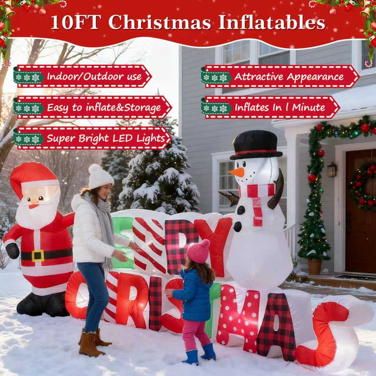 10ft Long Christmas Inflatable with Snowman & Santa Claus ,Built-in LED Lights for Outdoor & Indoor Holiday Yard Decorations