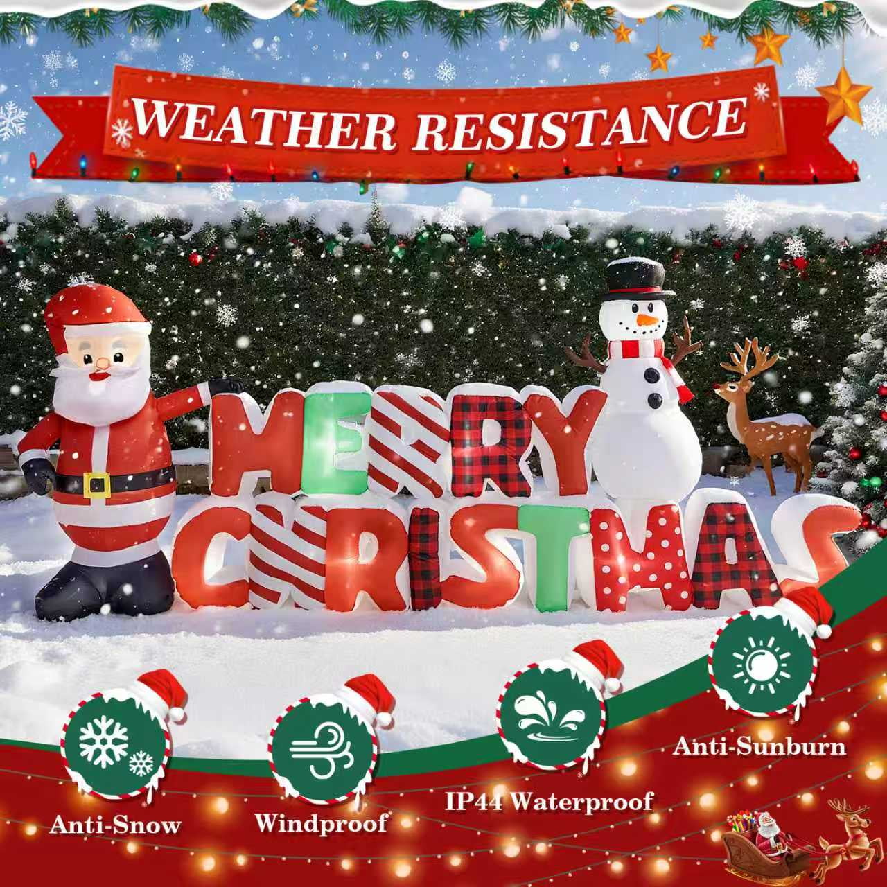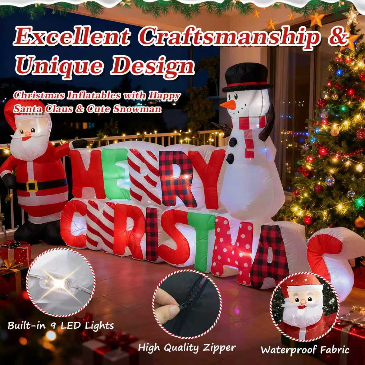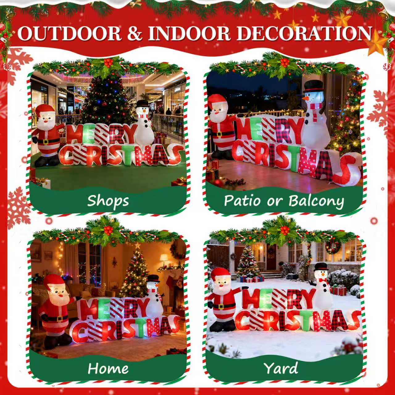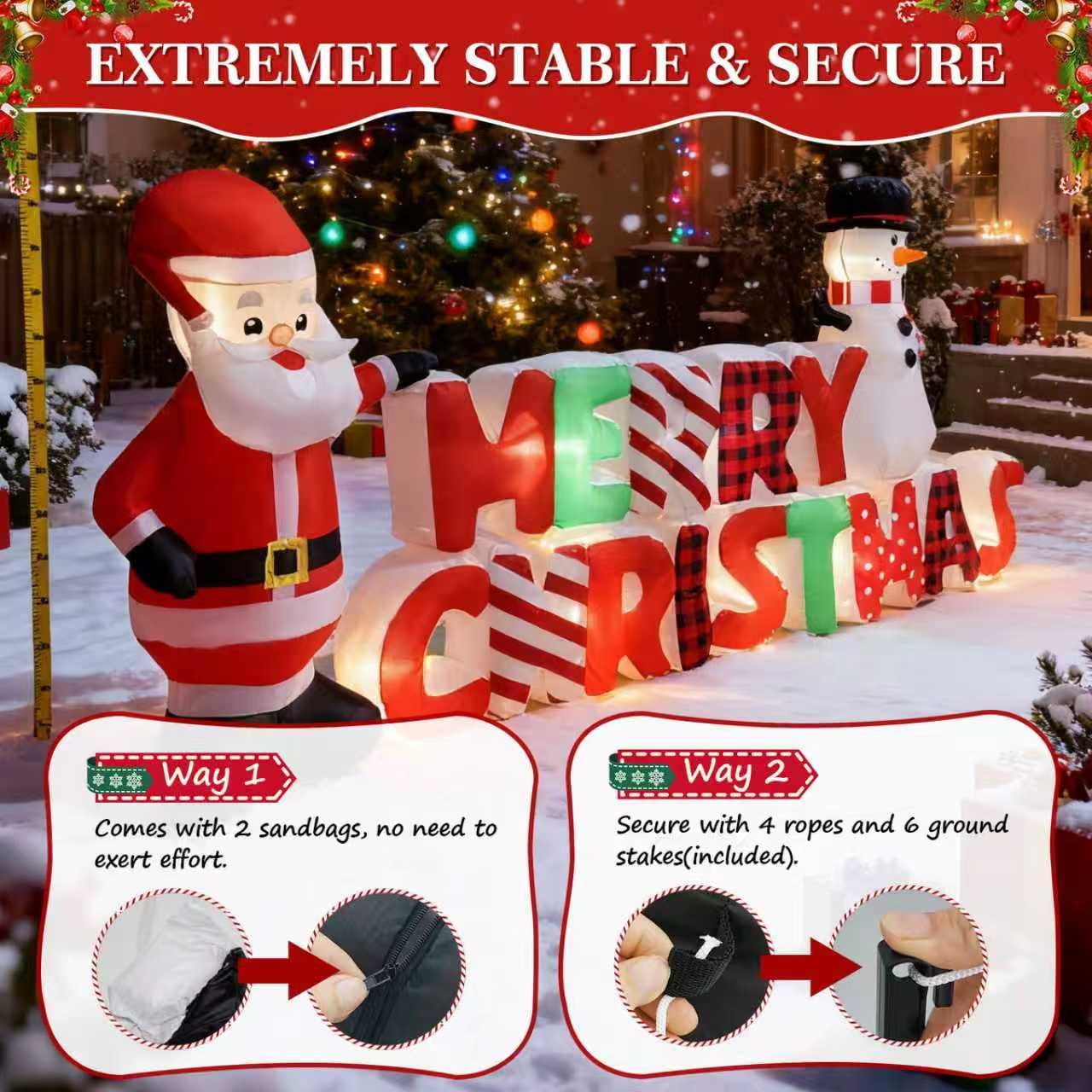 10ft Long Christmas Inflatable with Snowman & Santa Claus ,Built-in LED Lights for Outdoor & Indoor Holiday Yard Decorations