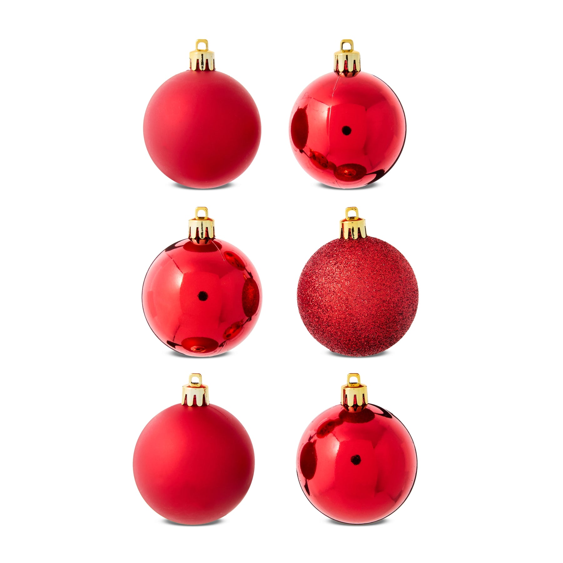 24-Count Red Shatterproof Multi-Textured Christmas Ornaments, 2.36 in, by Holiday Time