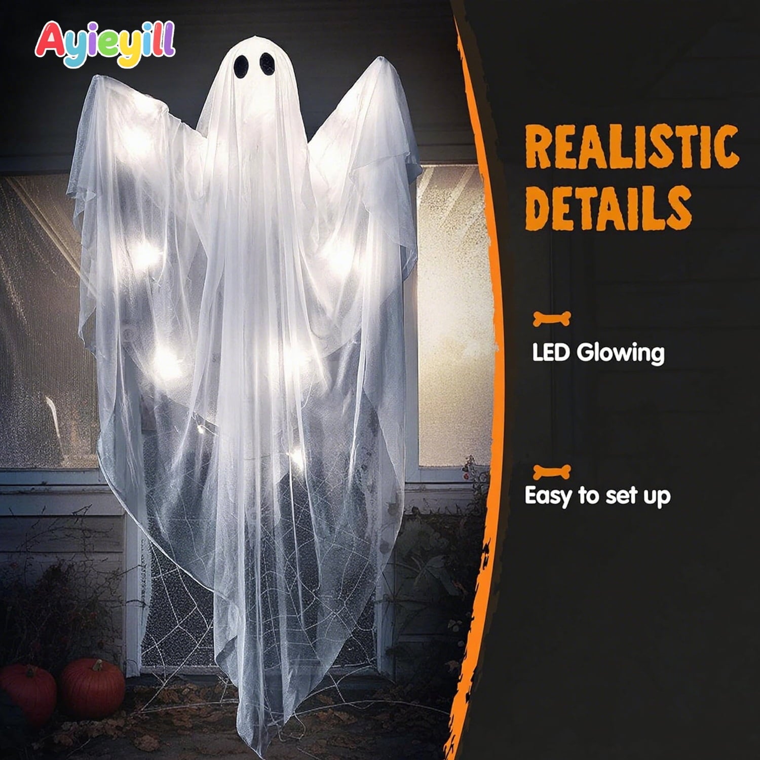 Ayieyill Halloween Ghost Decor with White LED Light, 47” Light up Hanging Ghost Halloween Yard Porch Decorations Outdoor