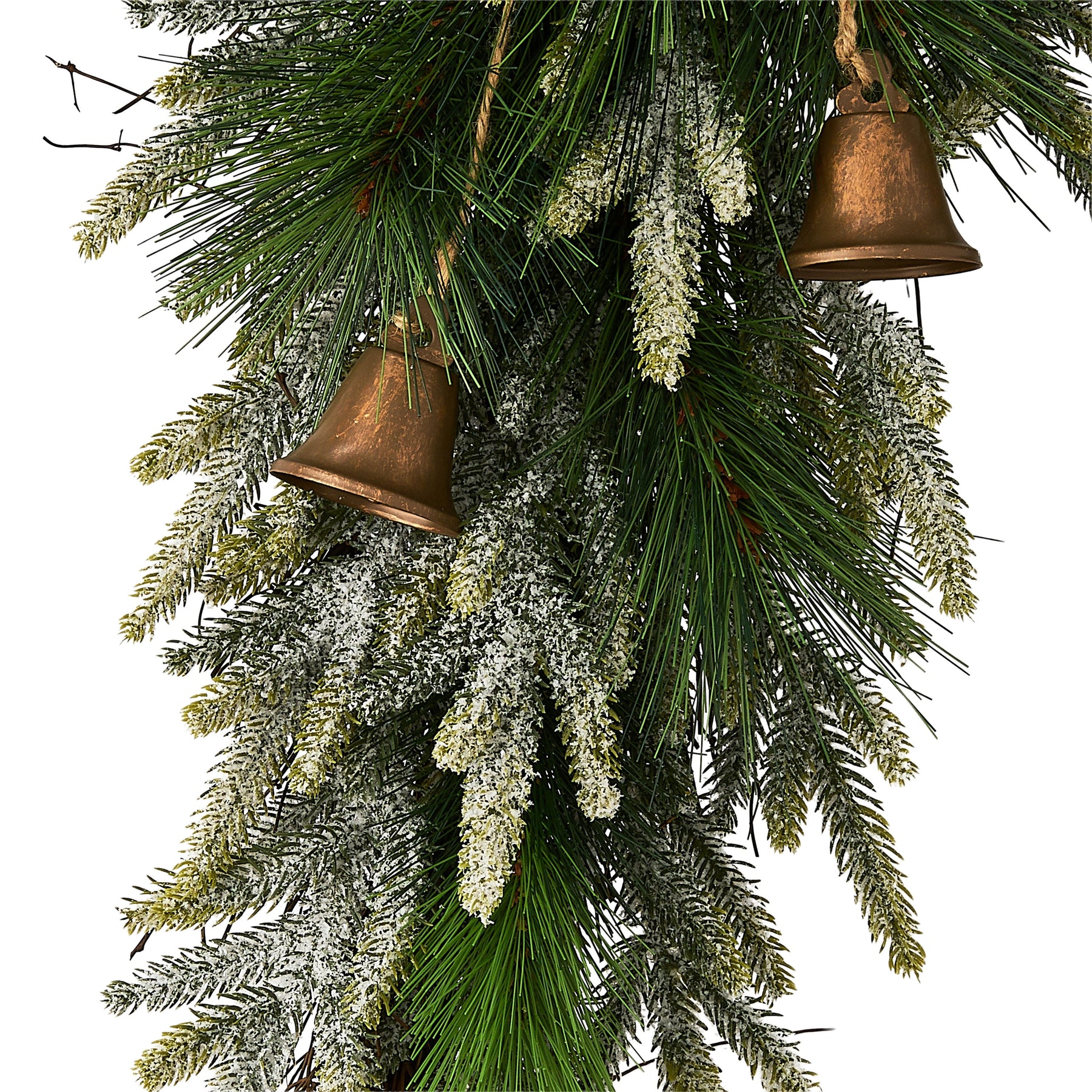 Bells, Bow, and Greenery Decorative Christmas Door Swag, Green and Brown, 28", by Holiday Time