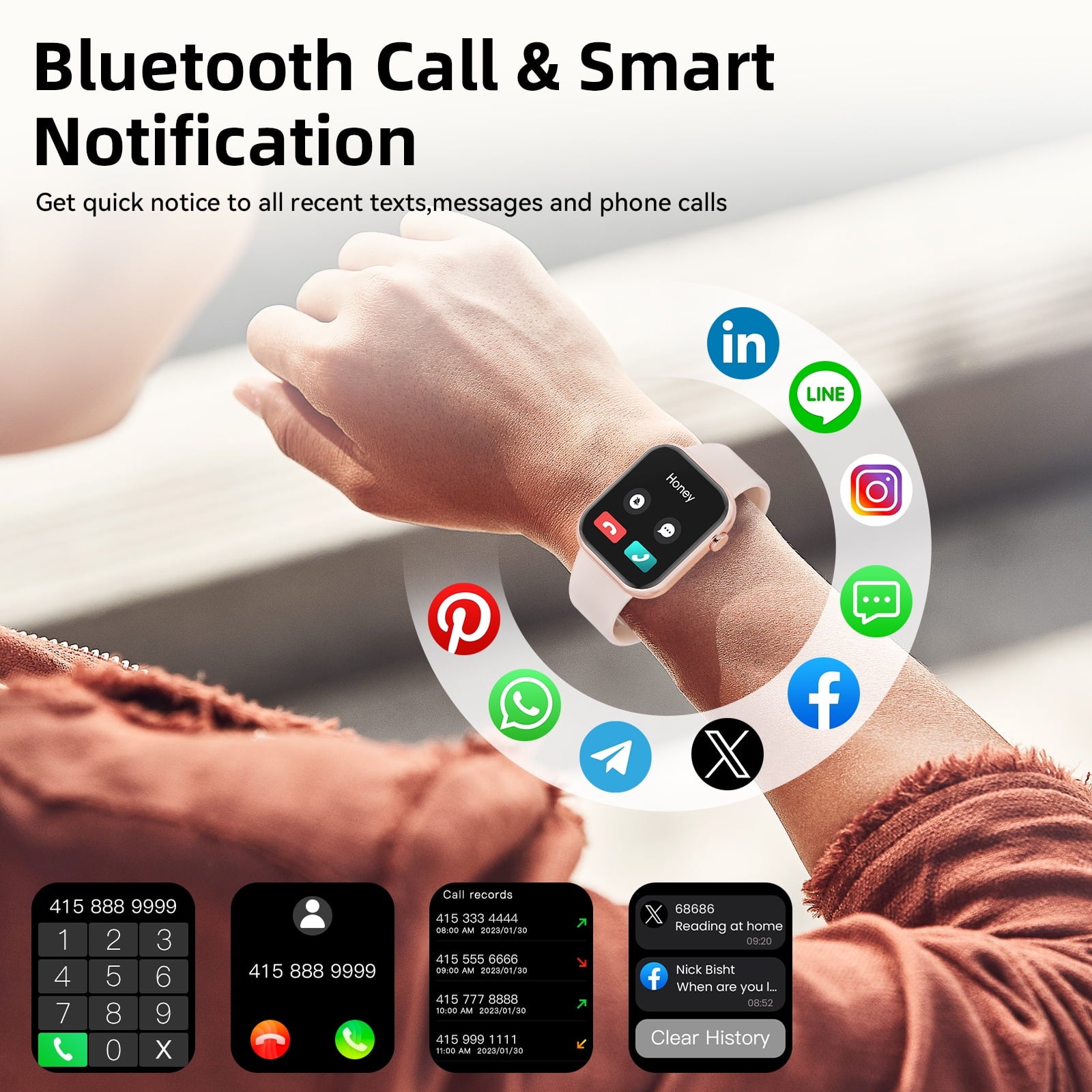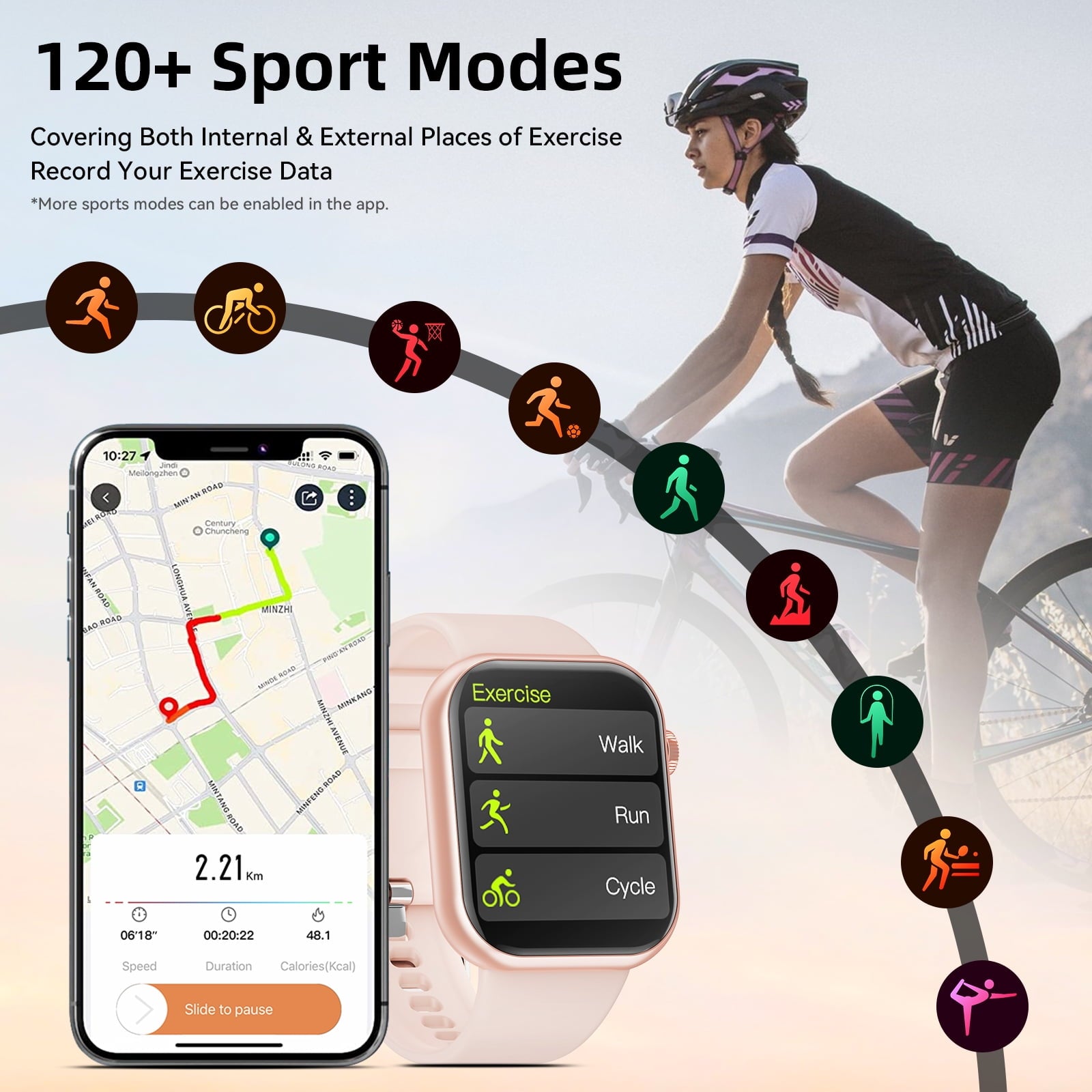 Mingdaln 1.85-inch Men Womens Smartwatch,with Bluetooth Answer/Make Calls/120+Sports Modes/10 Days Standby, IP68 Waterproof Fitness Tracker Fits for Android Iphone Devices, perfect gift(Pink)