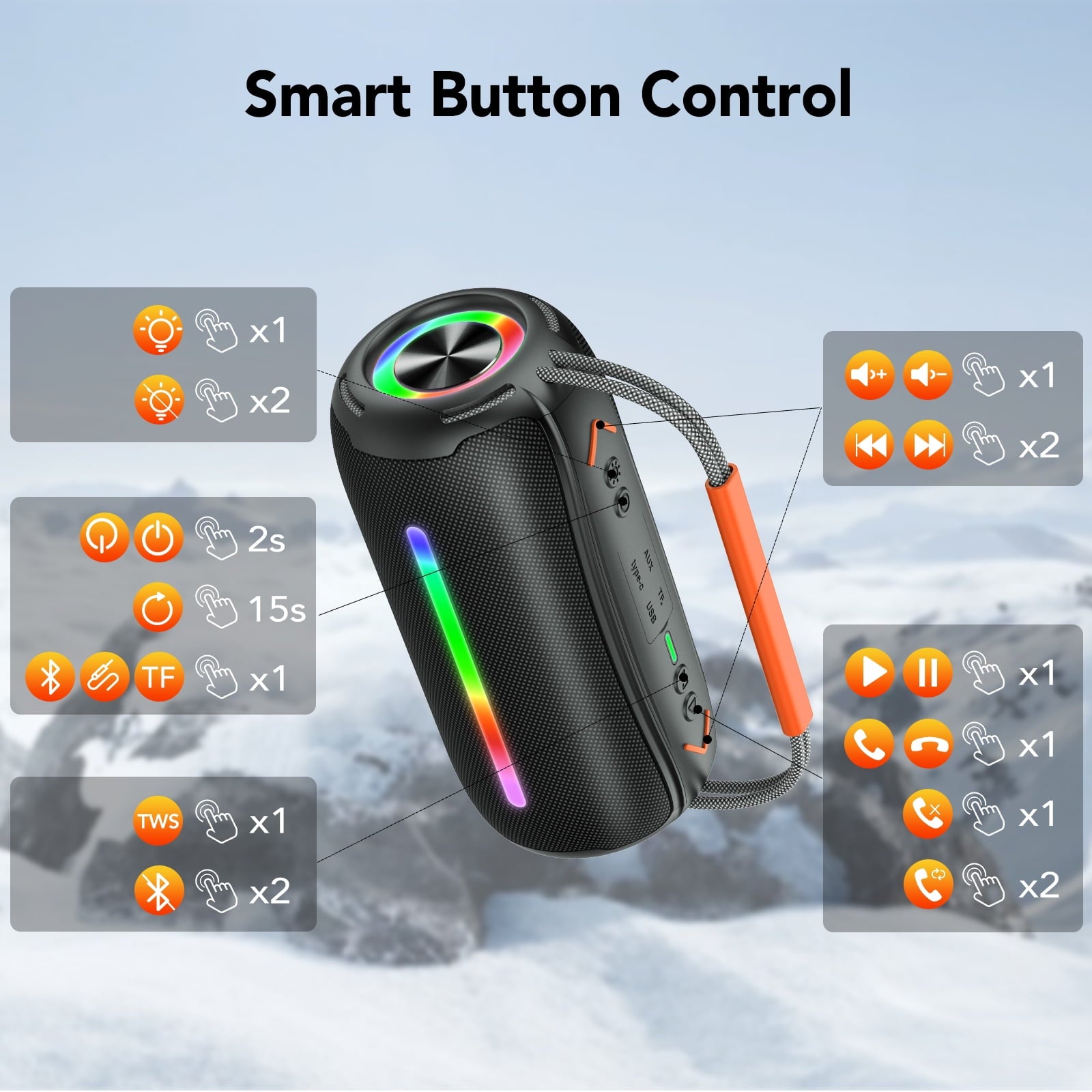 Bluetooth Speaker, Wireless Ultra Bluetooth Speaker with 66mm Drivers, 4000mAh Battery 24Hrs Playtime, RGB Lights, BT5.4, IP7 Waterproof, AUX, TF Card, Suitable for Home/Party/Outdoor/Beach, Gift