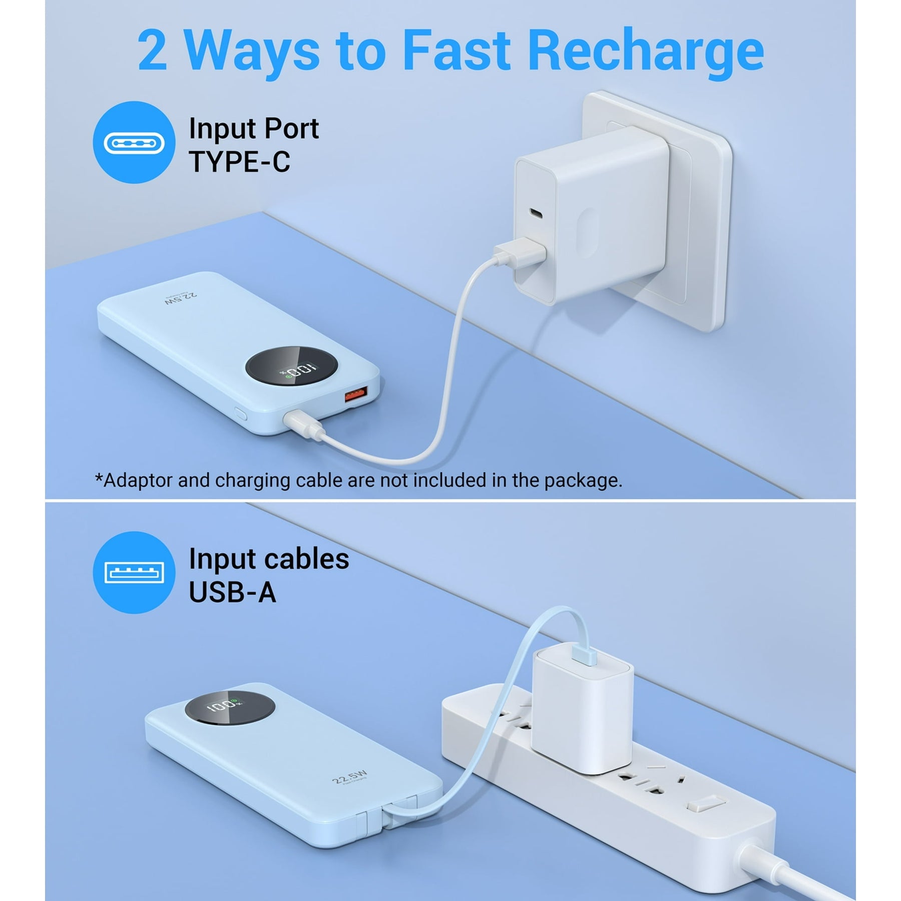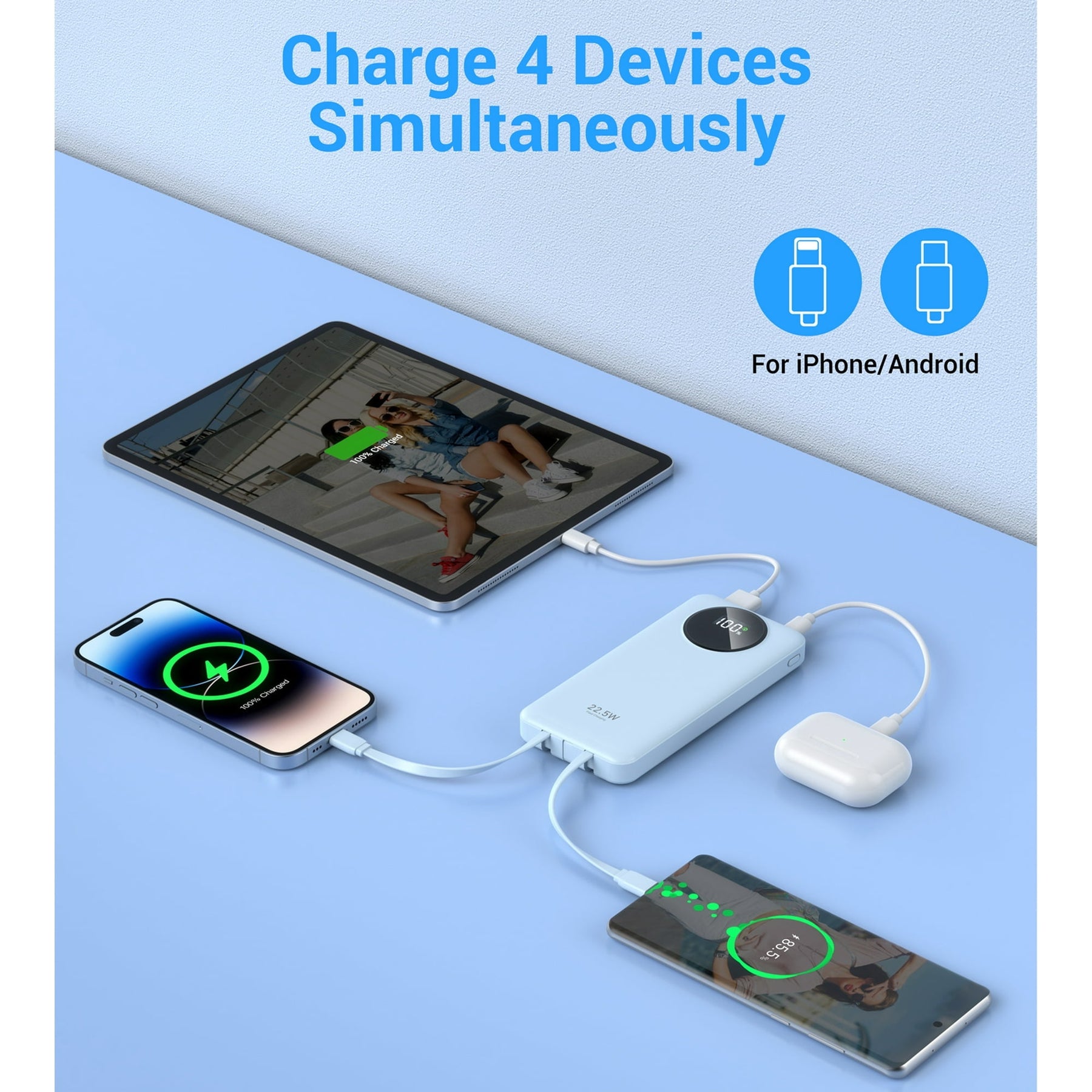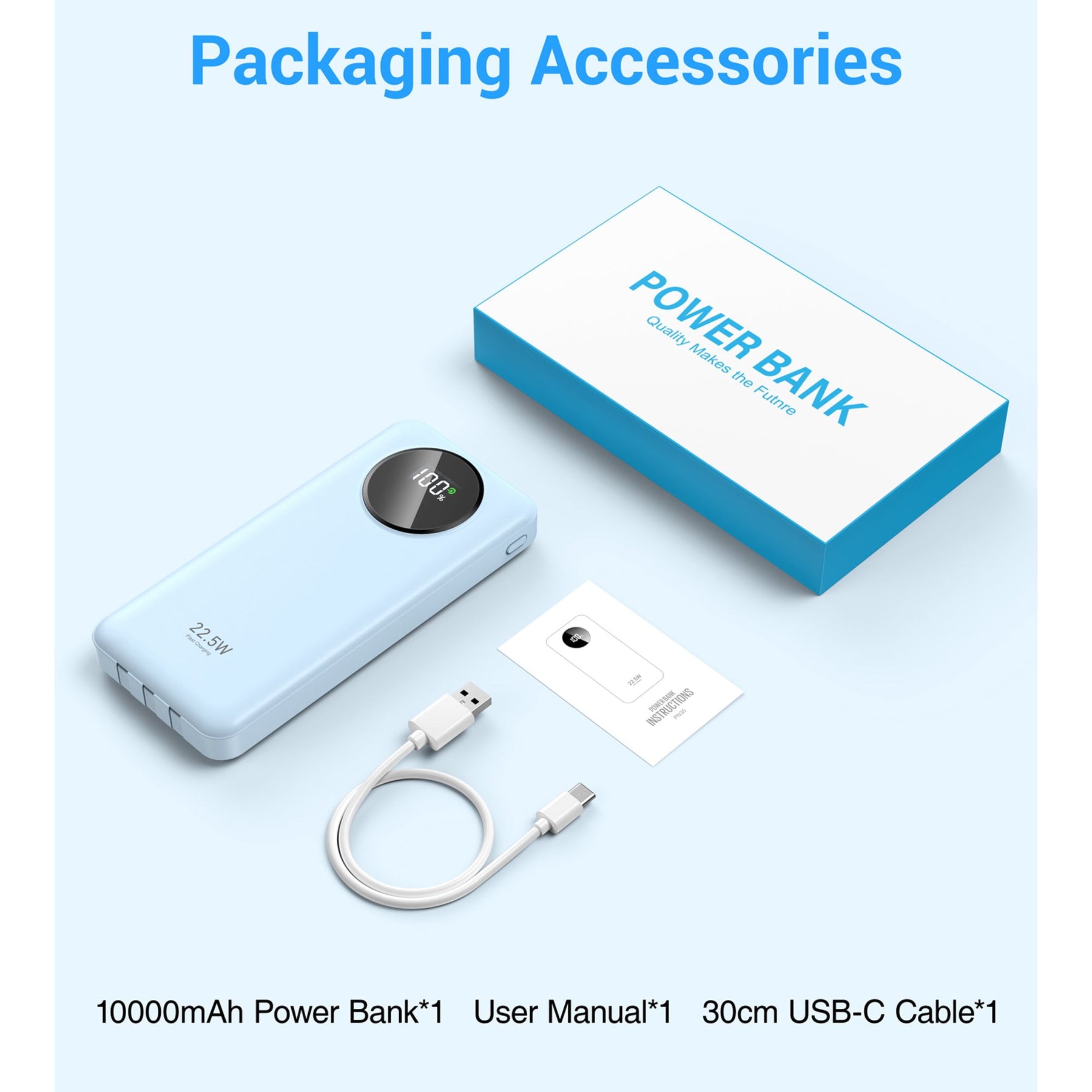 JIUMESS 10000mAh Power Bank 22.5W Fast Charging Portable Charger with Cables, USB Battery Pack Compatible for iPhone and Android Cell Phone