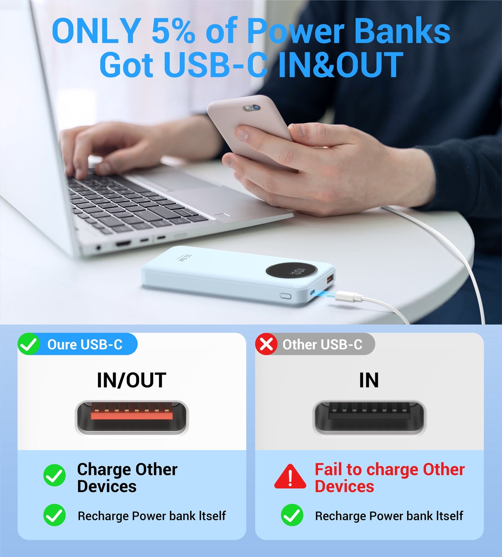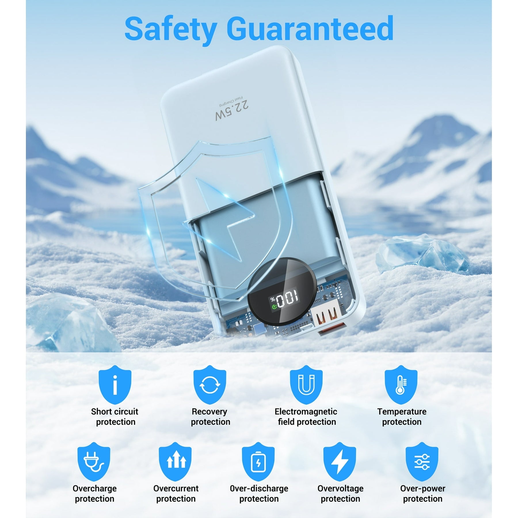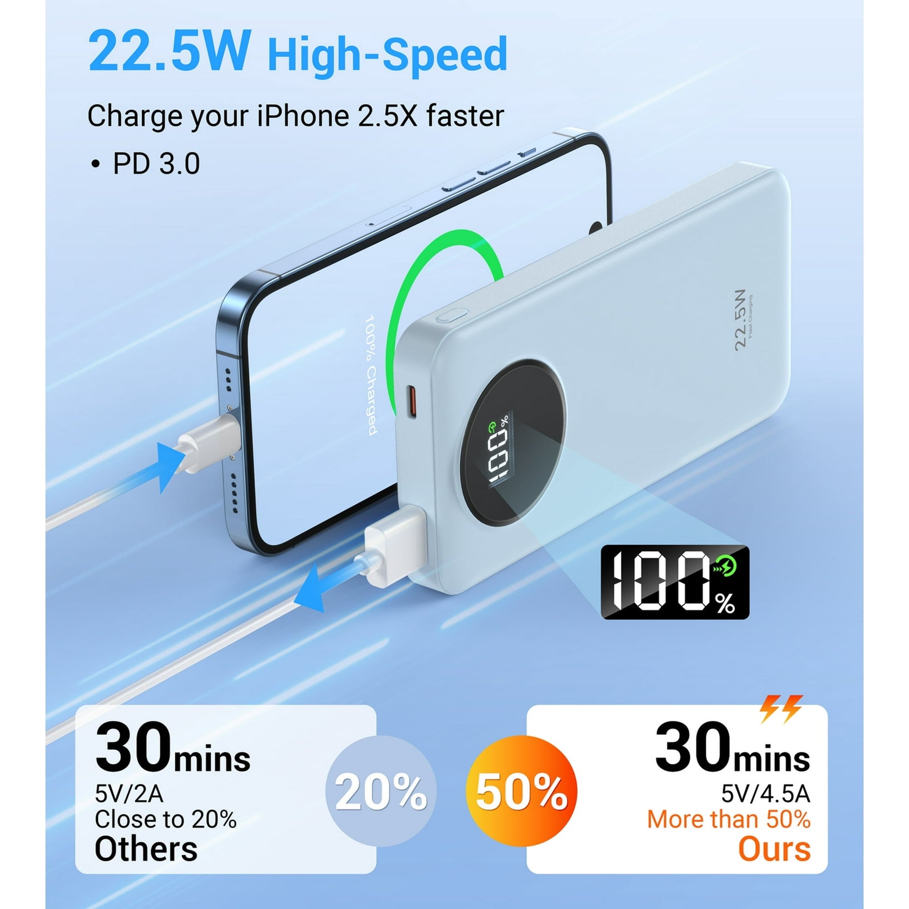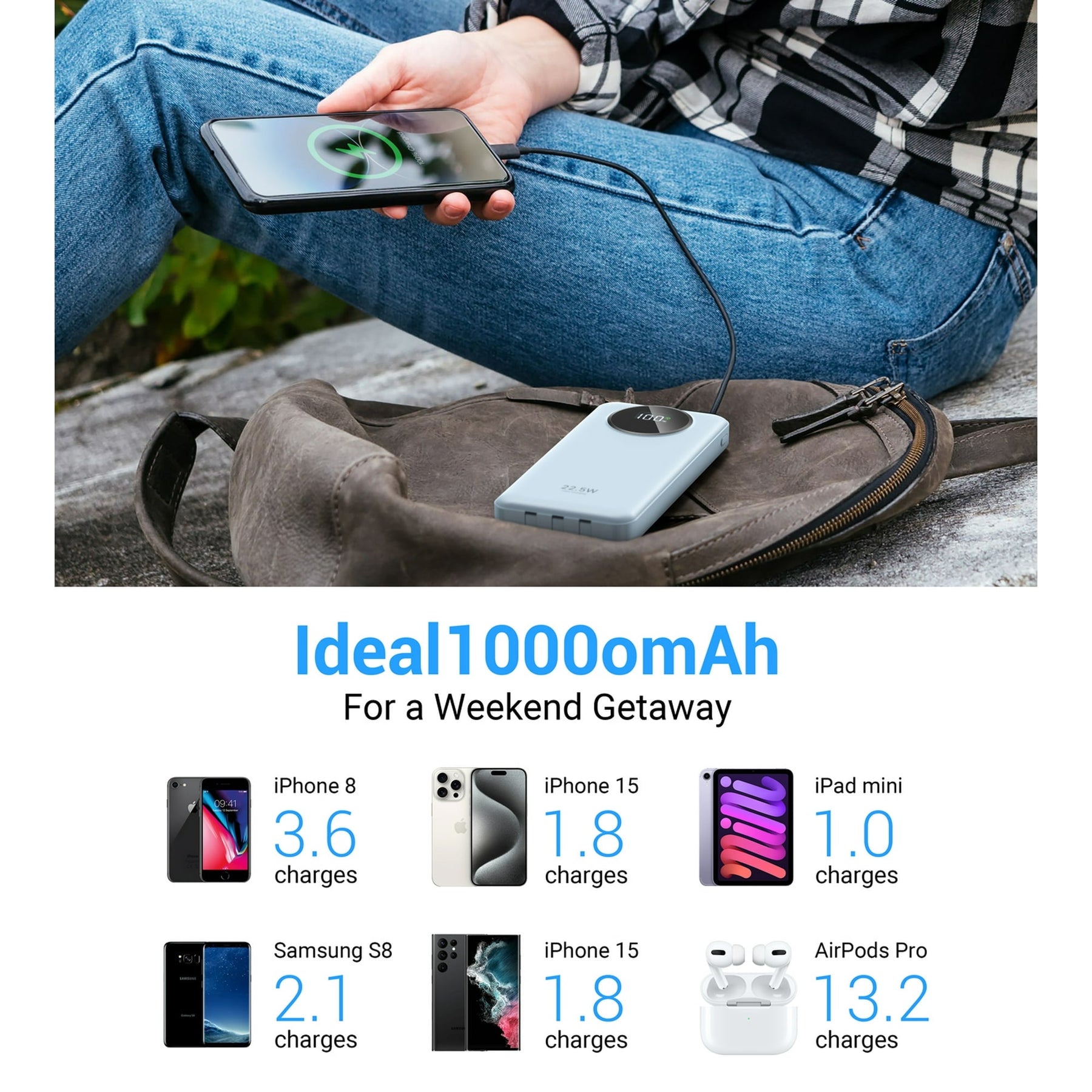 JIUMESS 10000mAh Power Bank 22.5W Fast Charging Portable Charger with Cables, USB Battery Pack Compatible for iPhone and Android Cell Phone