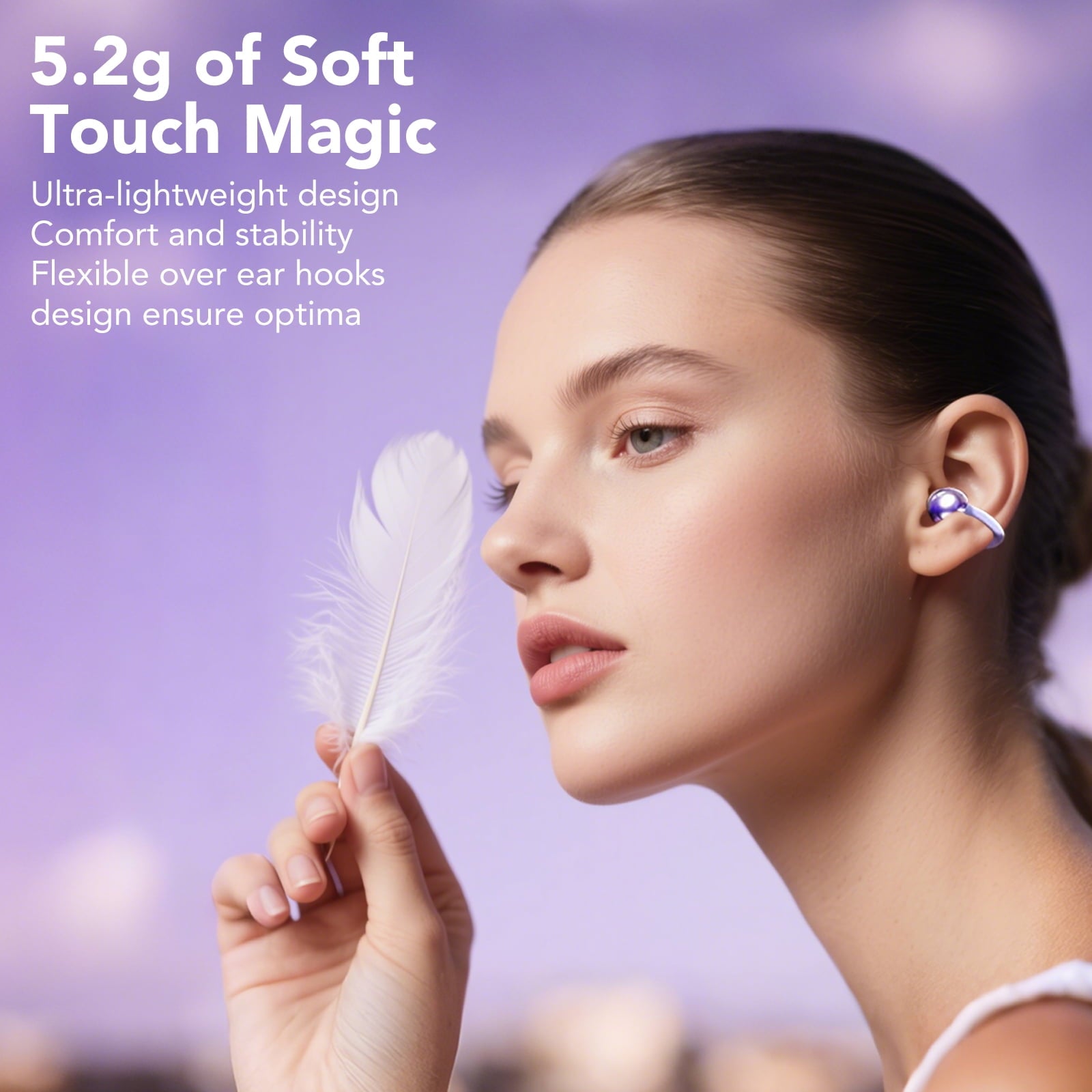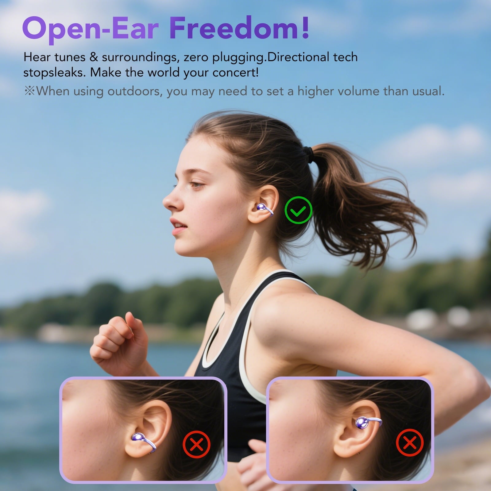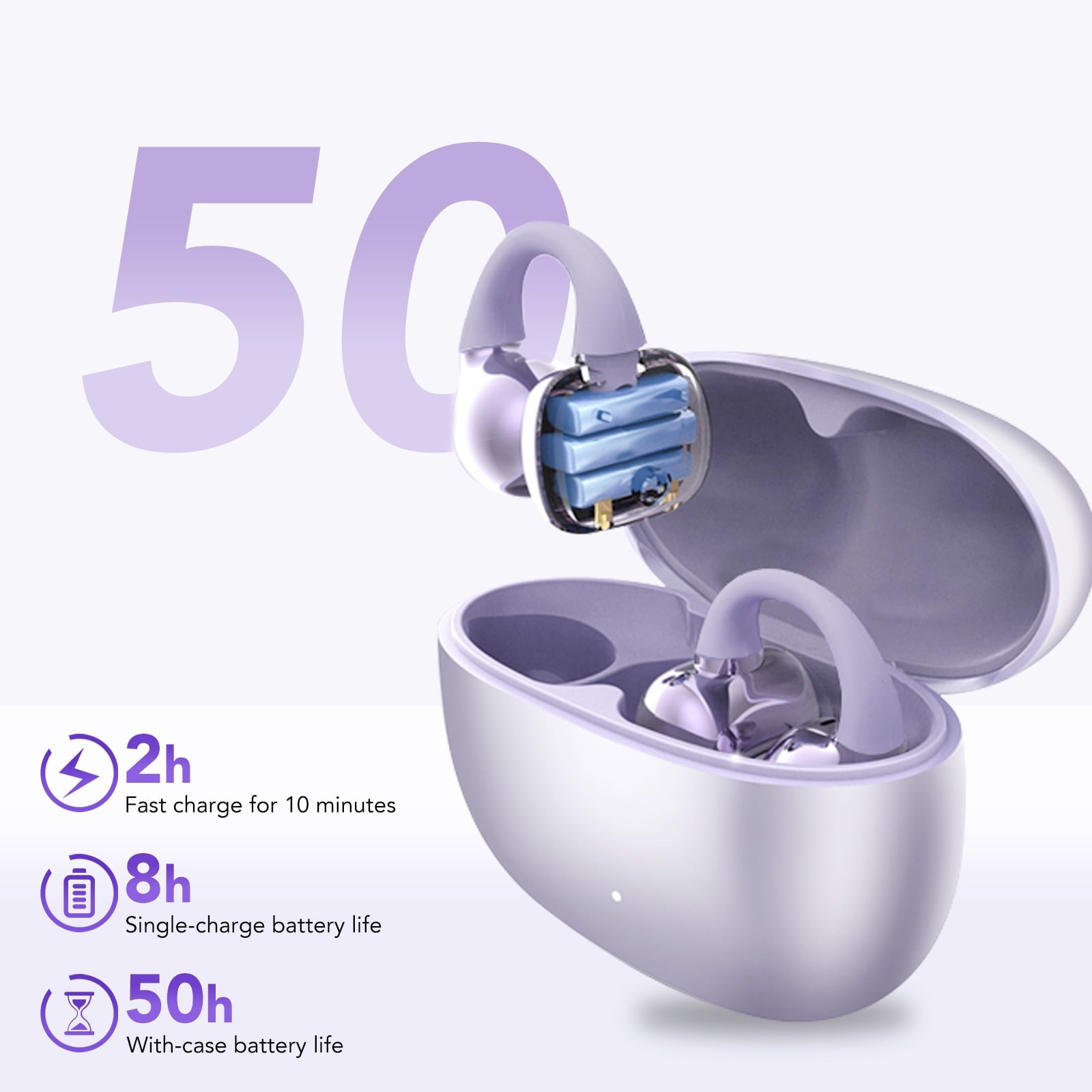 Open Ear Earbuds, Wireless Earbuds, Bluetooth Headphones with Mic, Adaptive Noise Cancelling Calls, Bluetooth 5.4, 50H Playtime, Light Weight, Clip On Earbuds for Workout/Running (Purple)