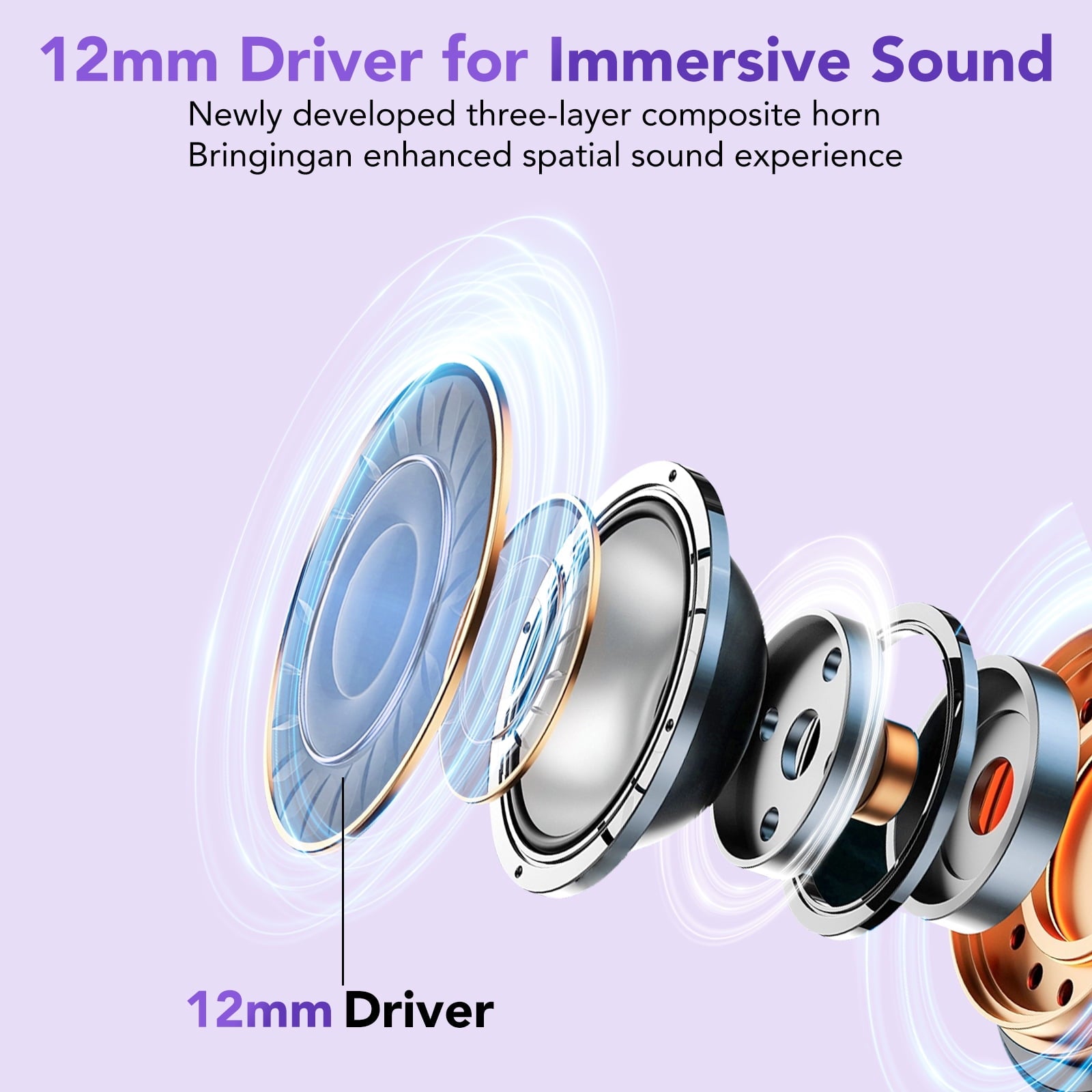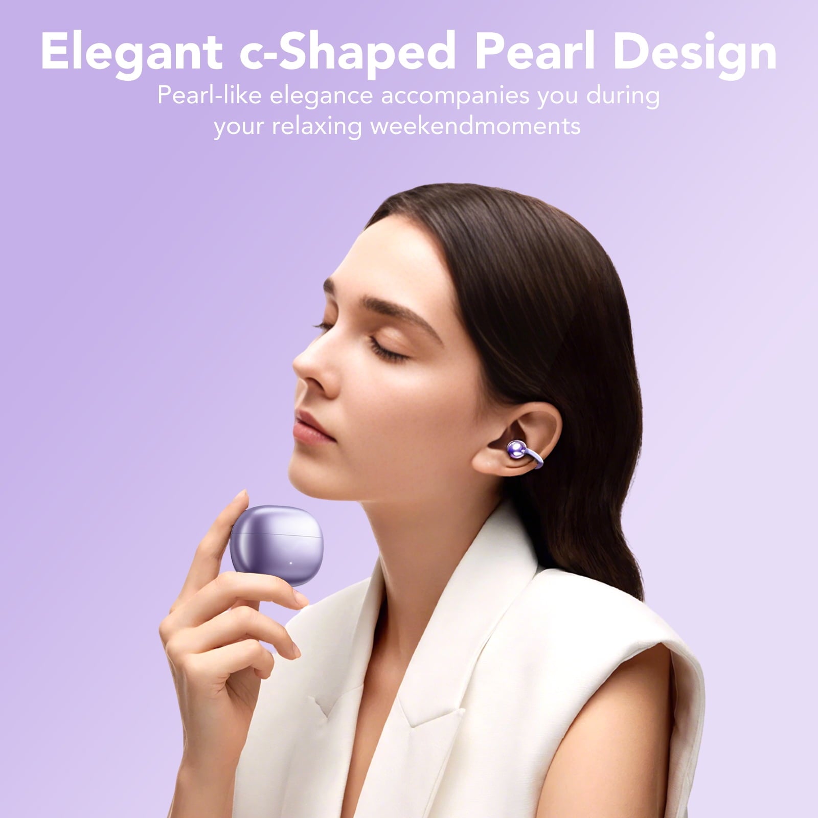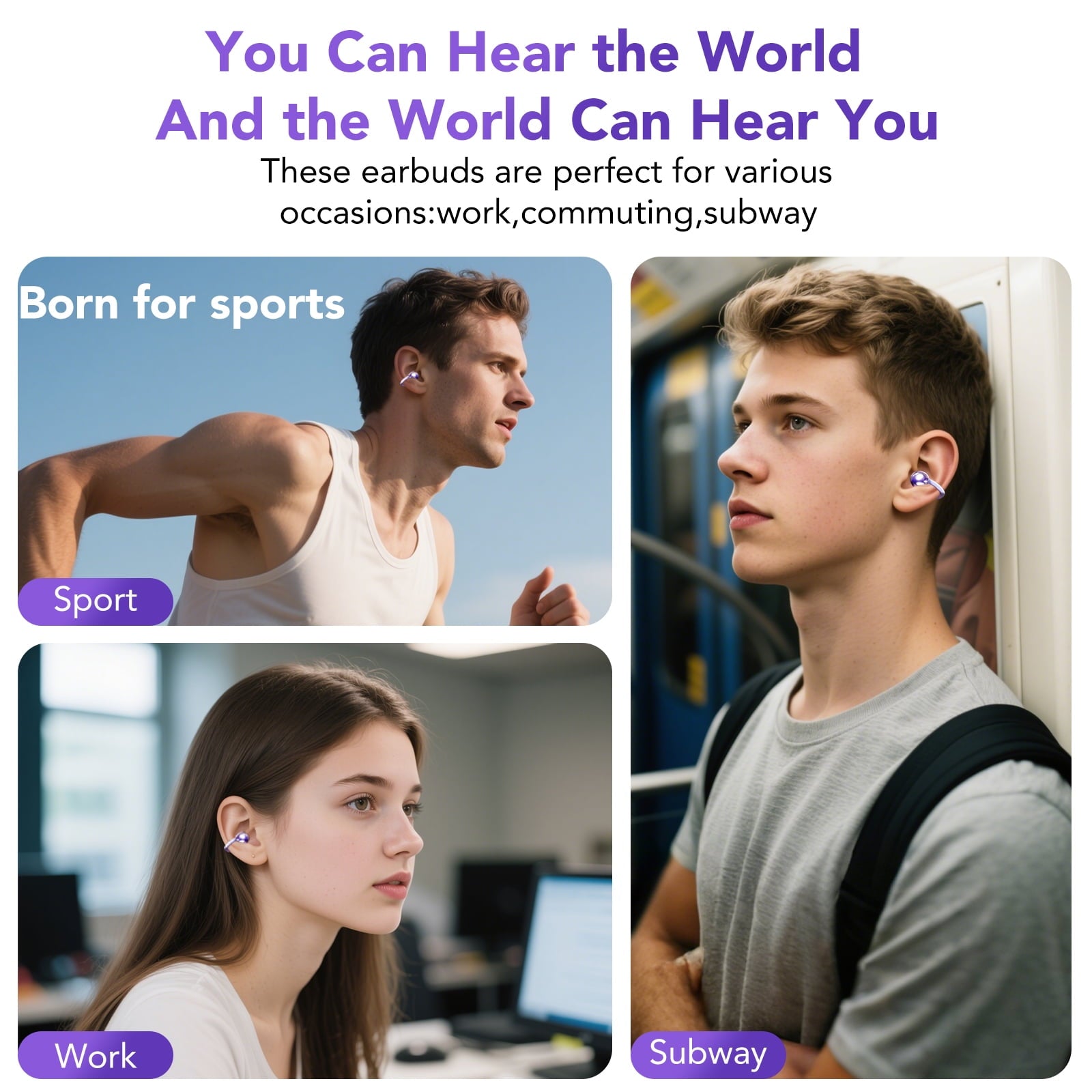 Open Ear Earbuds, Wireless Earbuds, Bluetooth Headphones with Mic, Adaptive Noise Cancelling Calls, Bluetooth 5.4, 50H Playtime, Light Weight, Clip On Earbuds for Workout/Running (Purple)