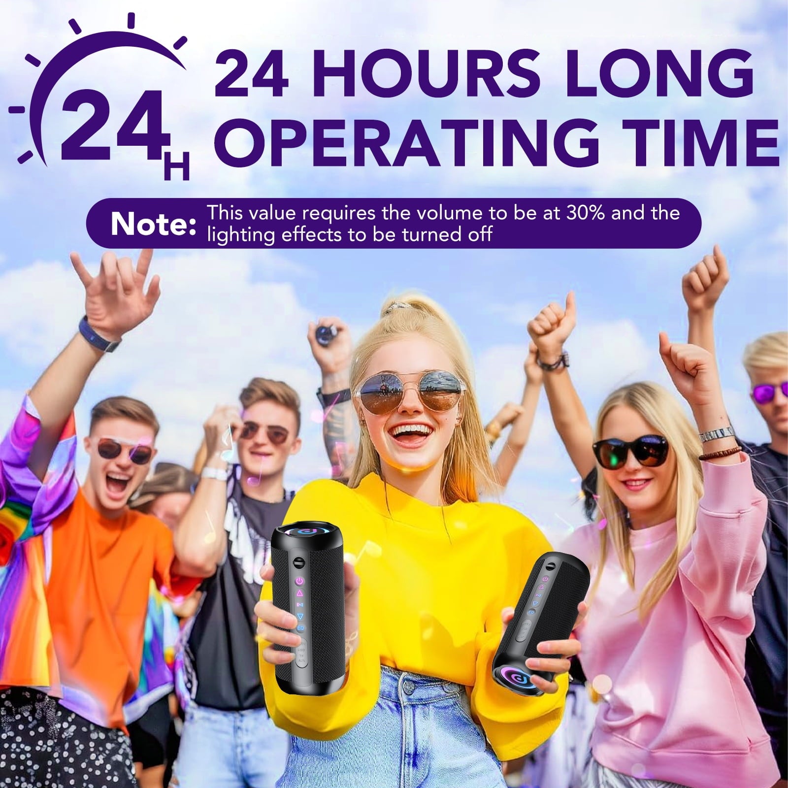 Portable Bluetooth Speaker IPX7 Waterproof, 30W Loud Sound, Deep Bass, Bluetooth 5.4, LED Lights, Wireless Stereo Pairing, 24H Playtime, for Home/Outdoor/Party/Beach, Birthday Gift (Black)