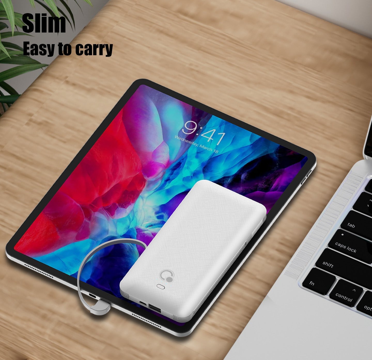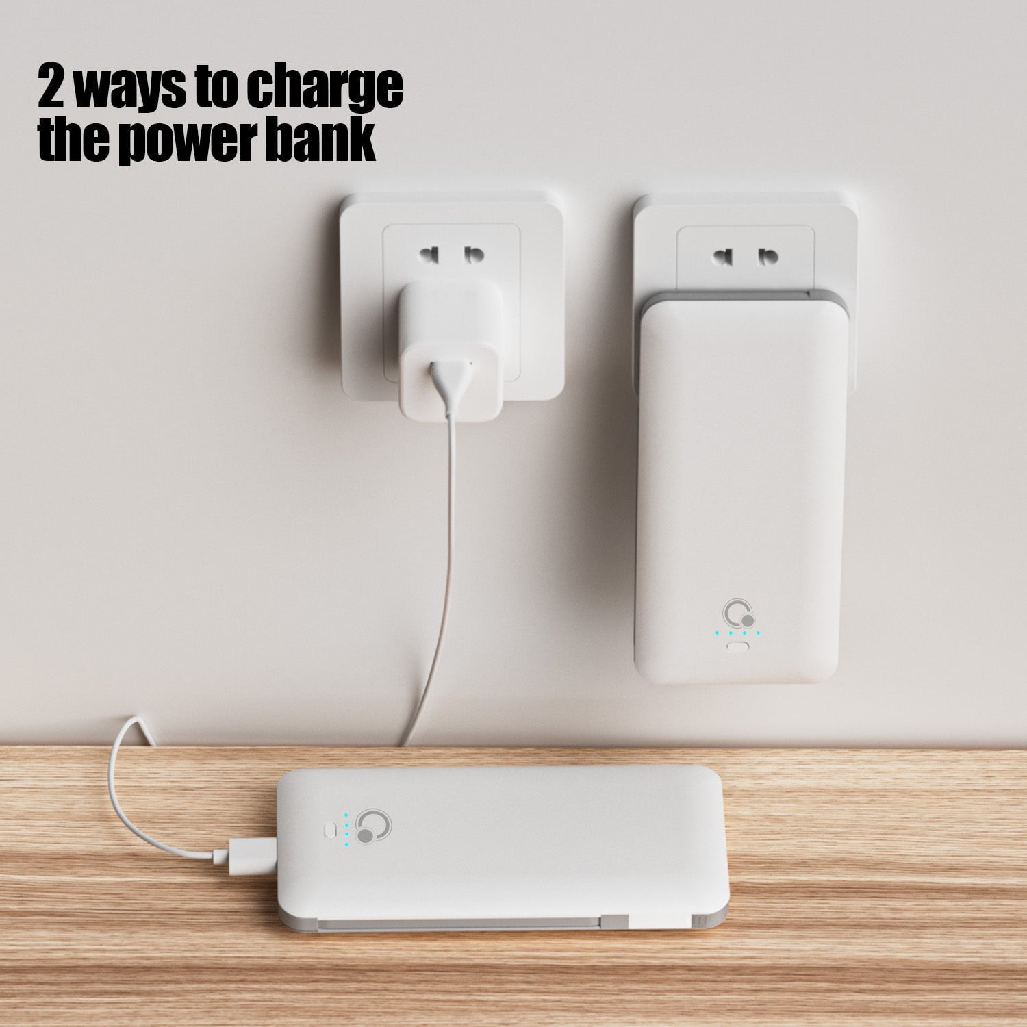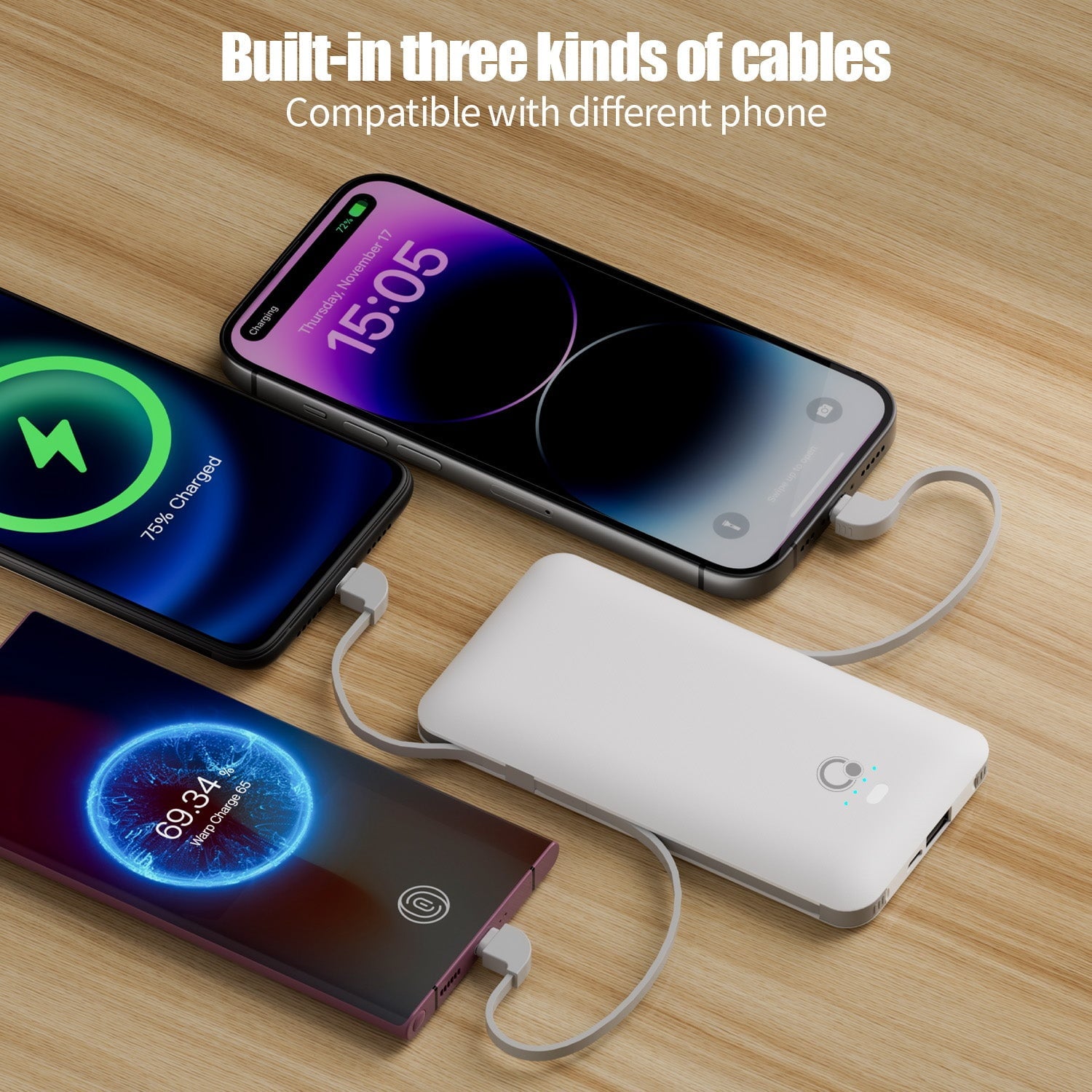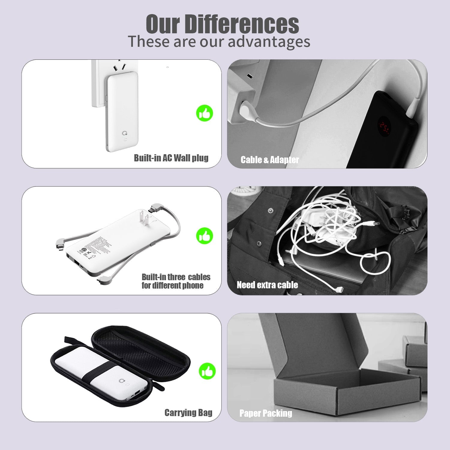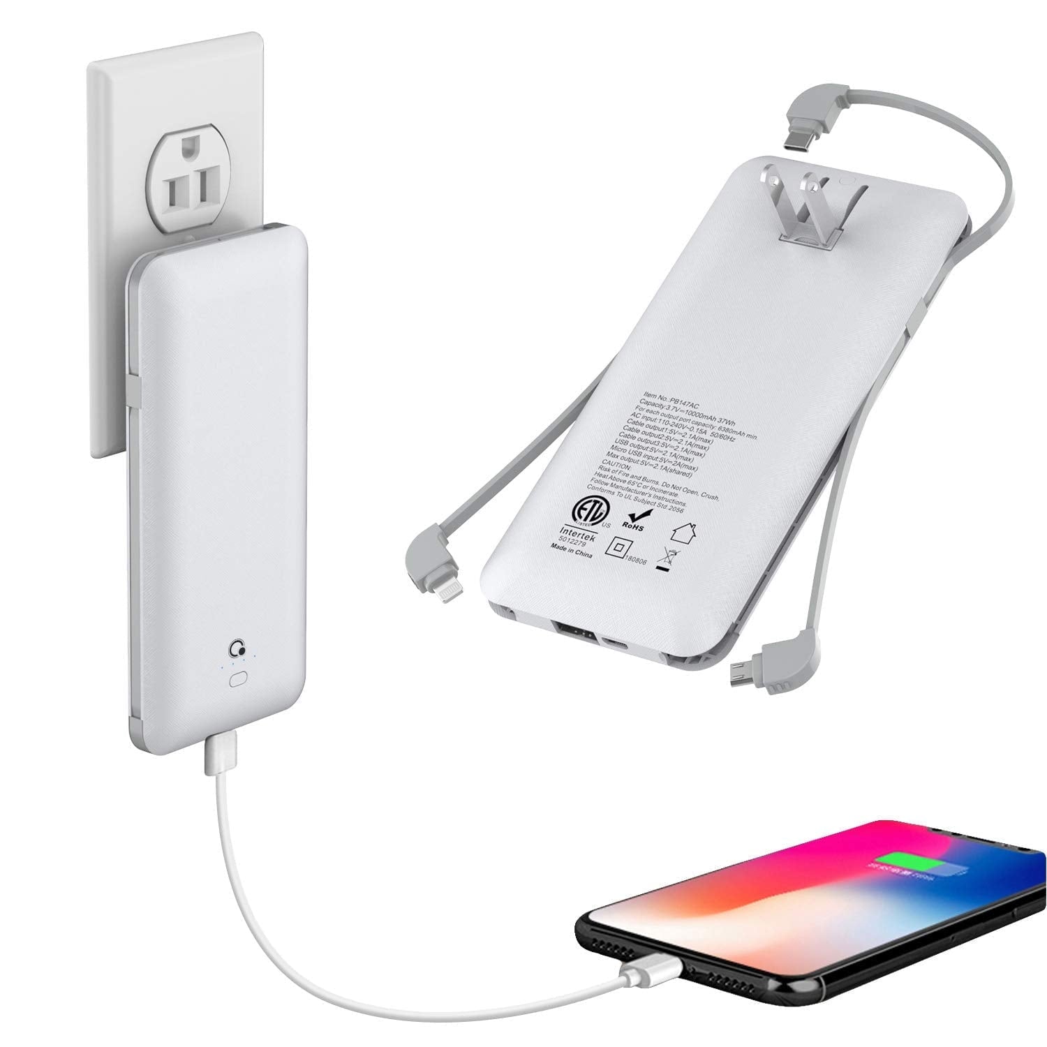 Q 10000mAh Portable Power Bank Charger with Built-in Cables AC wall plug,Slim USB Power Bank 10000mAh,External Battery Packfor iPhone & Android Cell Phone