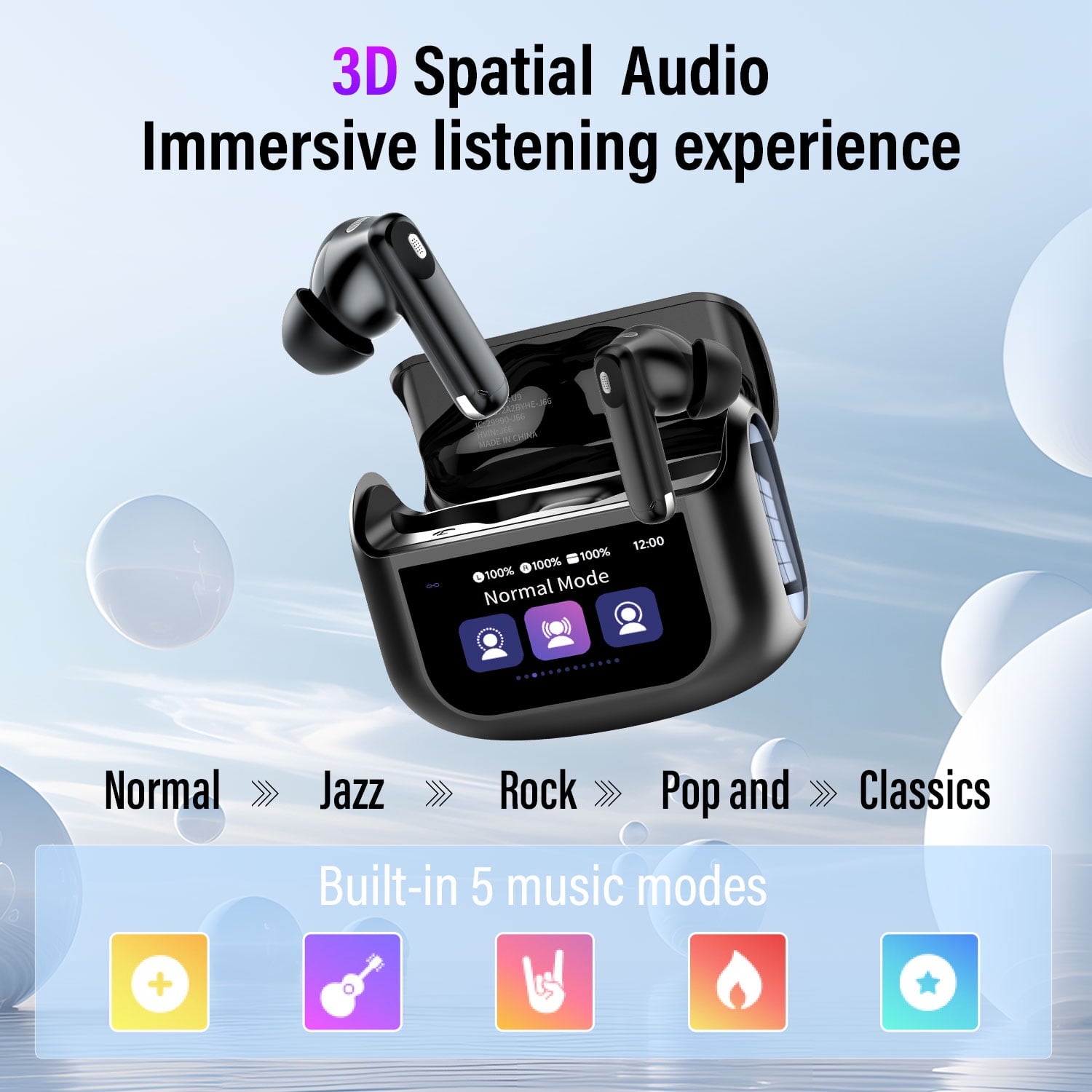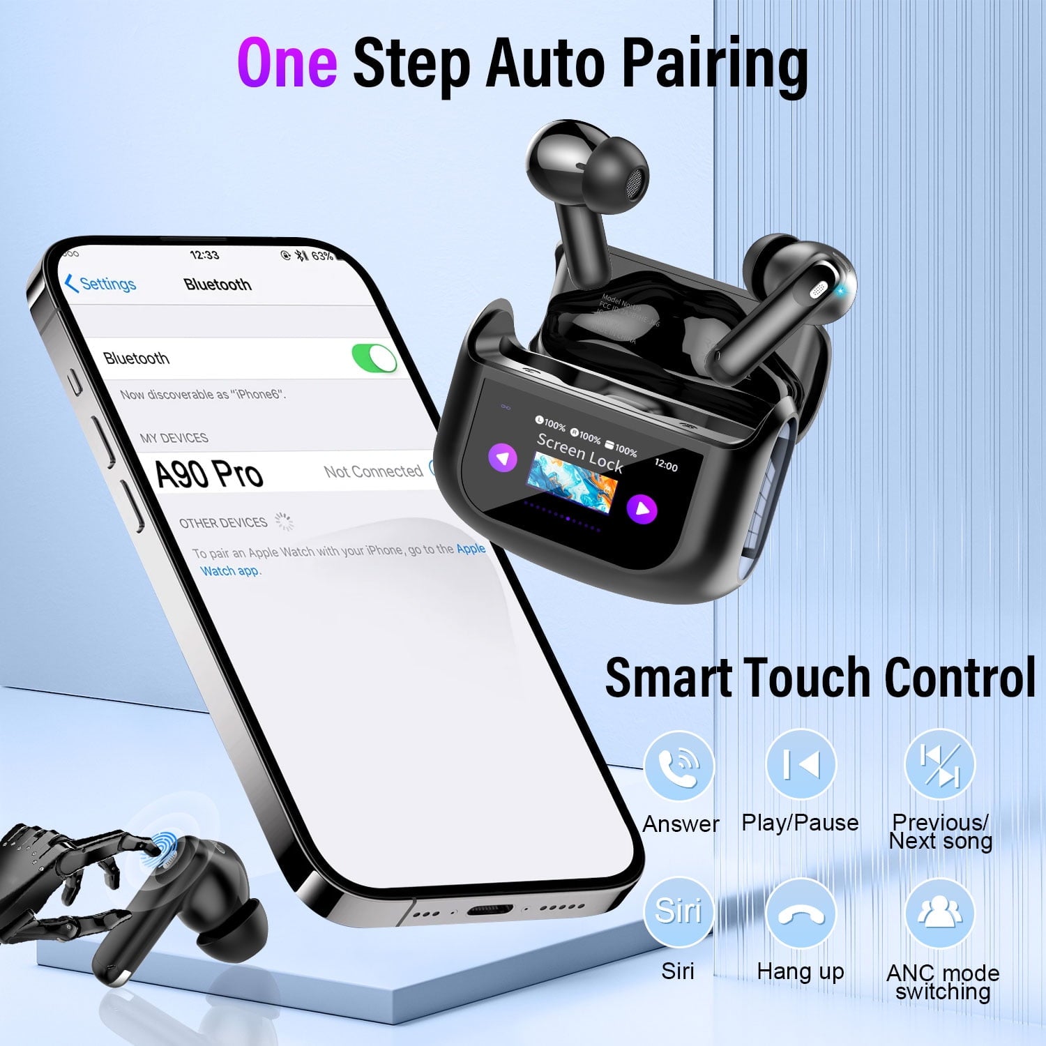 Touch Screen Wireless Earbuds, Bluetooth 5.4 Ear Buds with Multifunctional with ENC Noise Cancelling MicClear Calls Earphones, 48H Bass Stereo Headphones, IP7 Waterproof Headphones for Workout