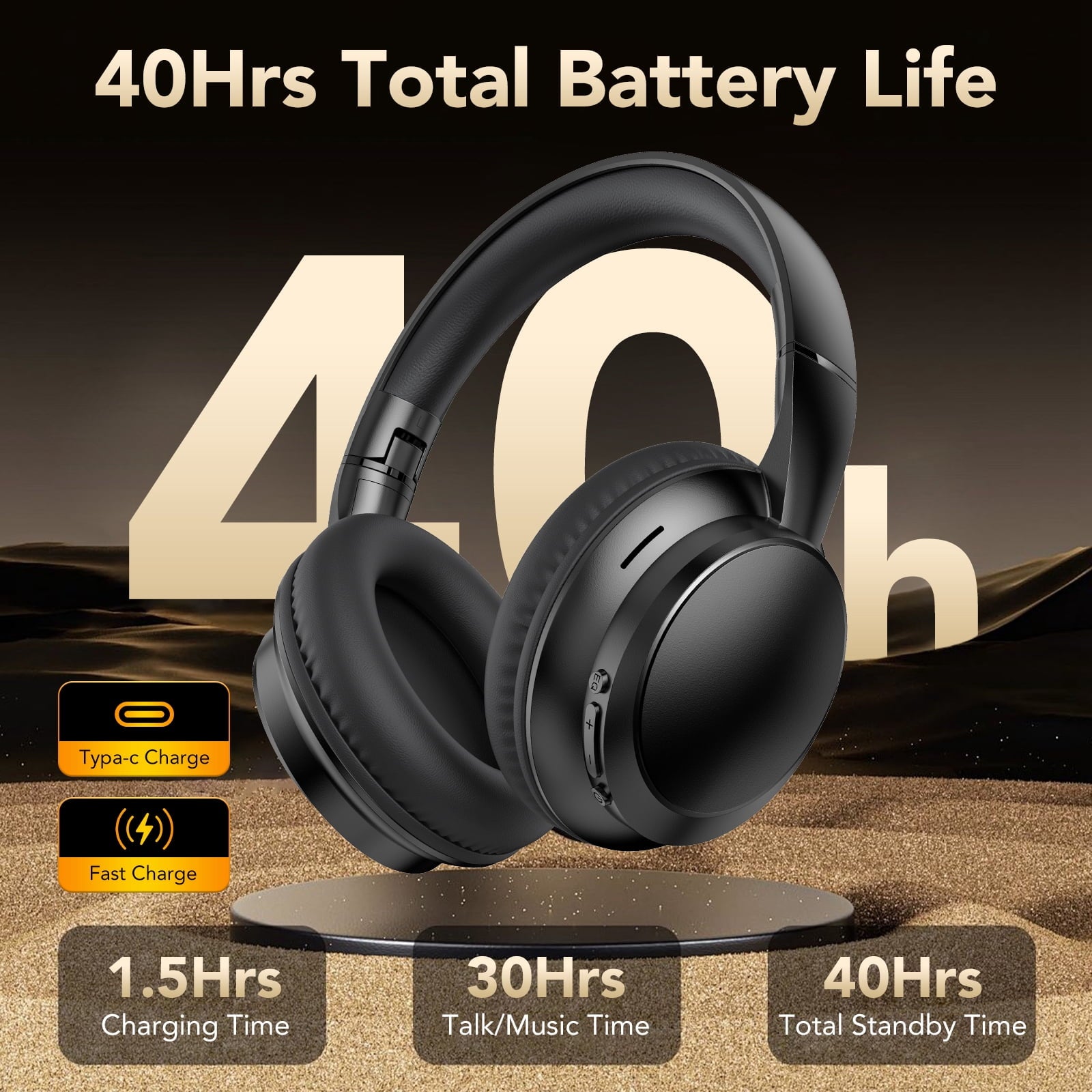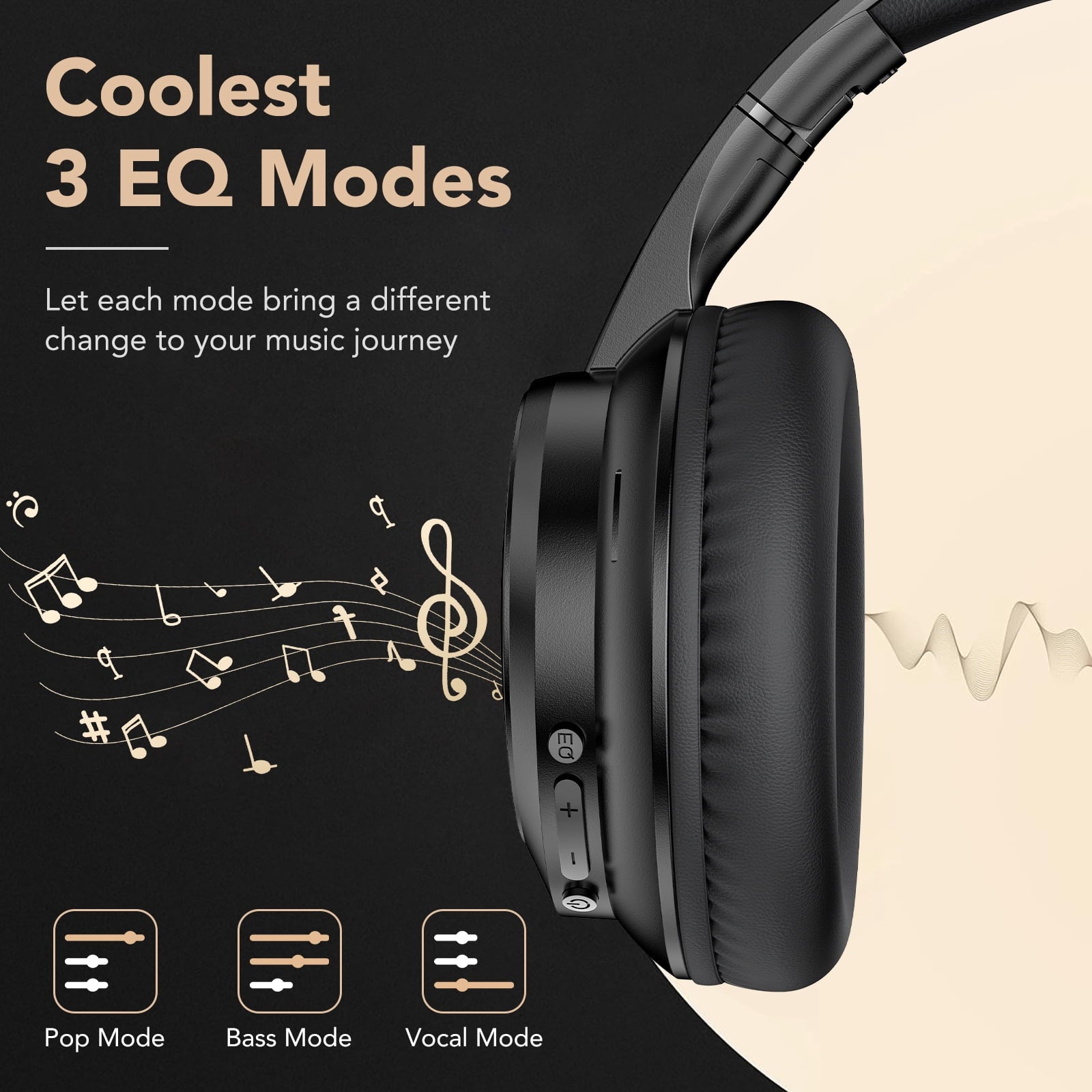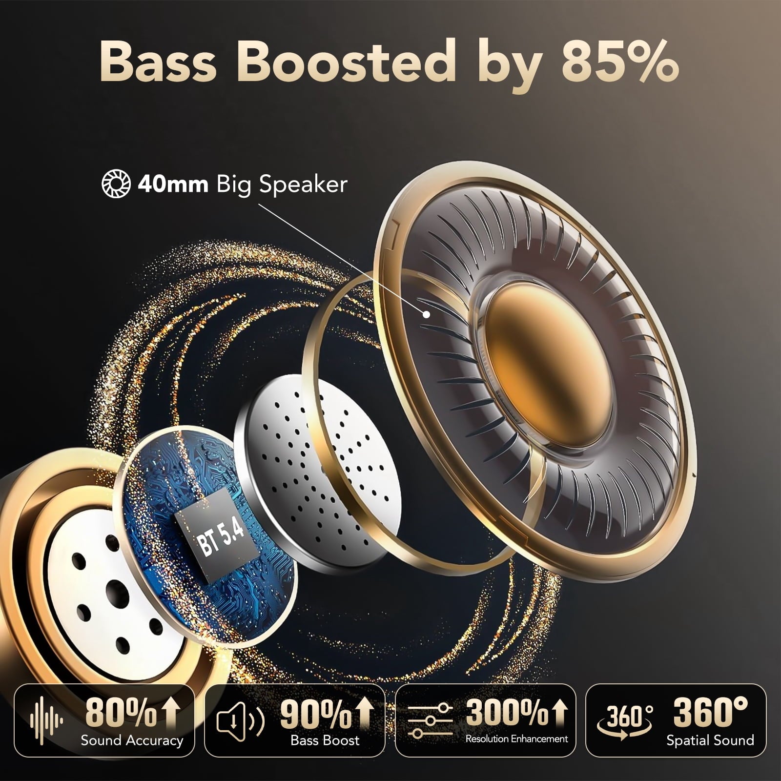 Wireless Bluetooth Headphones 5.4, 40H Playtime with 3 EQ Modes, 4 Micrs ENC Noise Cancelling for Clear Calls, Bass Boosted by 85%, Comfort Fit, Over Ear Headphones for Travel Home Office PC Black