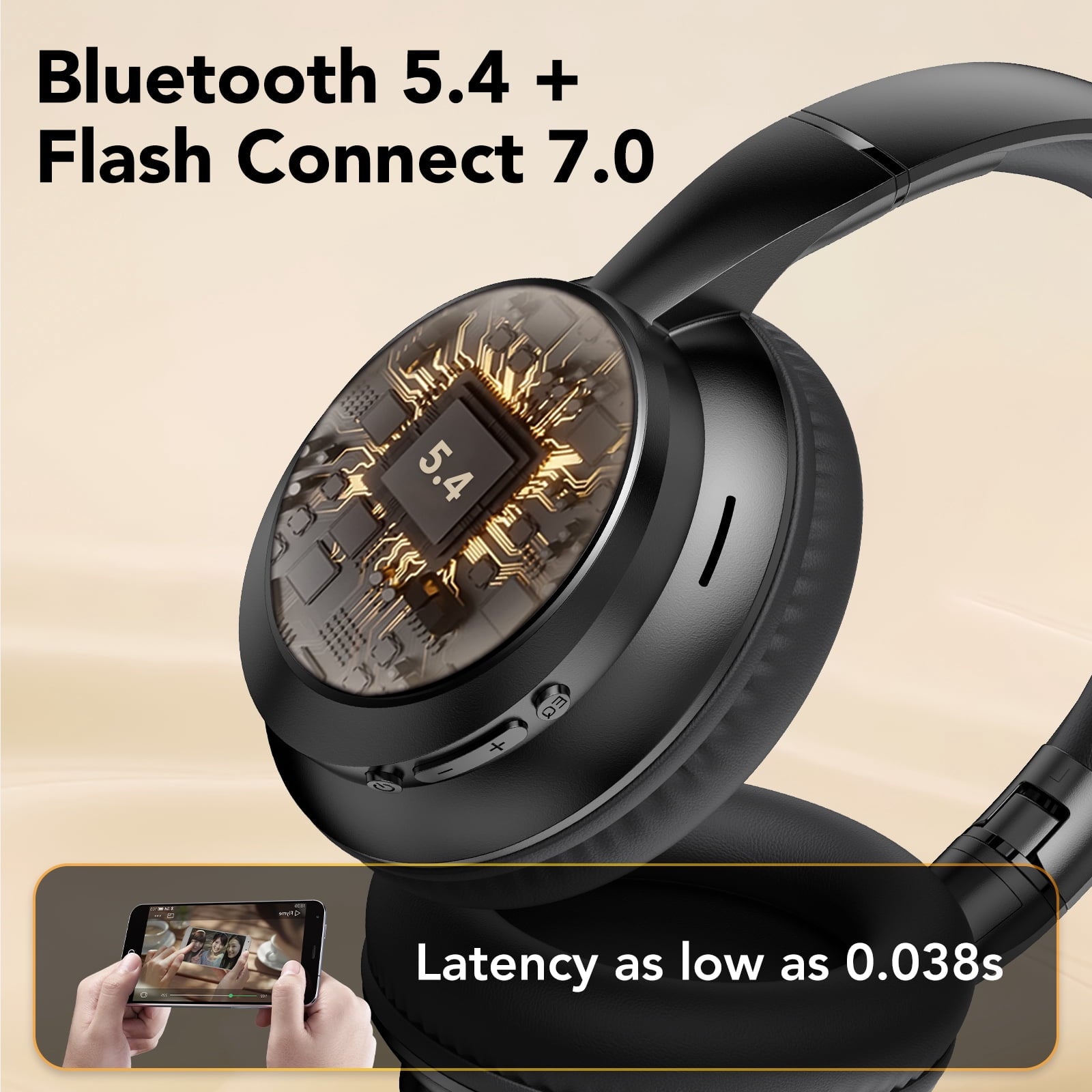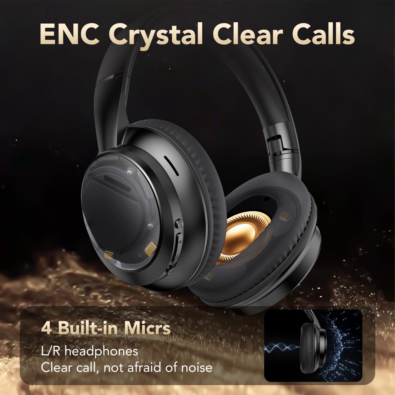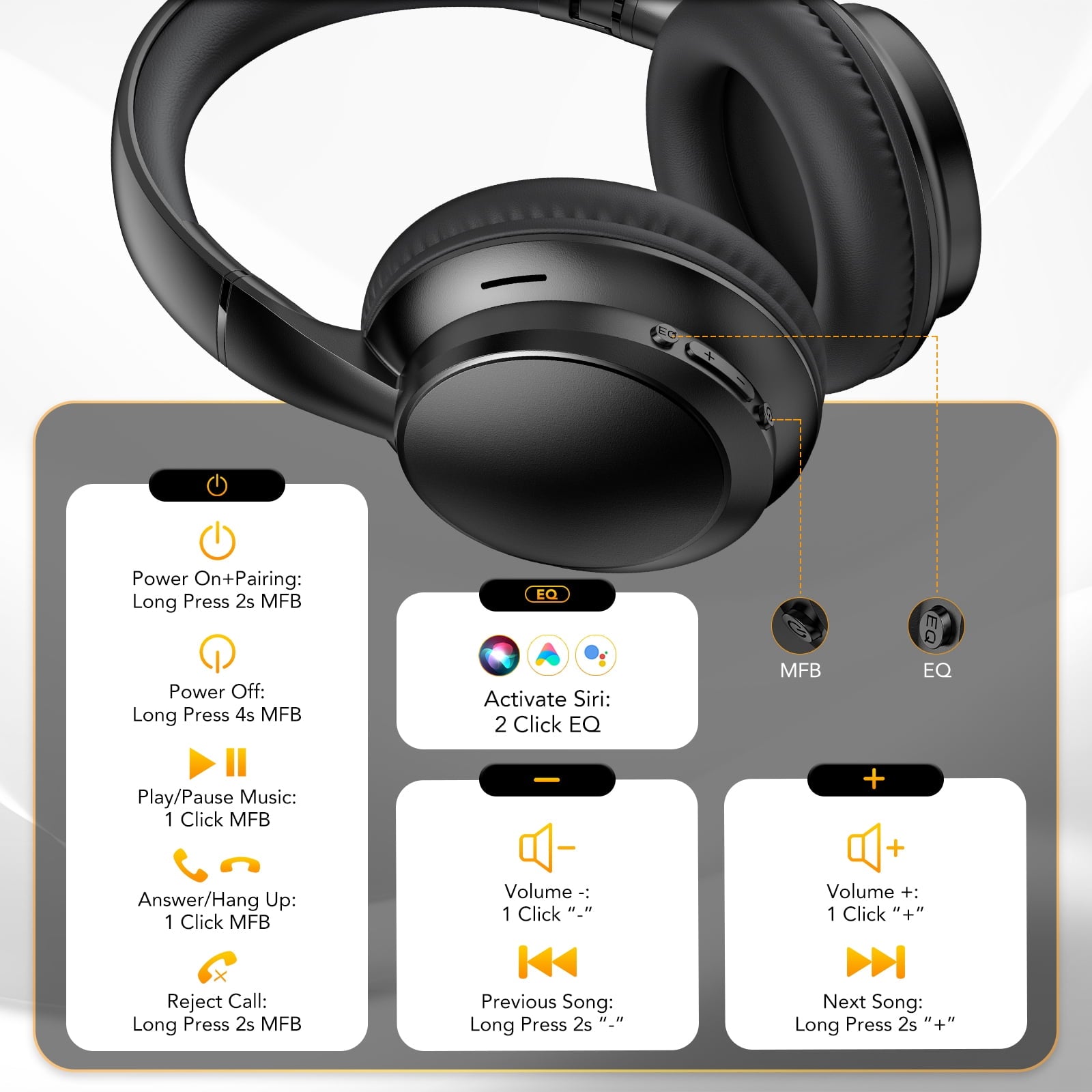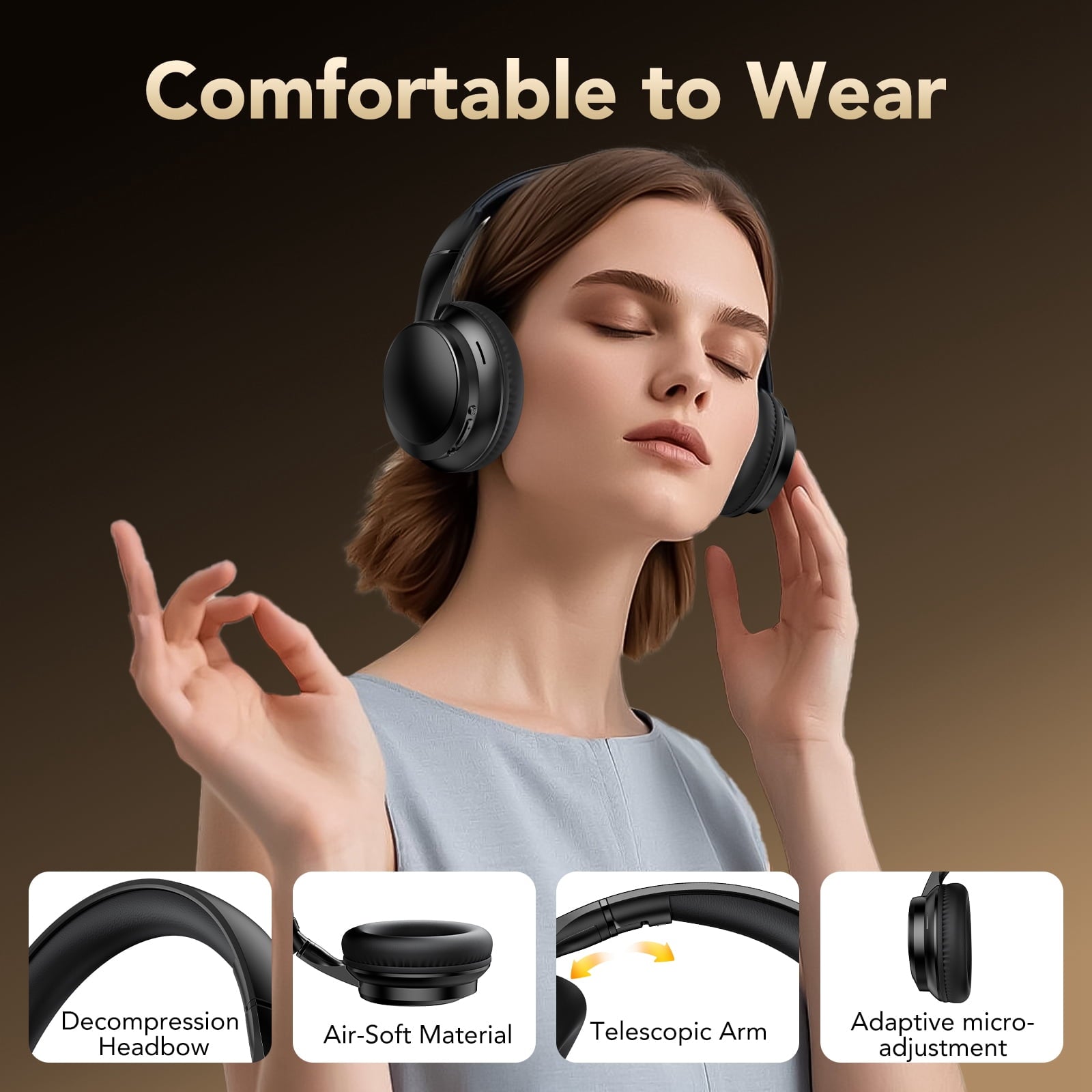 Wireless Bluetooth Headphones 5.4, 40H Playtime with 3 EQ Modes, 4 Micrs ENC Noise Cancelling for Clear Calls, Bass Boosted by 85%, Comfort Fit, Over Ear Headphones for Travel Home Office PC Black