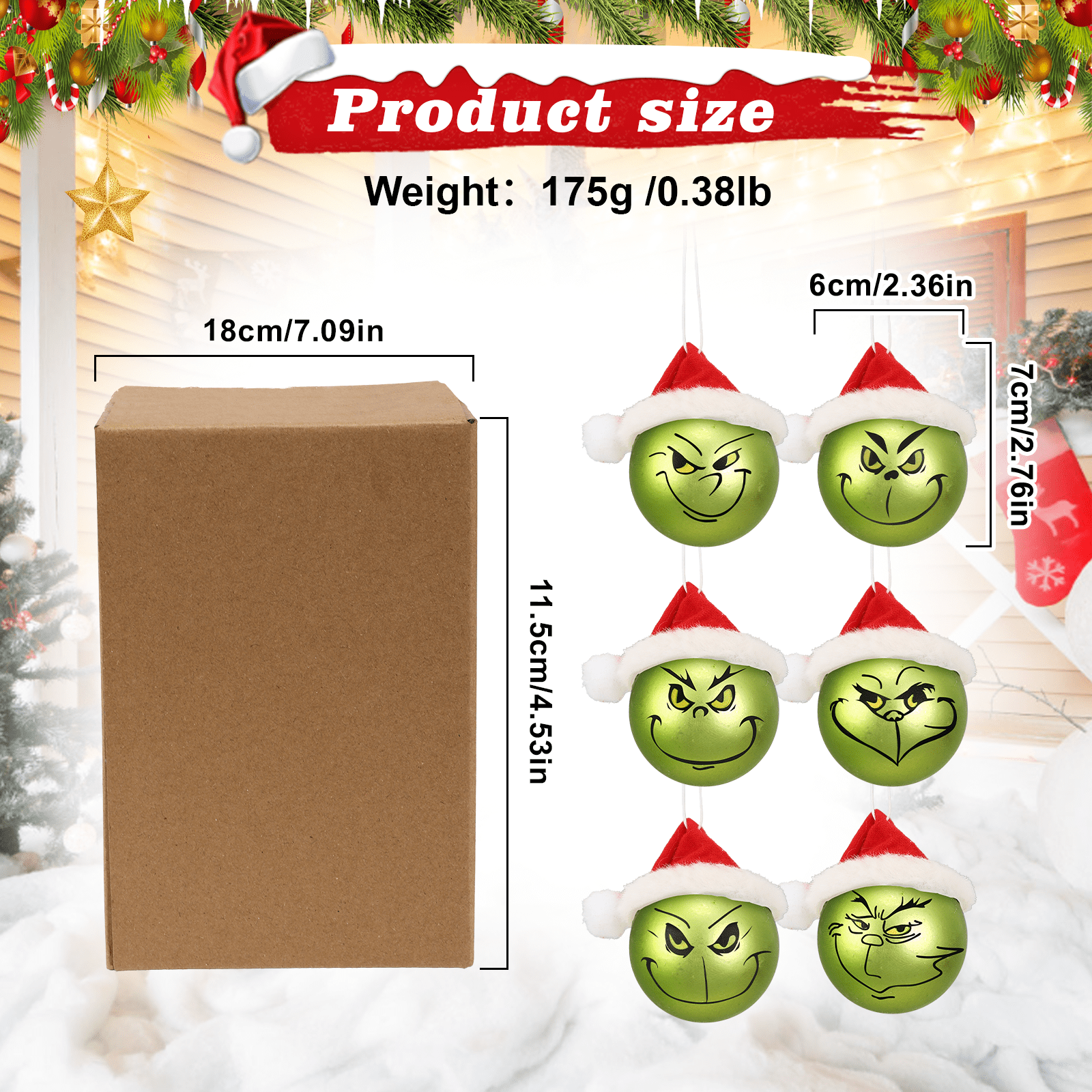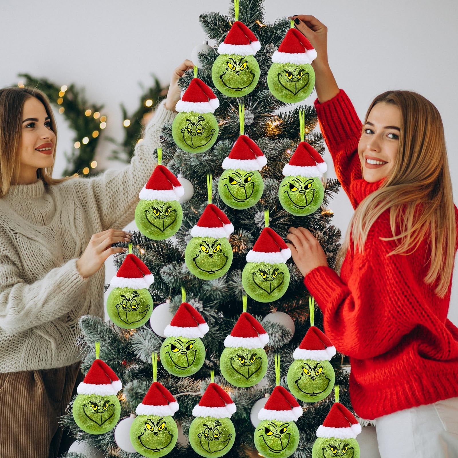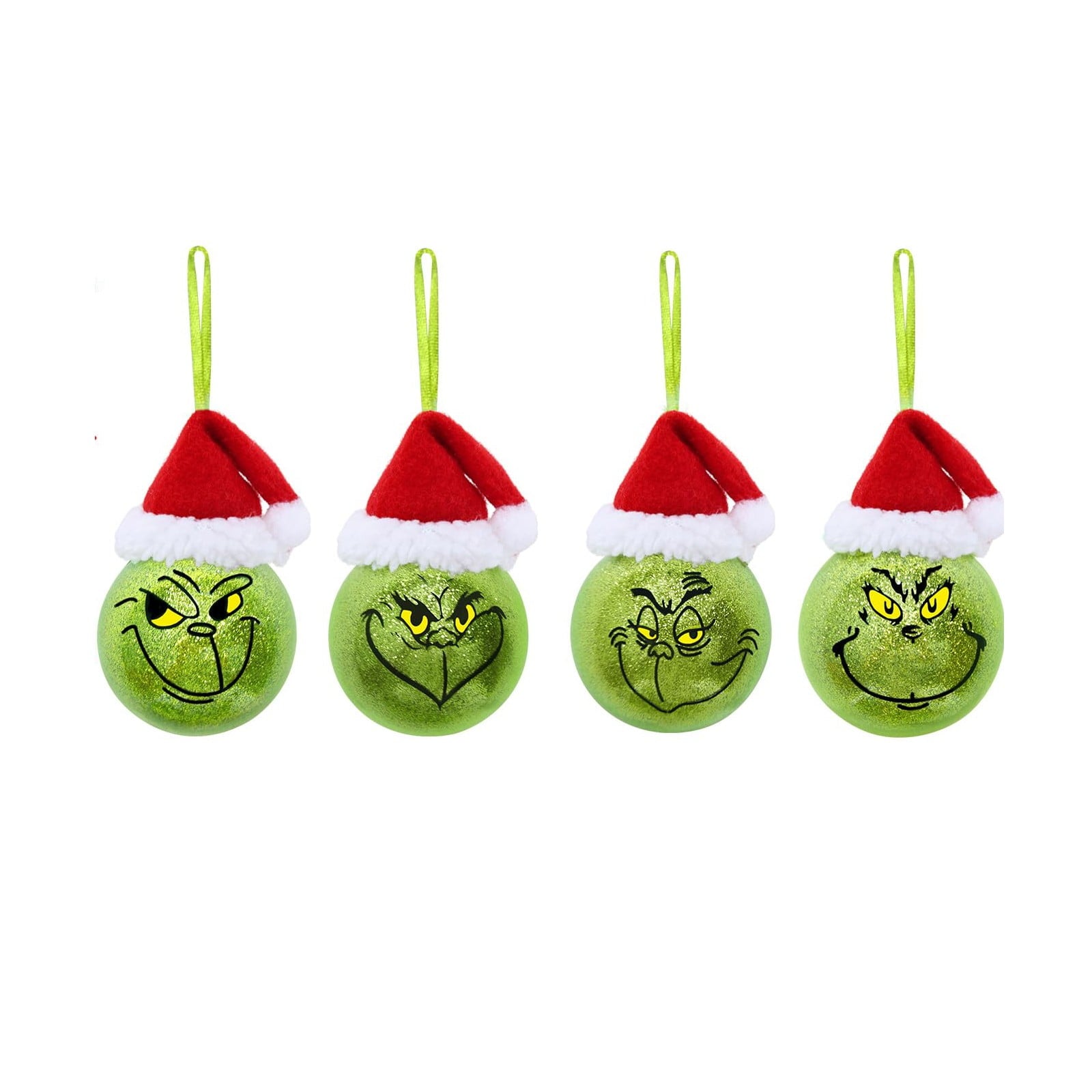 Grinnch Christmas Decoration Christmas Ball Set - Christmas Tree Ornaments with 4 Unique Facial Expressions, 12-Piece Hanging Xmas Decor for Office Holiday Home Indoor & Outdoor