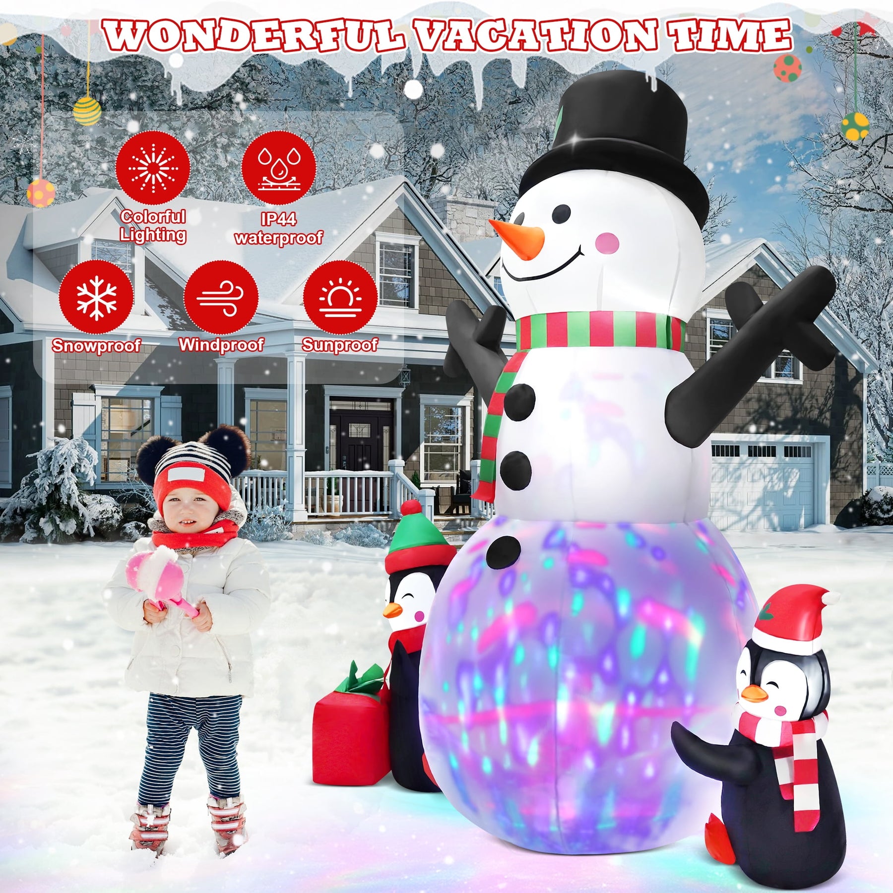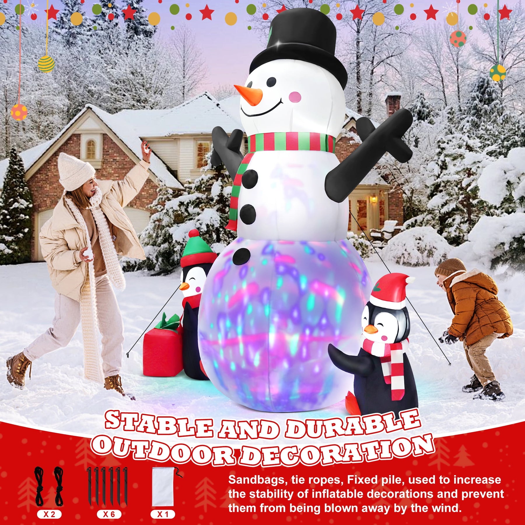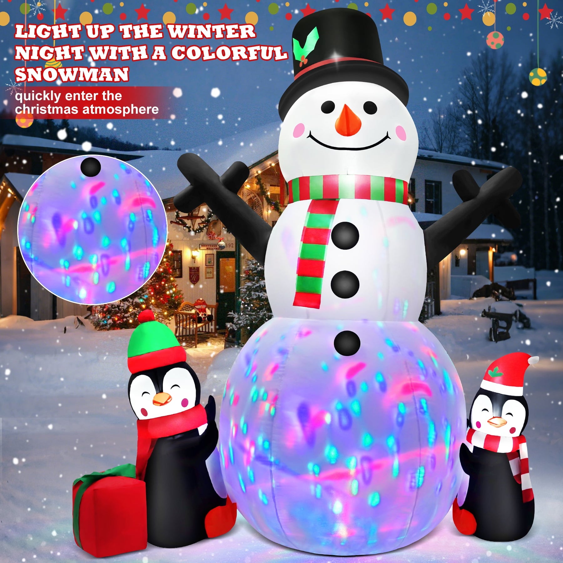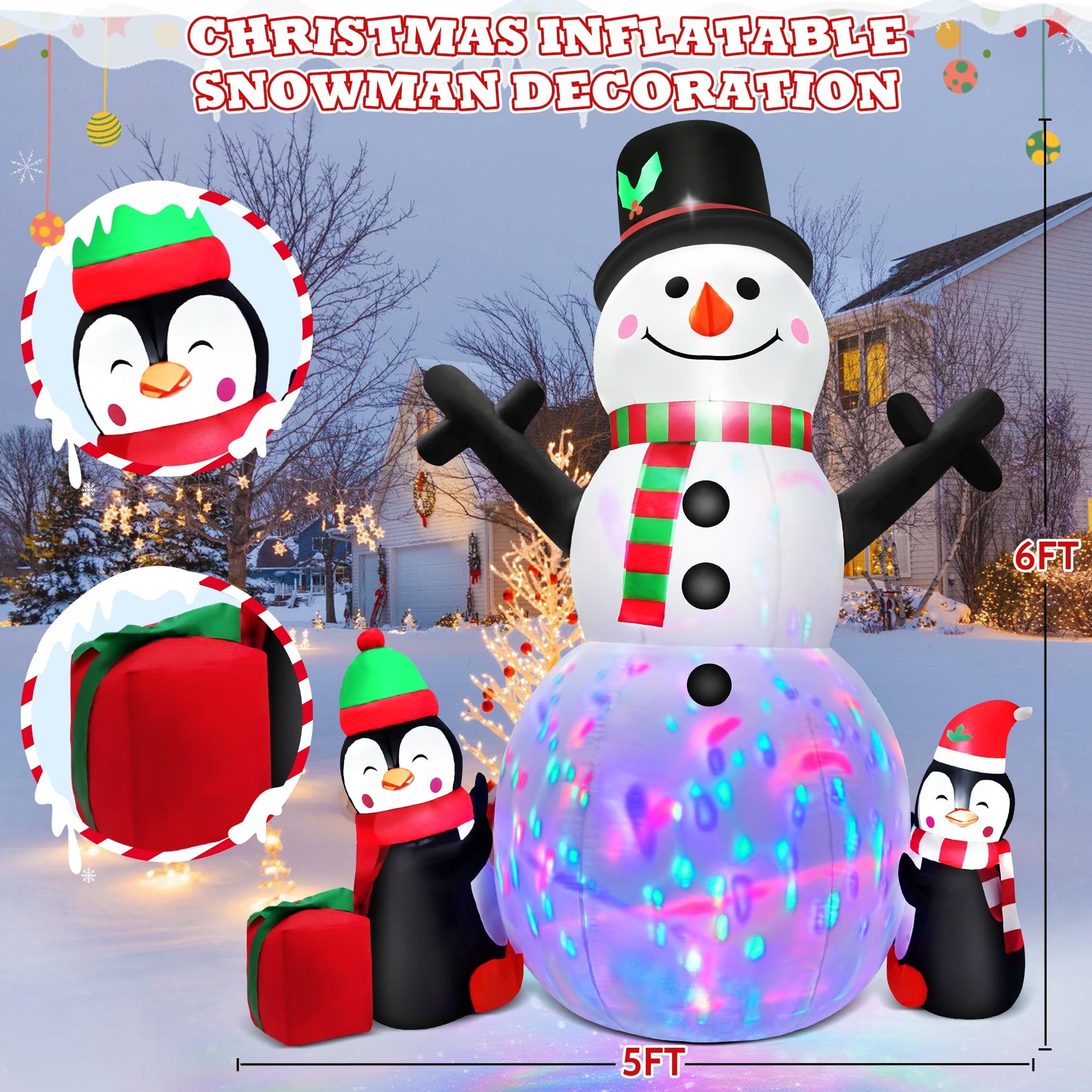 IZNEN 6FT Christmas Snowman Inflatables,Outdoor Snowman Decor with Penguins & Gift Boxes,Xmas Blow Up Yard Inflatables for Party Indoor Garden Lawn Decor