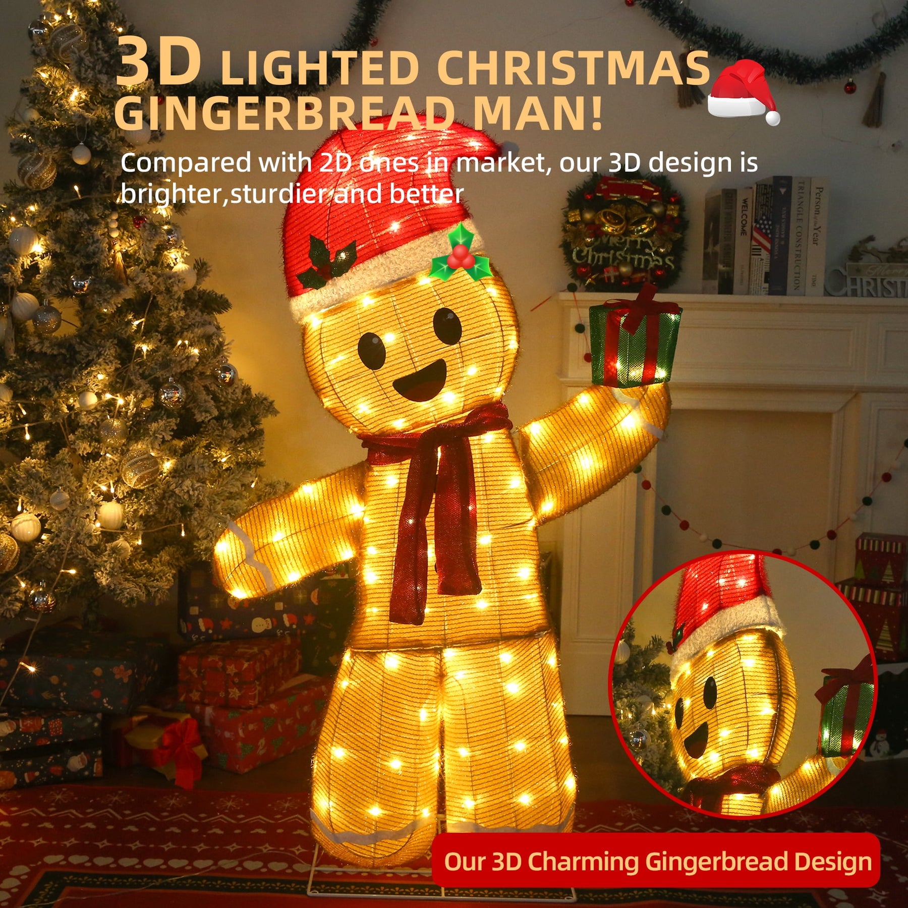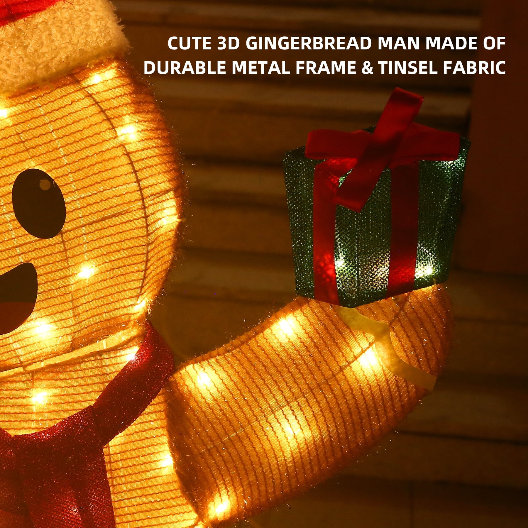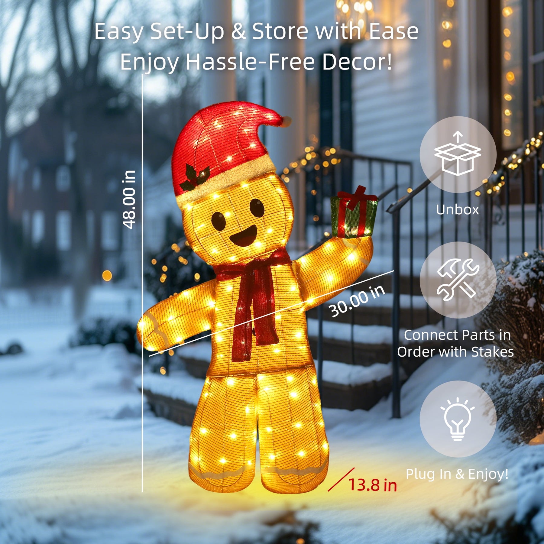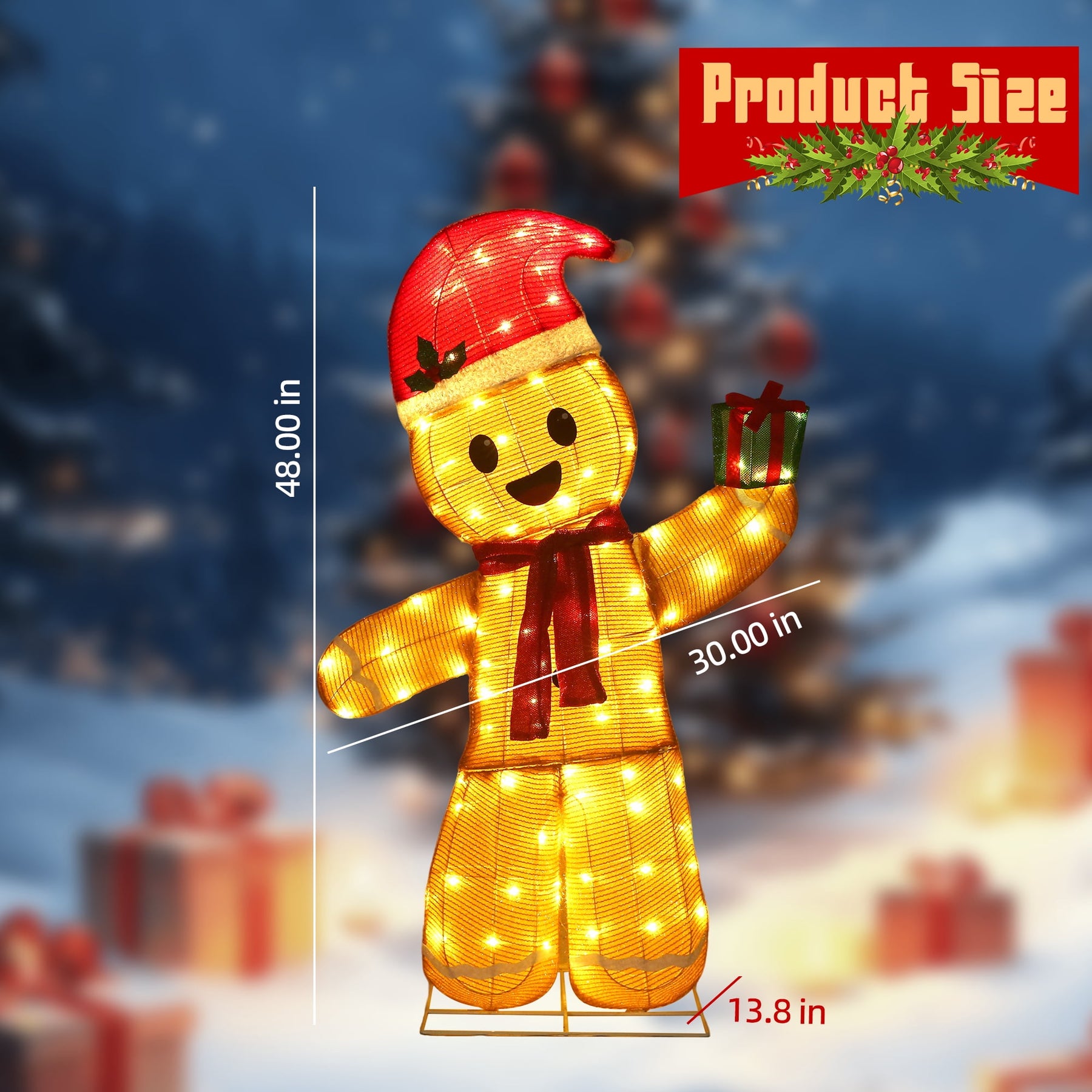 Starfree 48-inch Outdoor Gingerbread Christmas Yard Decoration 3D Gingerbread Man Christmas Holiday Decor Outdoor Lawn Decoration with LED Lights