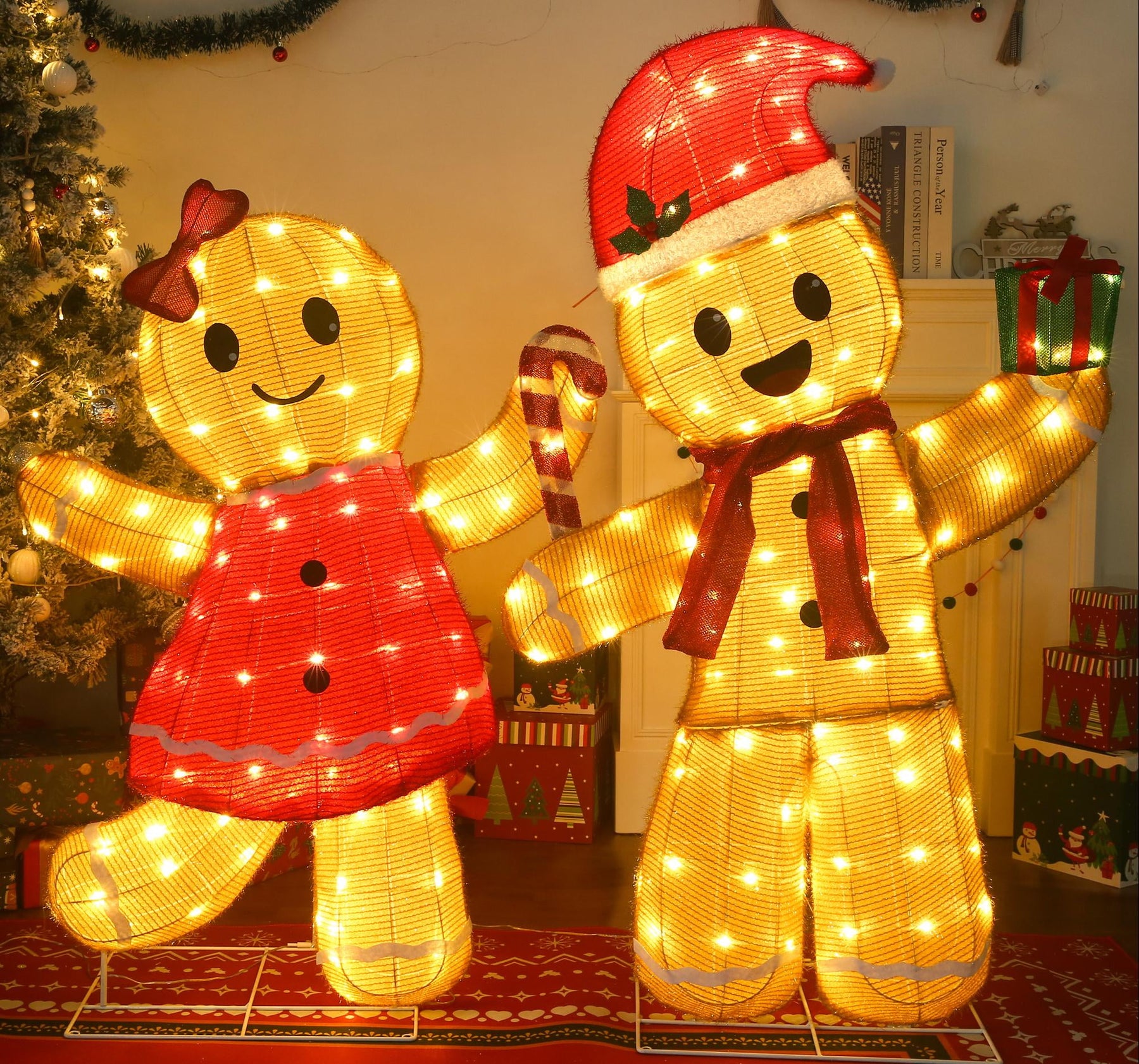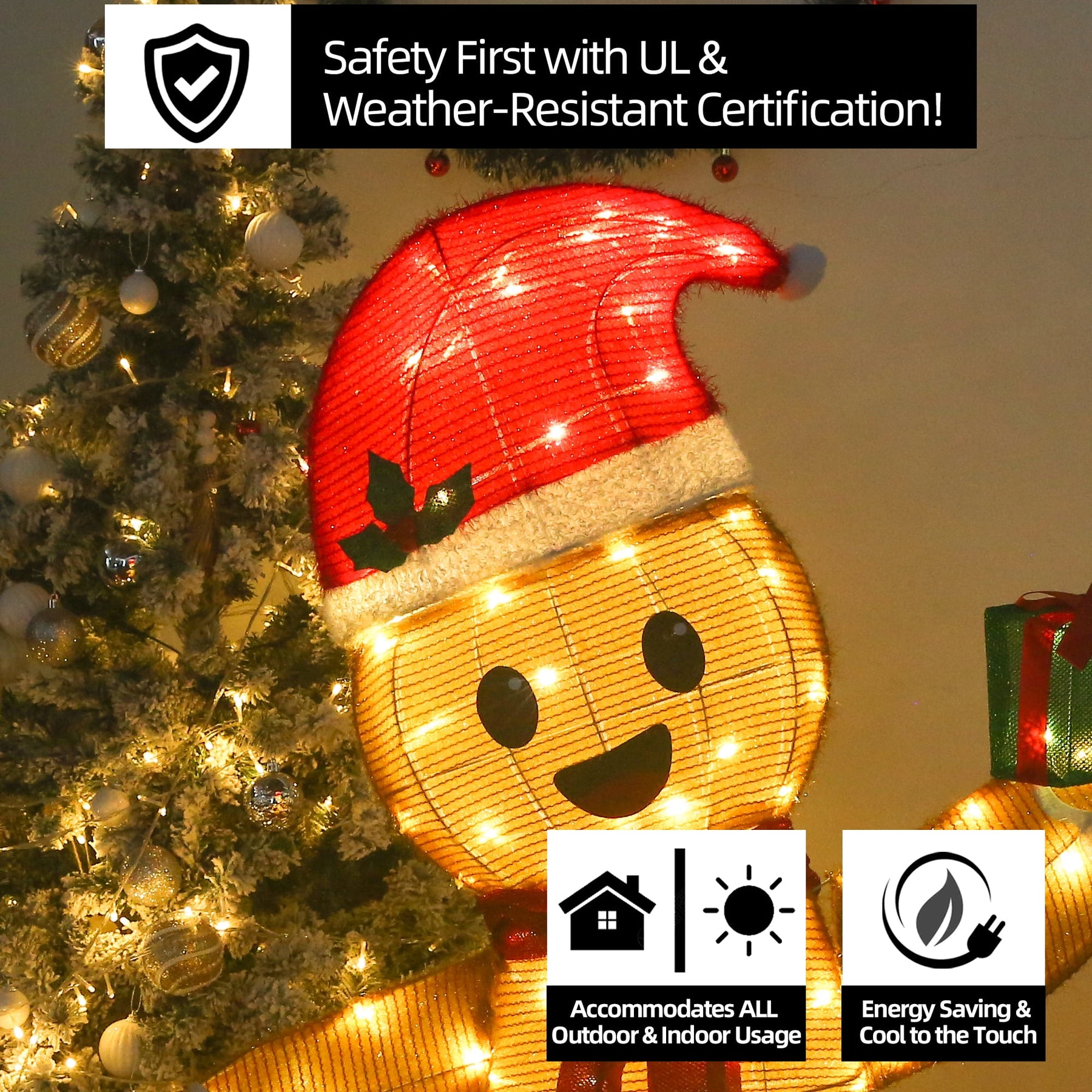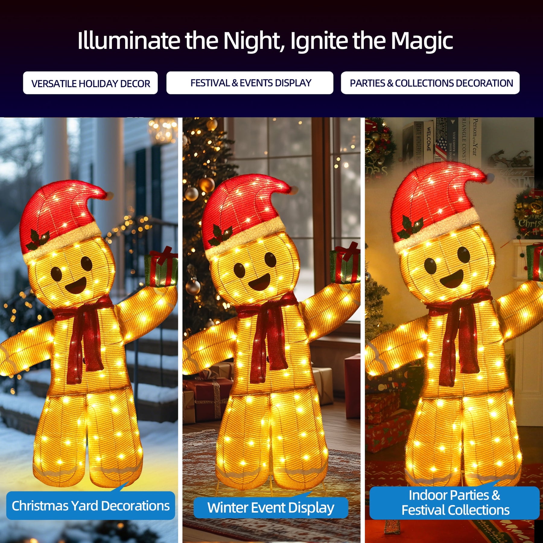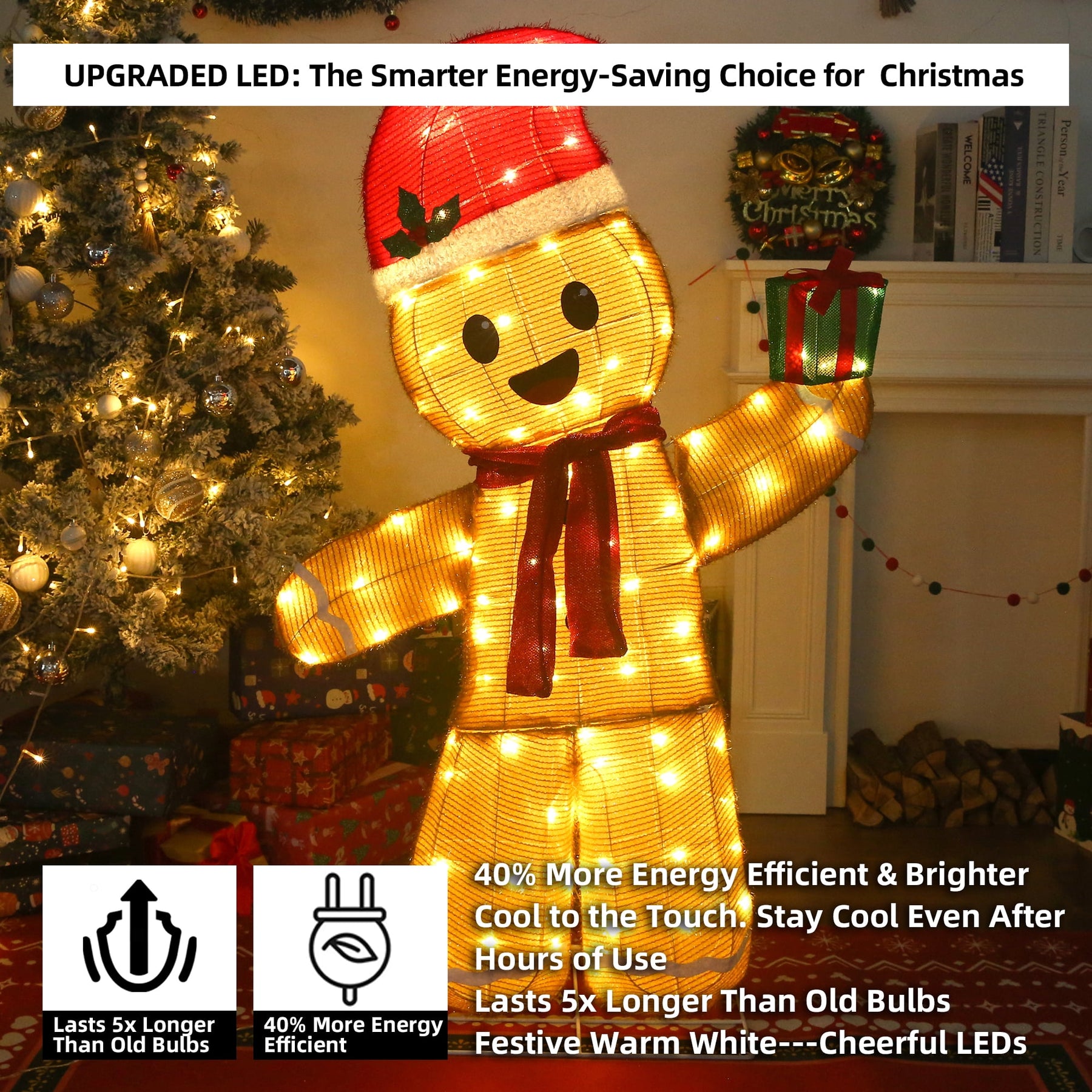 Starfree 48-inch Outdoor Gingerbread Christmas Yard Decoration 3D Gingerbread Man Christmas Holiday Decor Outdoor Lawn Decoration with LED Lights