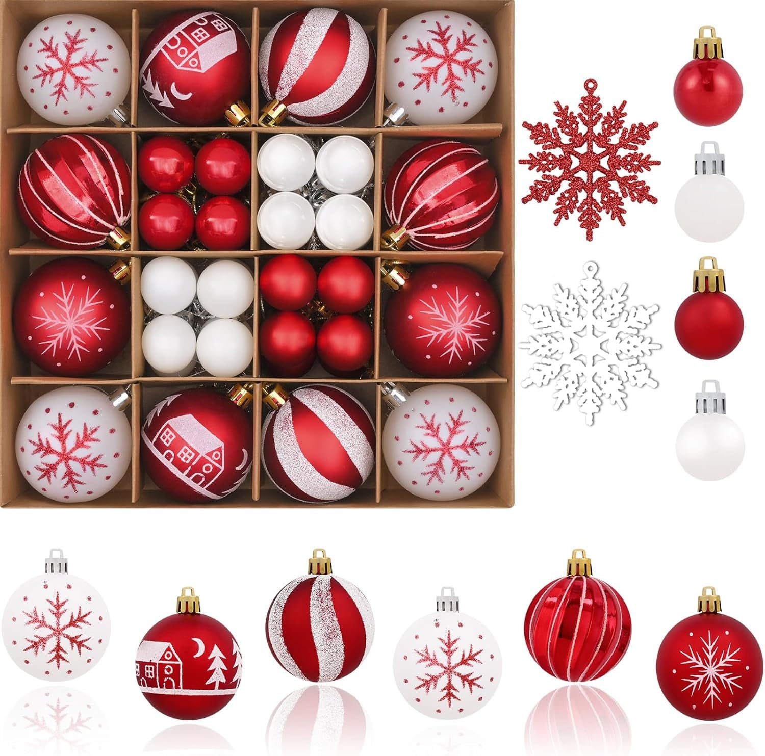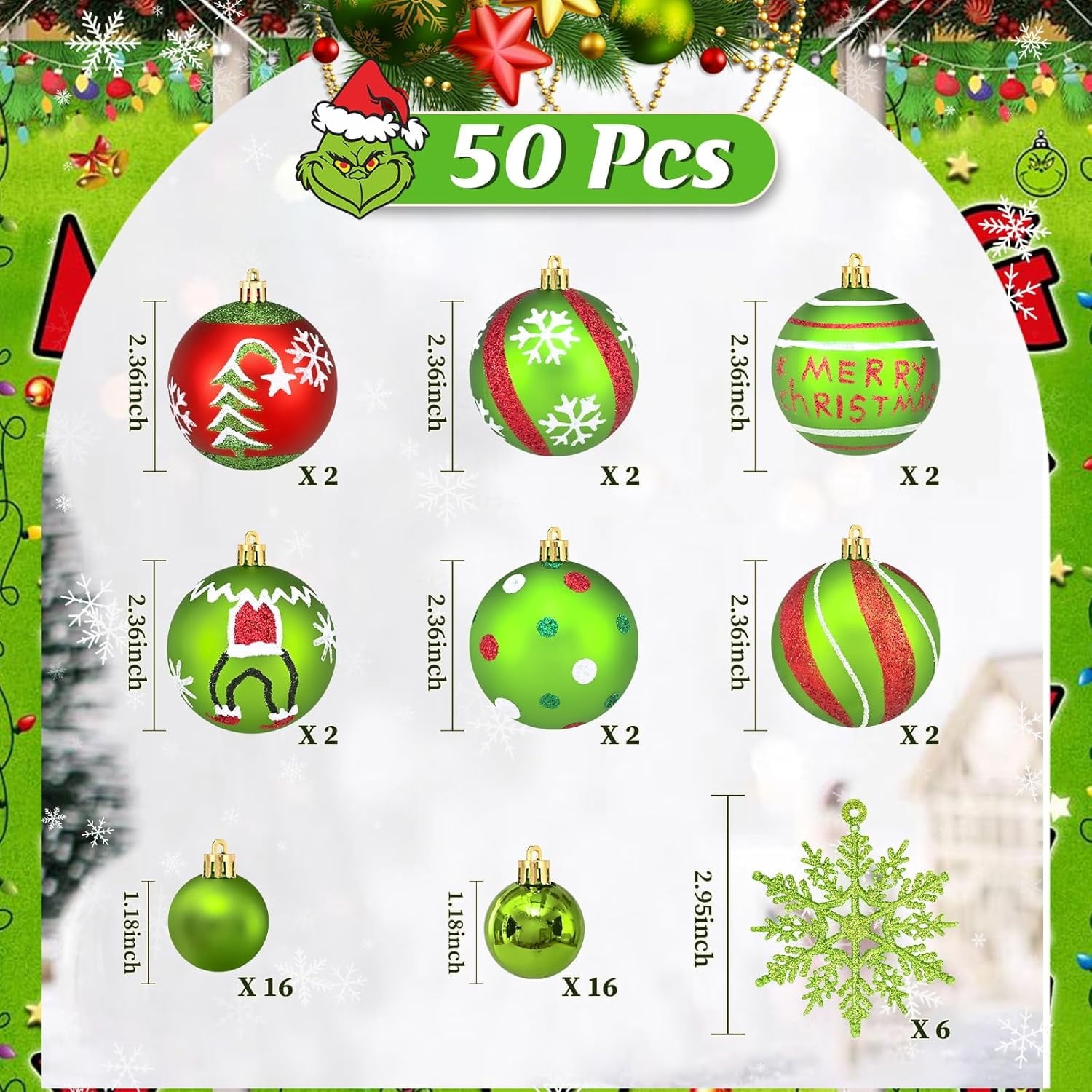Waipfaru Christmas Balls Ornaments for Xmas Tree,50Pcs Shatterproof Christmas Tree Decorations, 2.36" Hanging Xmas Ball Ornaments Set for Holiday Party Decoration